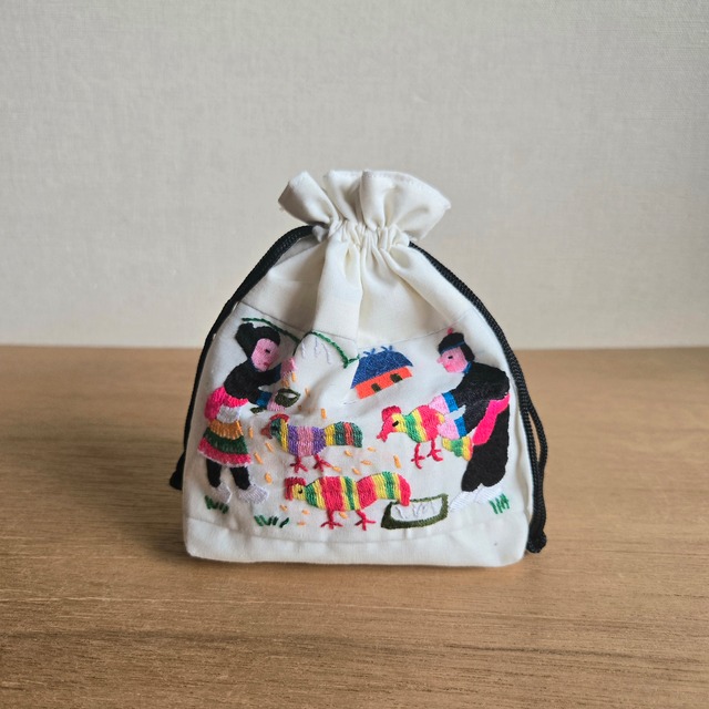 ラオス モン族手刺繍マチ付き巾着