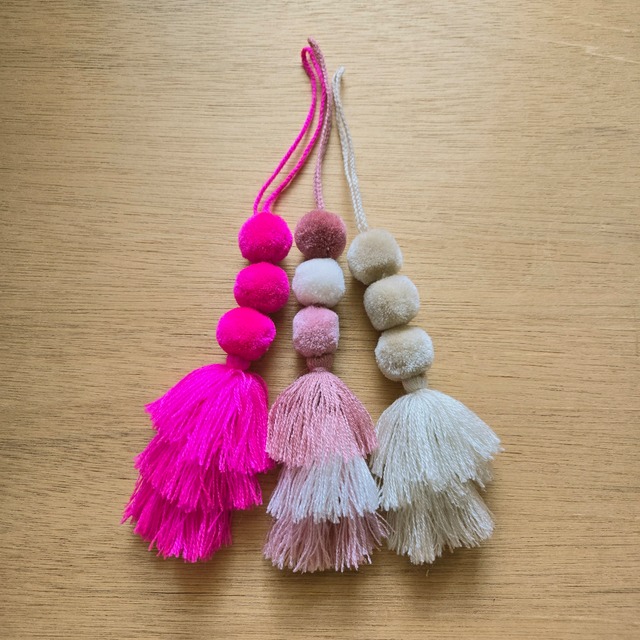 メキシコのチアパス州の村で作られたポンポンとタッセルのチャームです。 シンプルなトートバッグにつけたり、お部屋に飾るのも可愛いと思います。 同じくチアパス州で作られているハンモックバッグとも相性◎です。 末永く大切に使ってくださる方に見つけてもらえたら嬉しいです。 [サイズ] 約 cm × cm(紐部分を除く) 全長 約 cm ※ハンドメイドのため個体差あり 《ご購入前に必ずお読みください》 1、 海外製の手仕事の作品を中心に取り扱っております。 ひとつひとつ検品していますが、歪みや色ムラ、裁縫のズレなどがある場合がございます。 ぜひ、手作りならではの愛嬌としてお楽しみください。 2、 お使いの端末や閲覧環境により、写真と実物の色味や質感が多少異なって見える場合がございます。 また、色やモチーフの名前は参考程度にお考えください。 以上、ご理解いただいた上でのご購入をお願い致します。 気になる点がございましたら、ご購入前にお気軽にお問い合わせください。