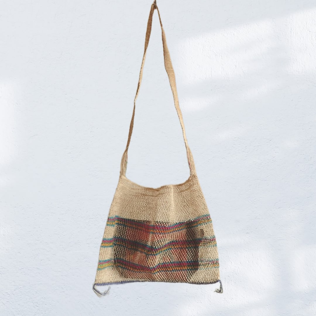 ラオスの山岳地域に住む少数民族カムー族の手編みバッグ。