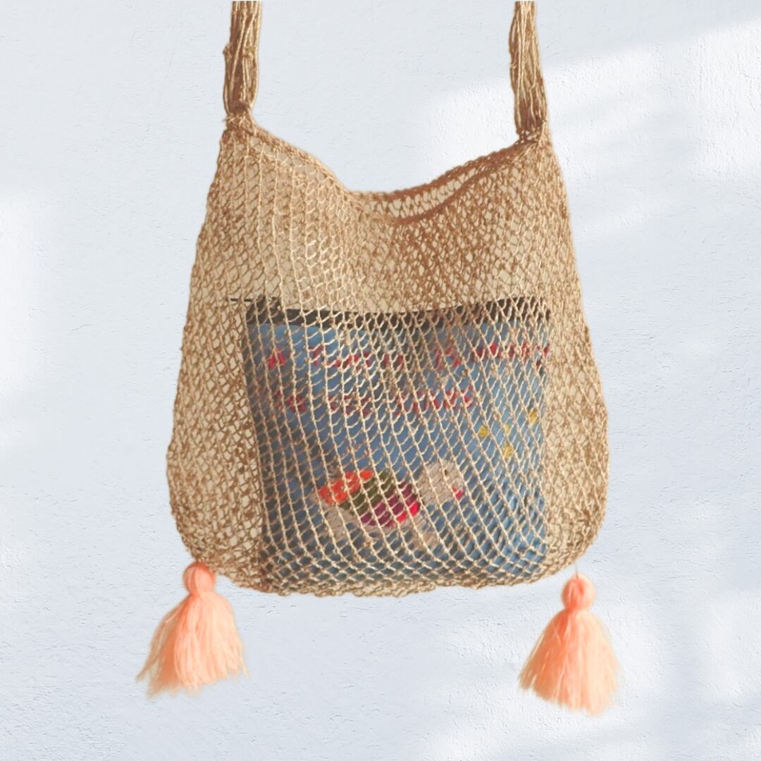 網目から中の可愛いポーチたちを自慢しながら歩けます。(写真1〜3枚目は撮影のため中にポーチを入れています。)