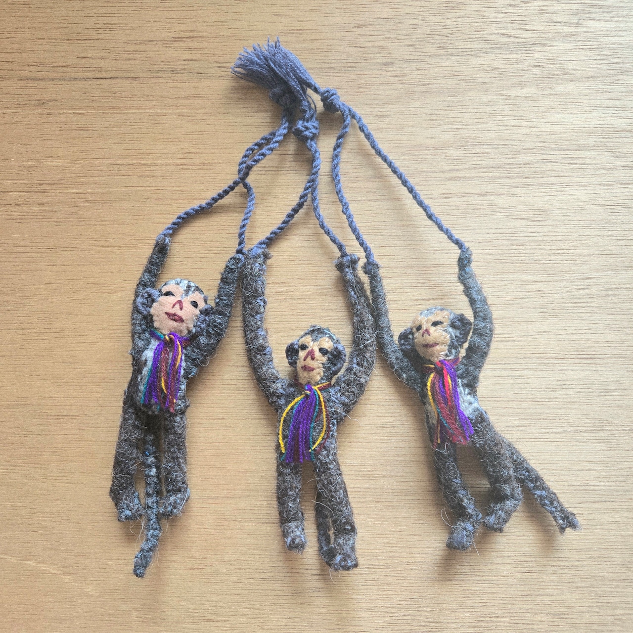 メキシコのチアパス州、サンファンチャムラ村からやってきたアニマリートと呼ばれる羊毛のぬいぐるみ。