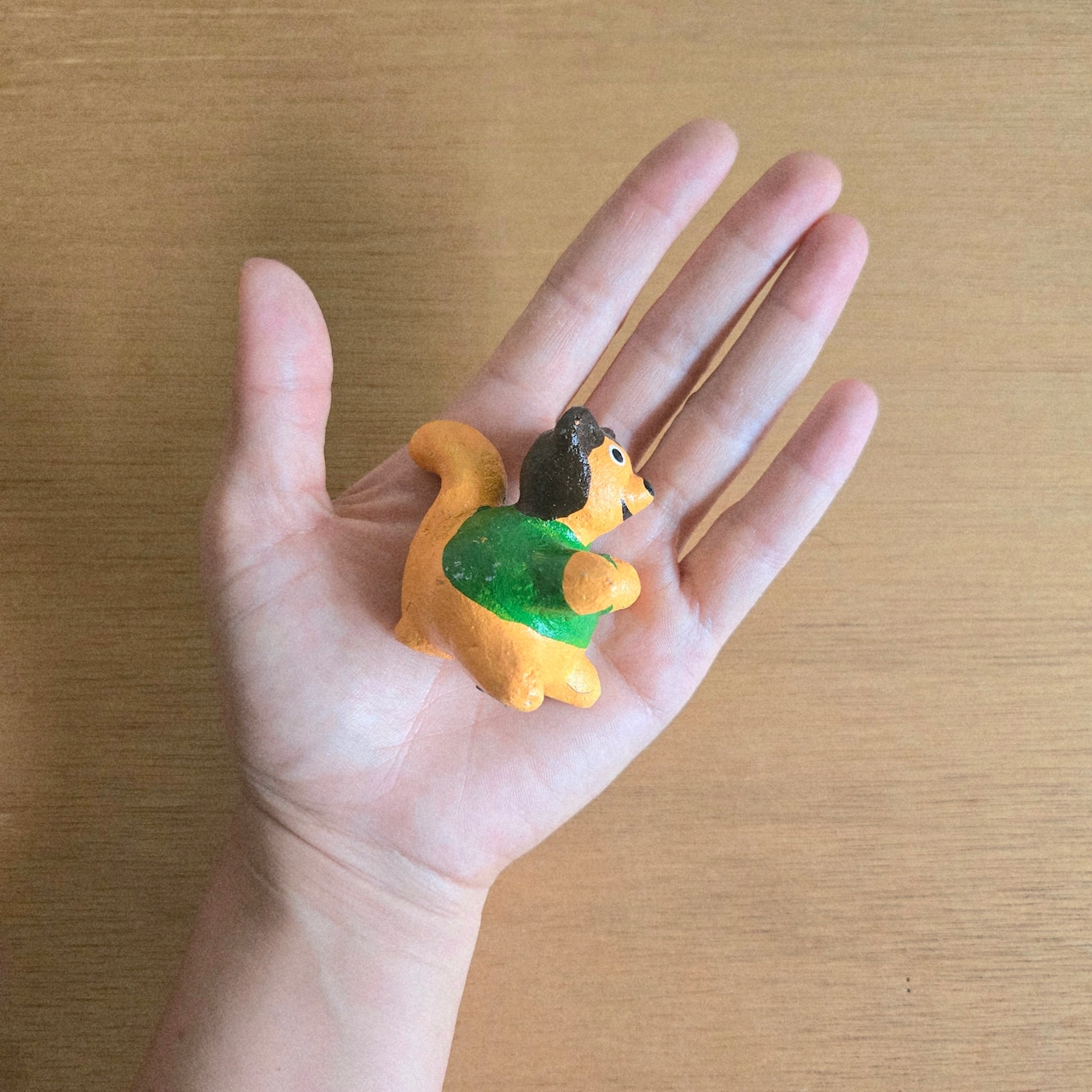 ハンドペイントの素朴な雰囲気が可愛らしい手のひらサイズの置き物です。