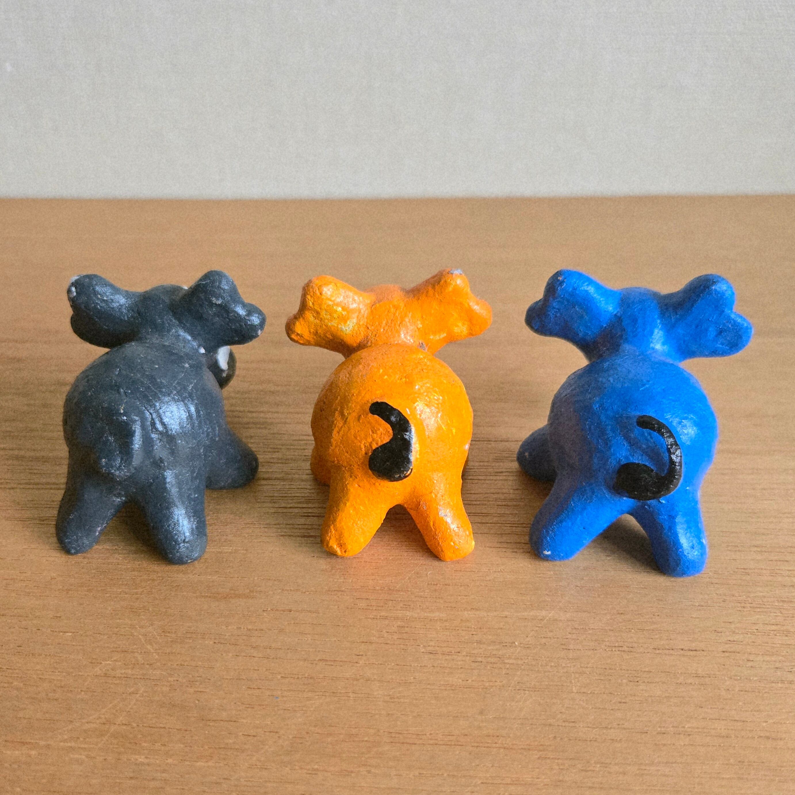 ハンドペイントの素朴な雰囲気が可愛らしい手のひらサイズの置き物です。