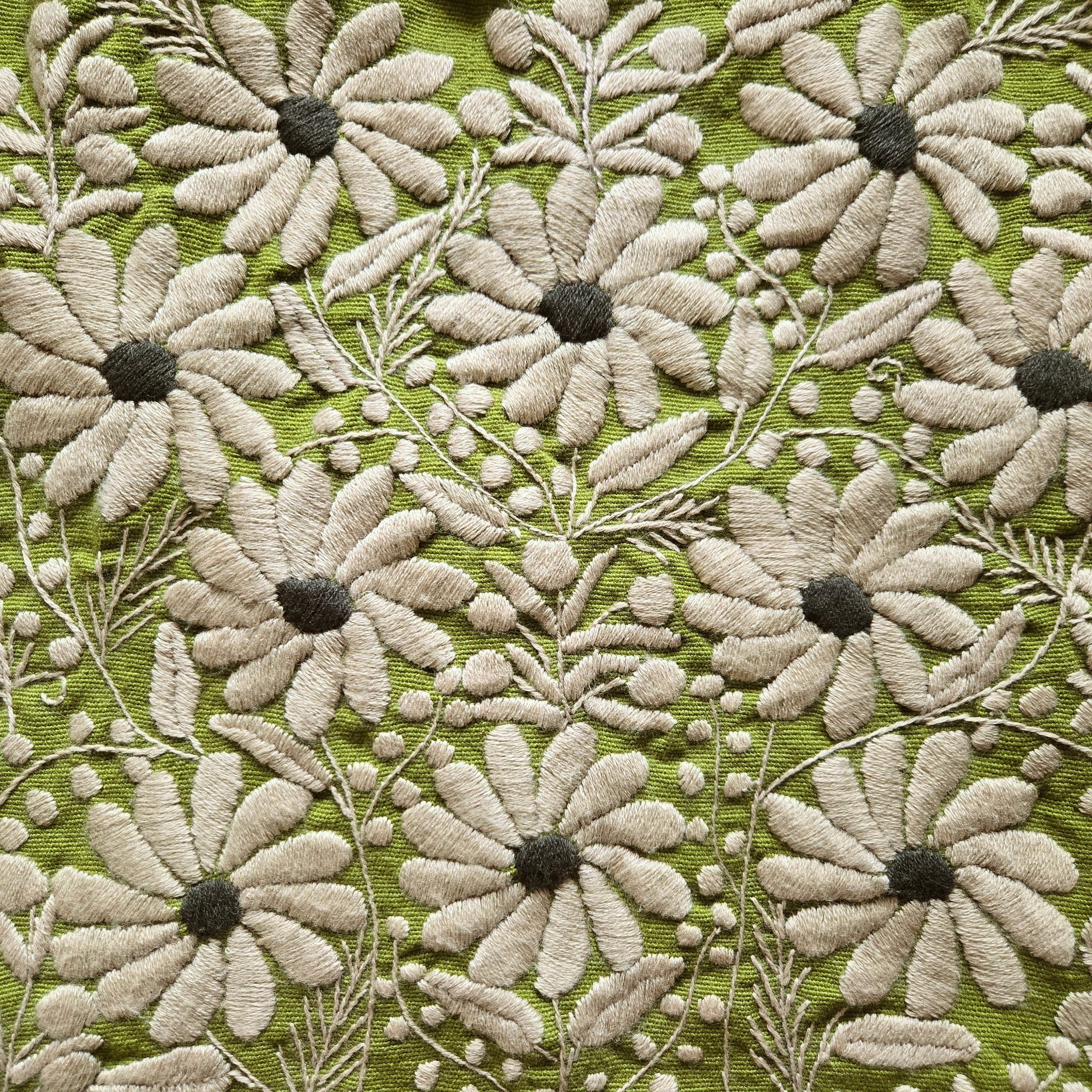 腰機という原始的な手法で織られた手織りの生地にお花の手刺繡がたっぷり刺されています。