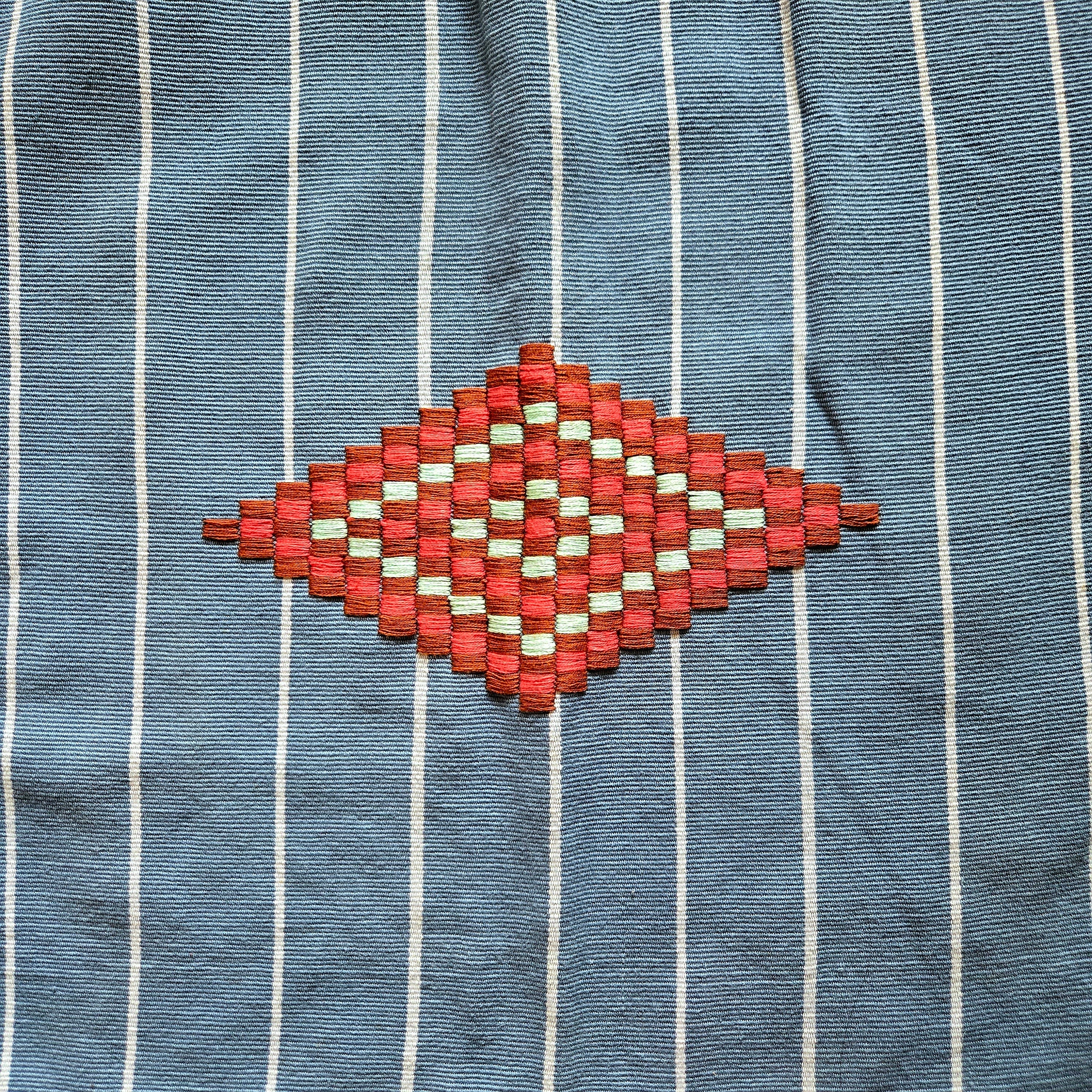 腰機という原始的な手法で織られた手織りの生地に、同じくチアパス州にあるオスチュク村のデザインの手刺繍が施されています。