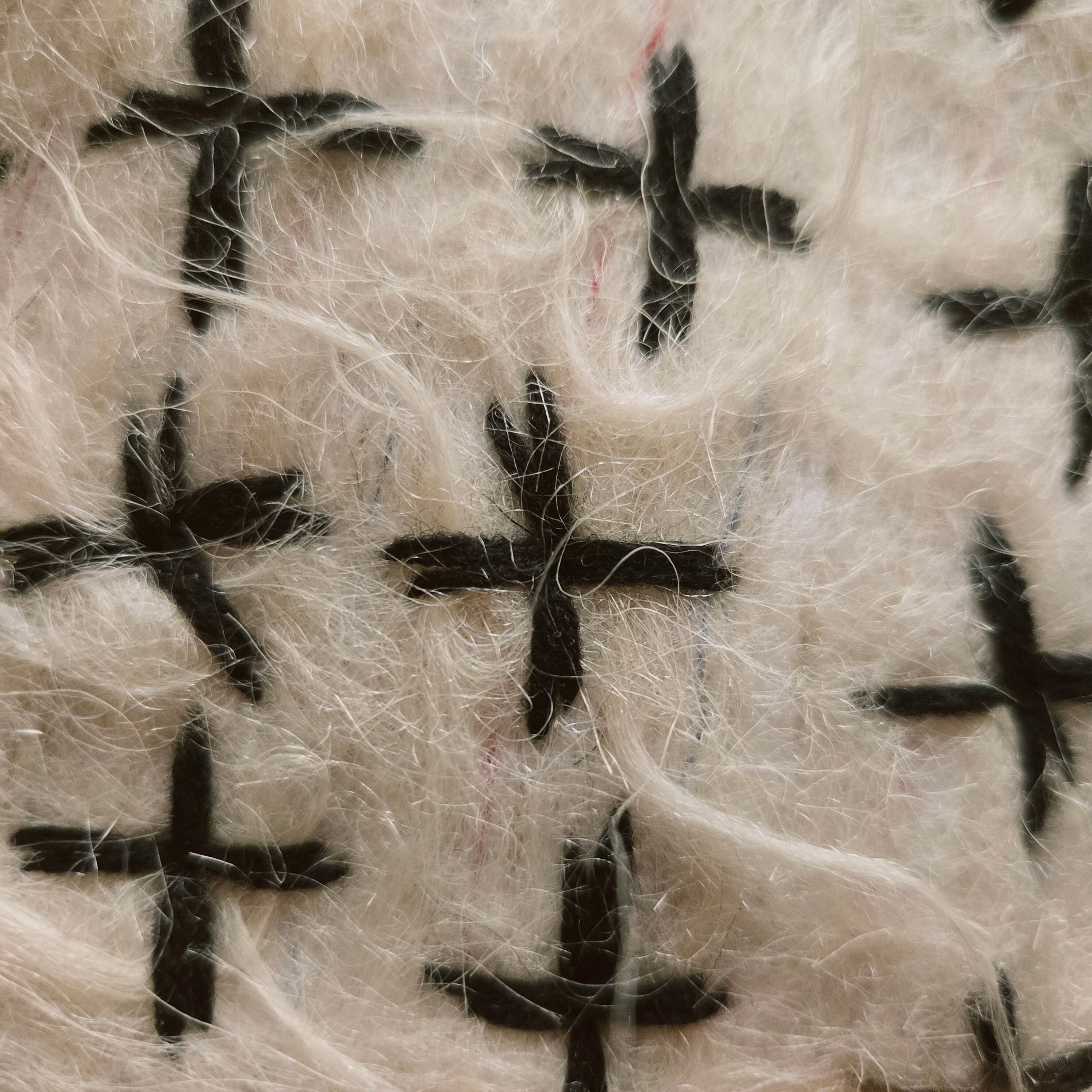 手織りの毛足が長いウール生地に手刺繍が入ったデザインです。