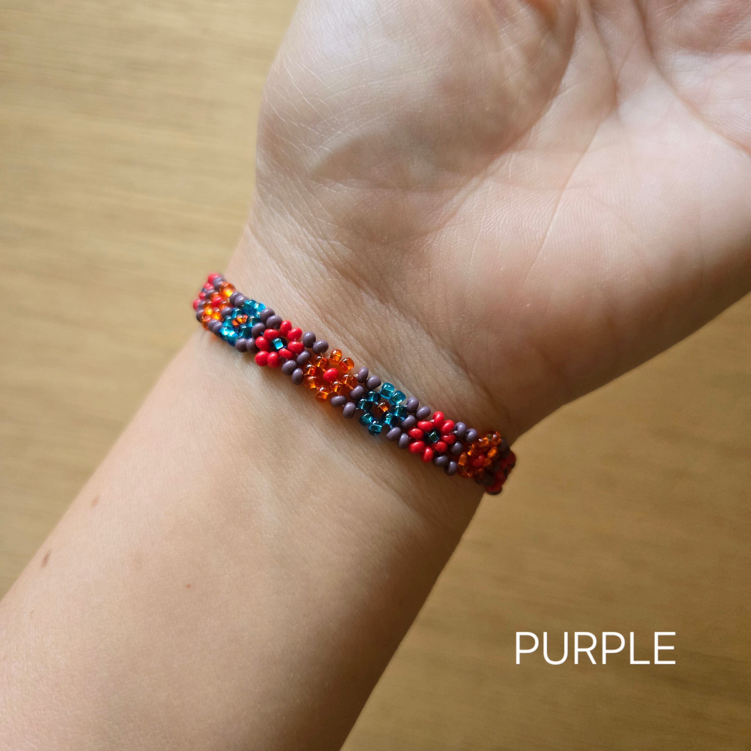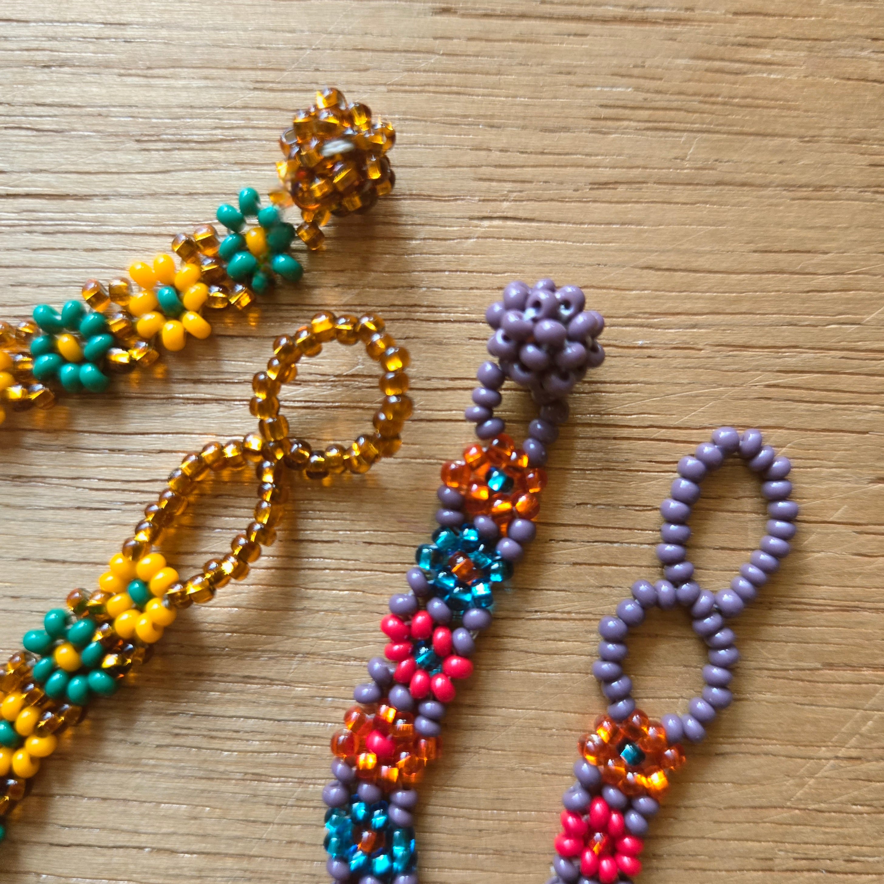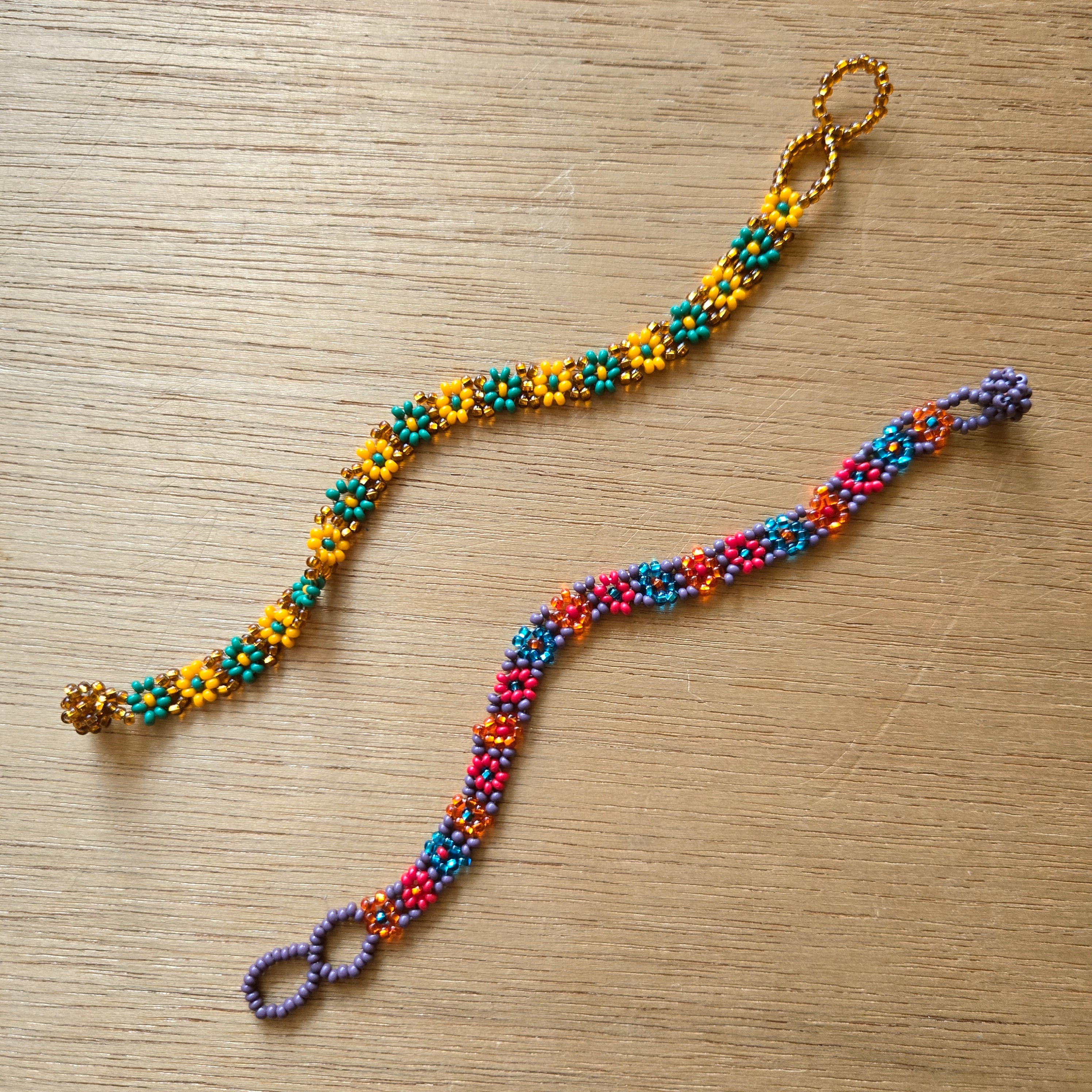 鮮やかなビーズで作られたお花のモチーフが手元を華やかに彩ります。