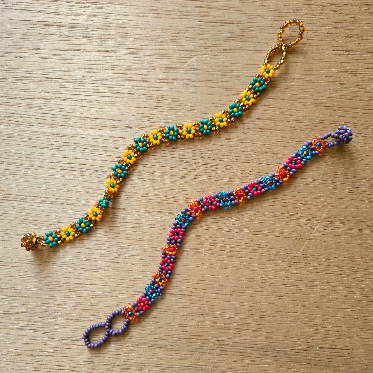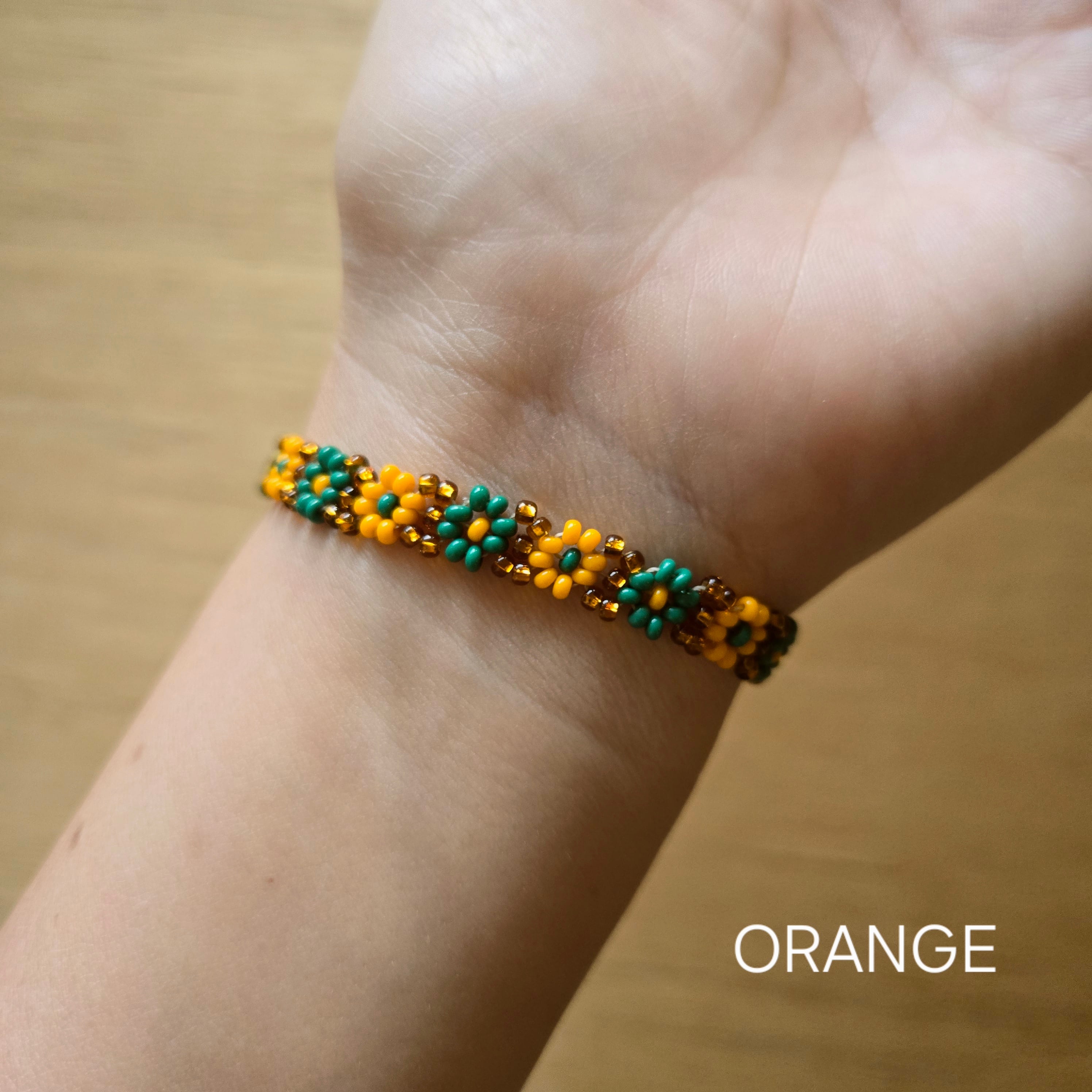 小さなビーズの小さなお花がたくさん並んだブレスレット。