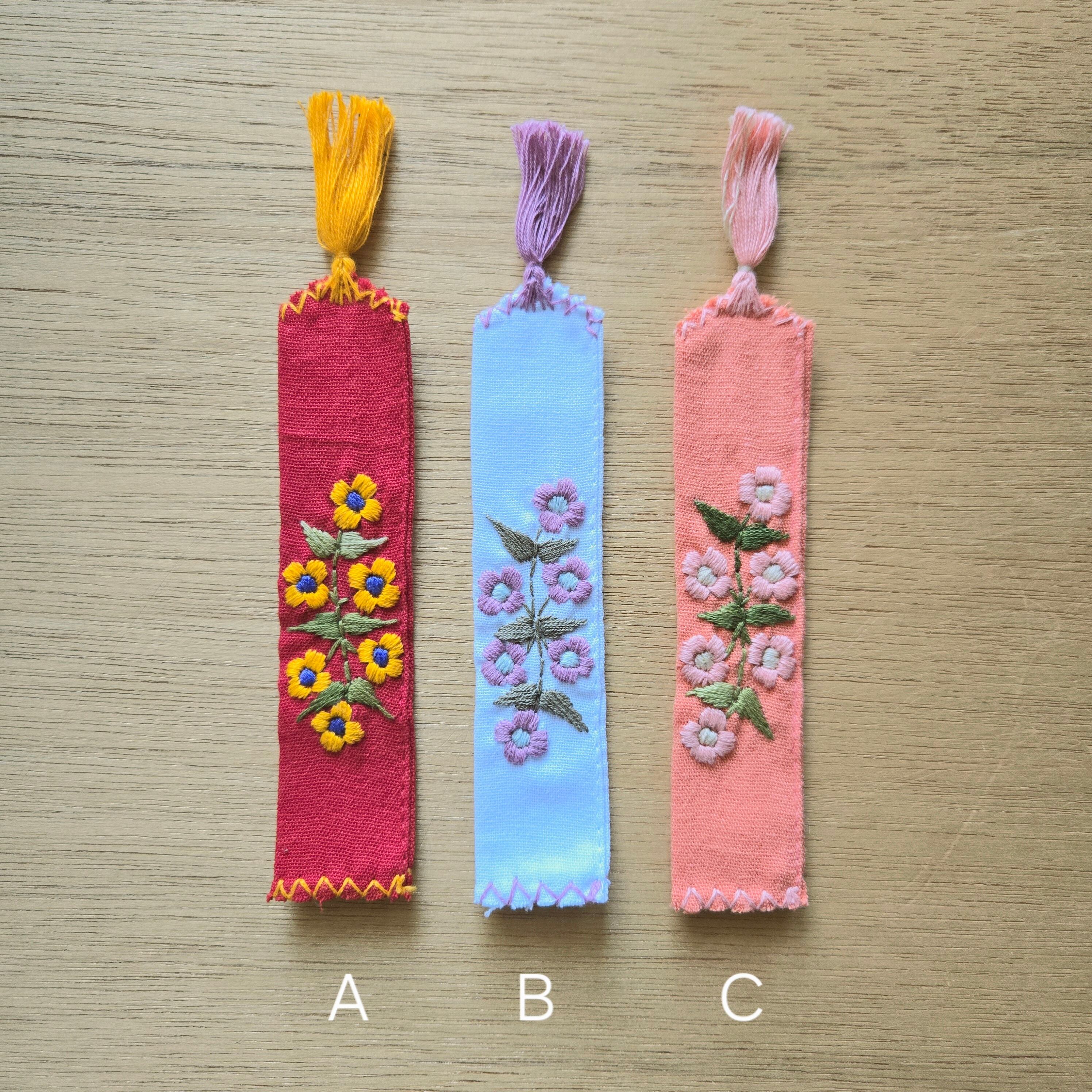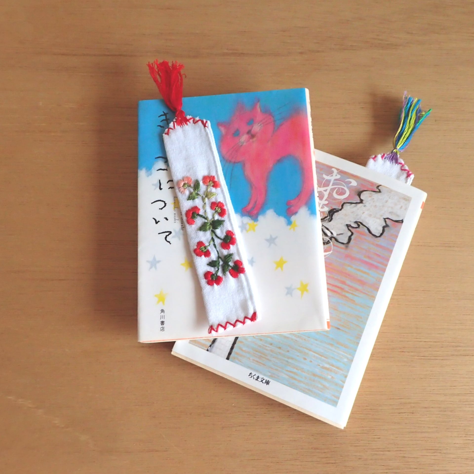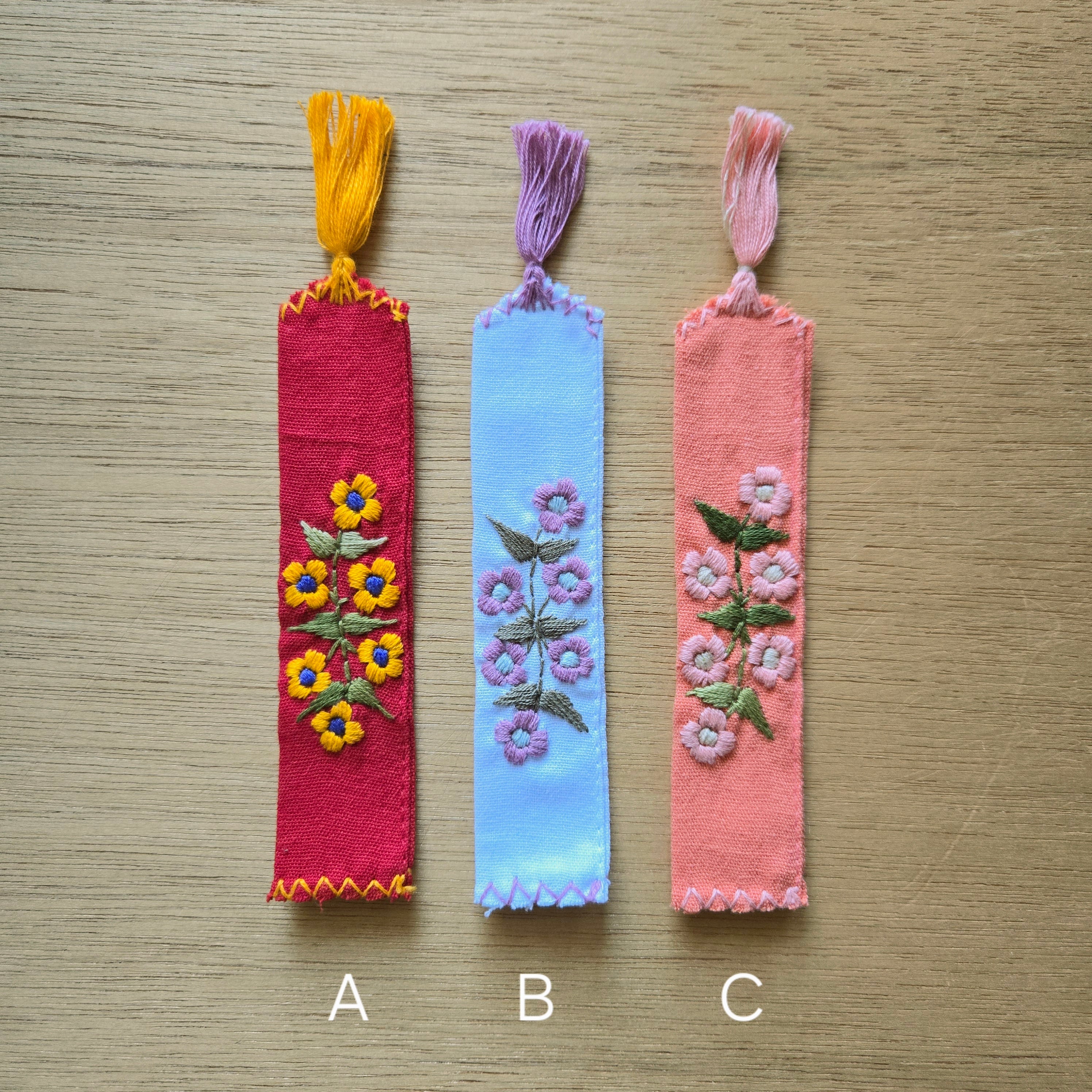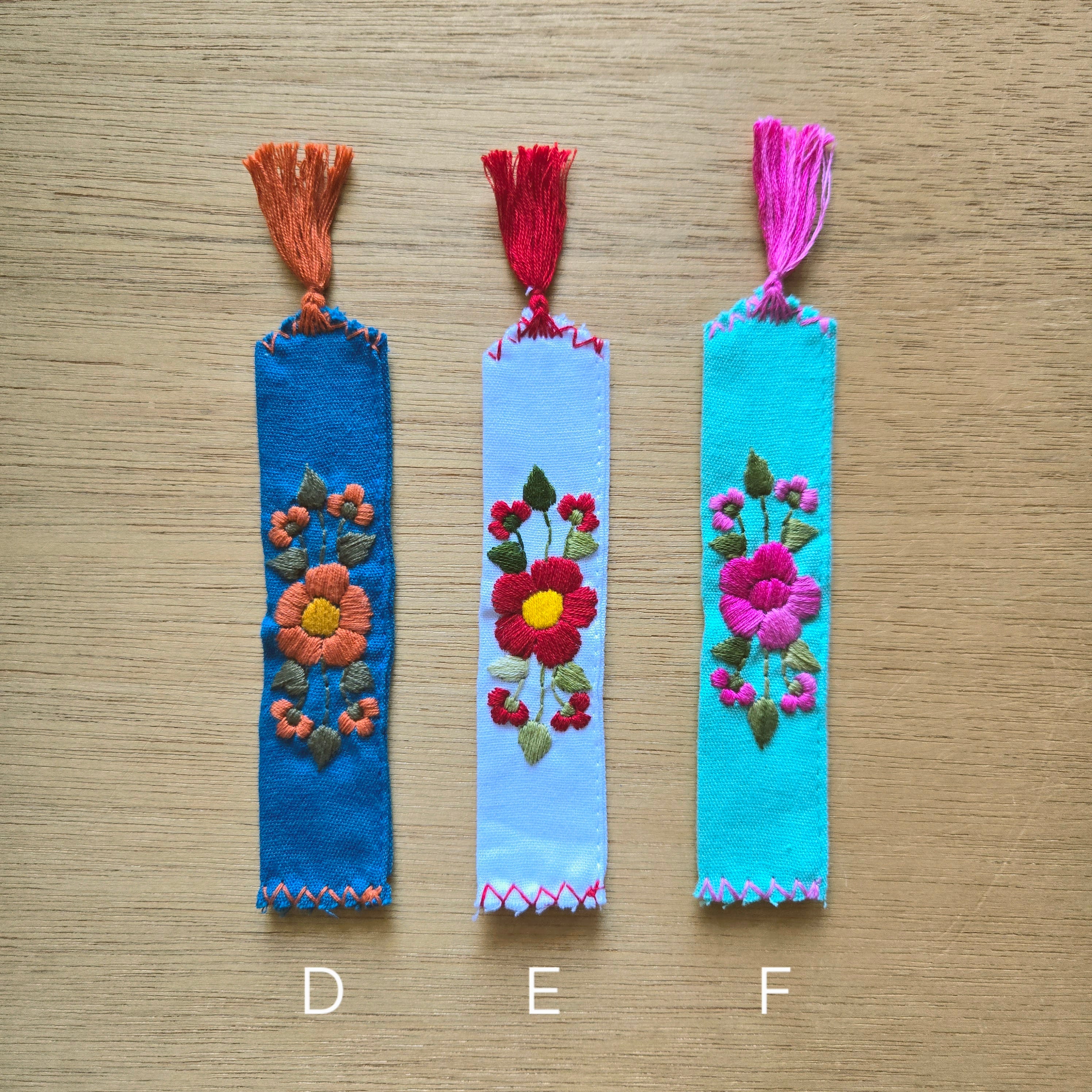 メキシコのチアパス州のメルカド(市場)で見つけたお花の手刺繍が施された布製の栞です。