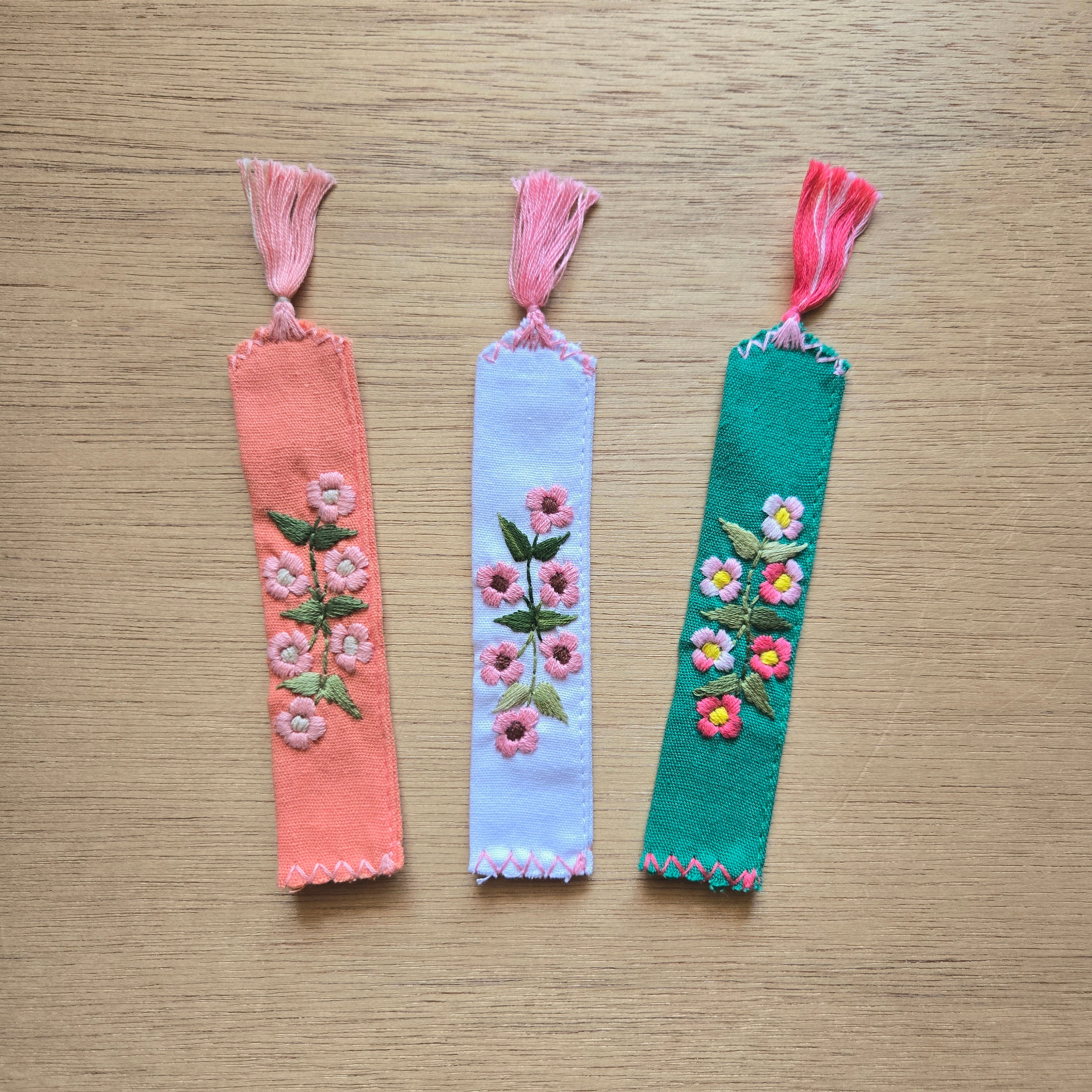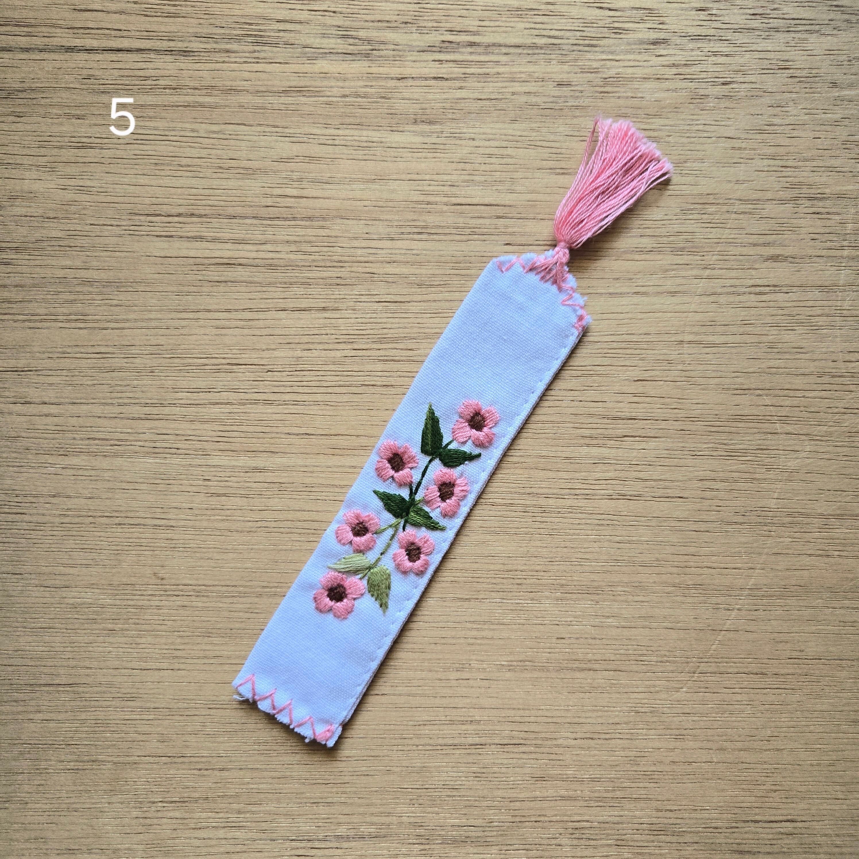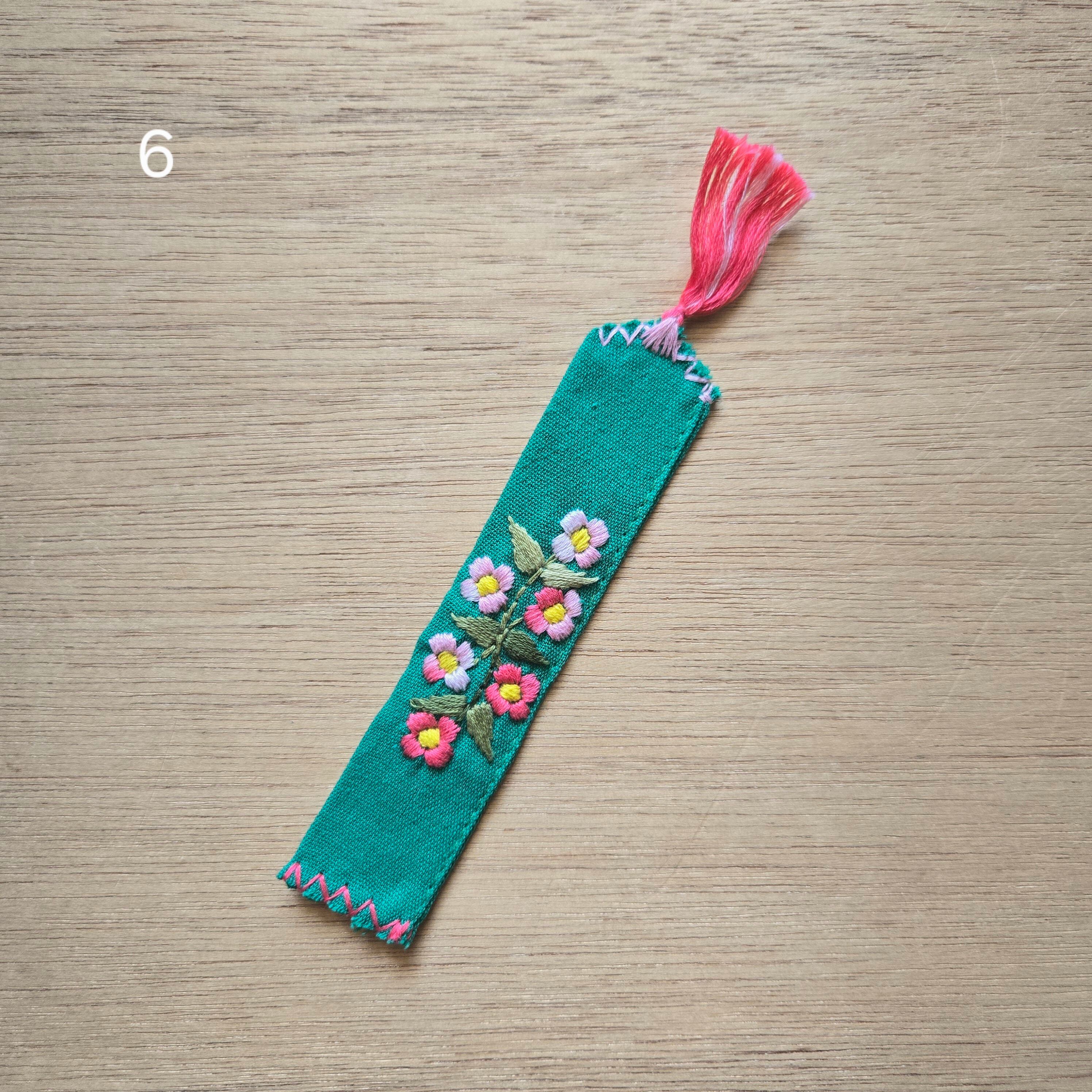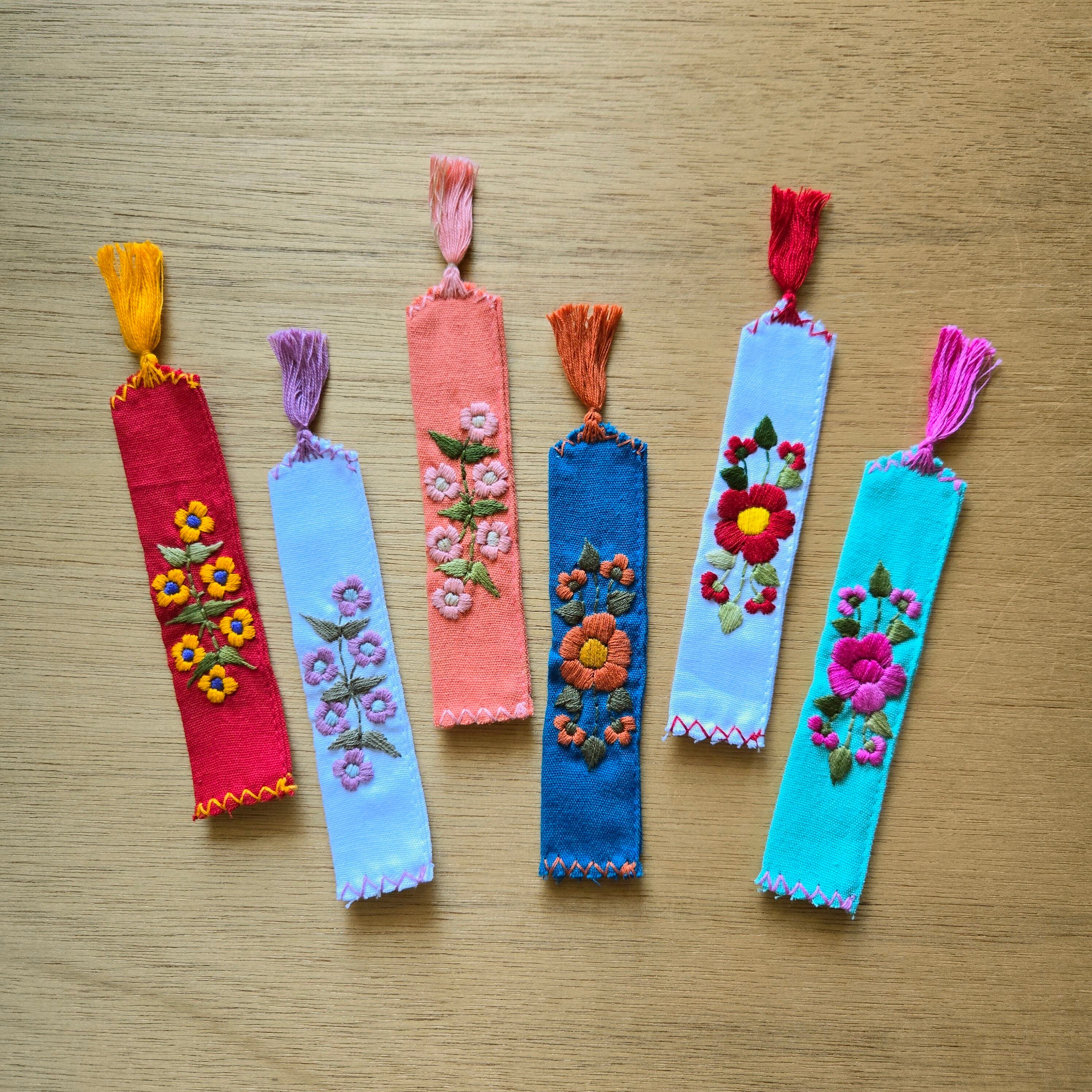メキシコのチアパス州のメルカド(市場)で見つけたお花の手刺繍が施された布製の栞です。