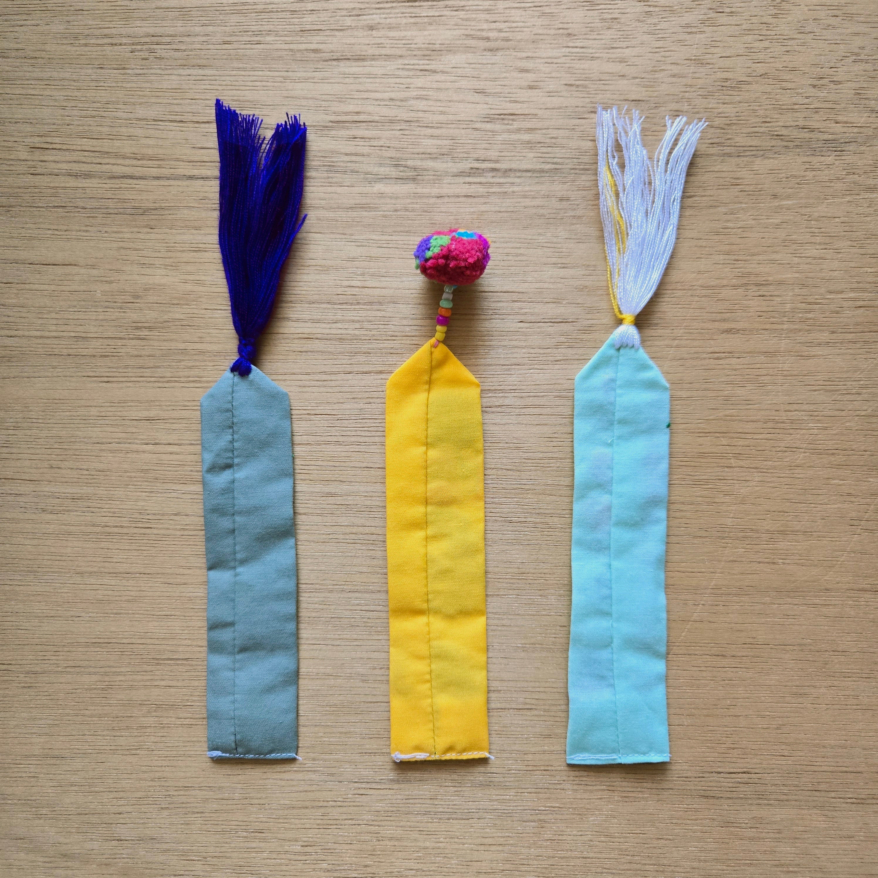 ラオスの山岳地域に住む少数民族モン族の手刺繍が施された布製の栞です。