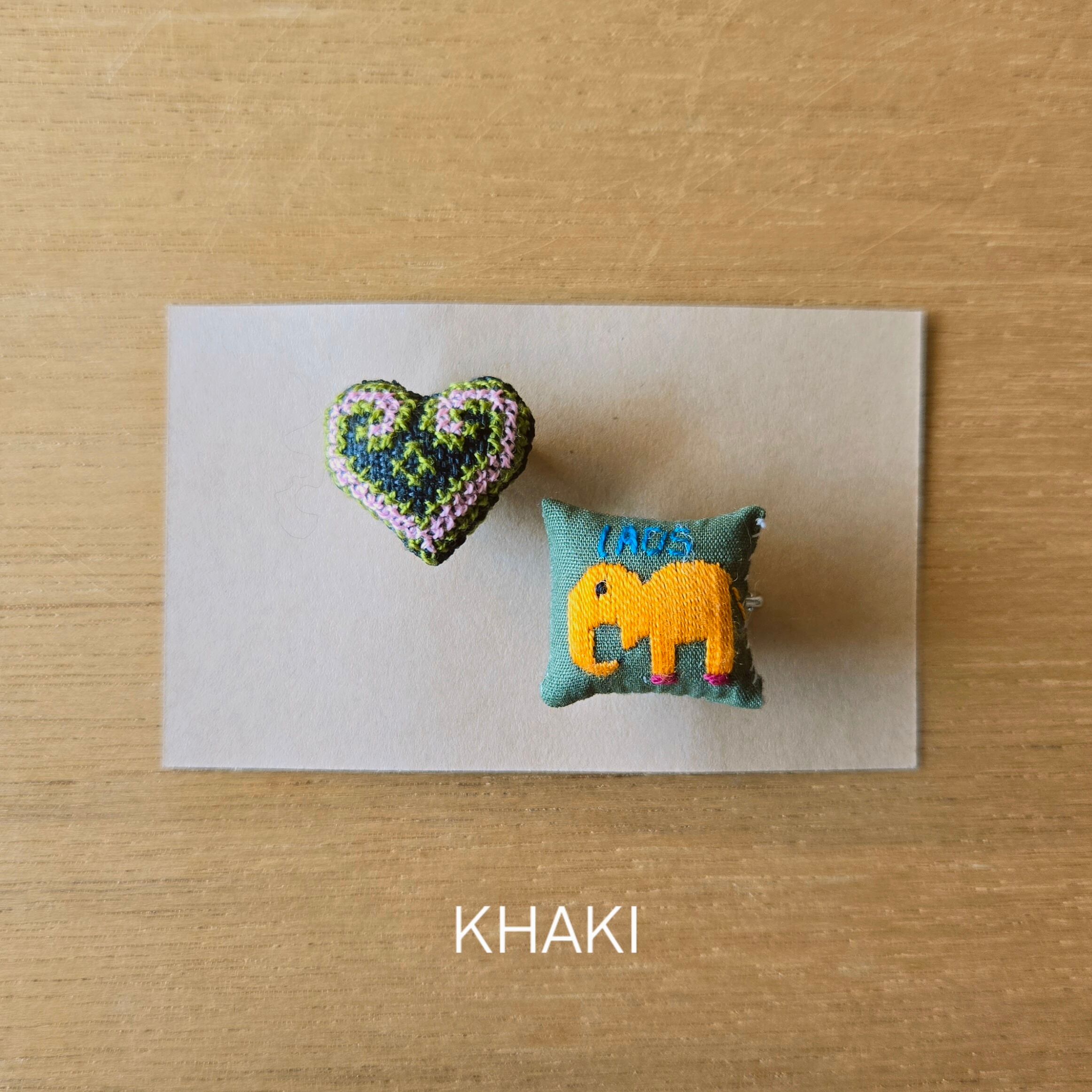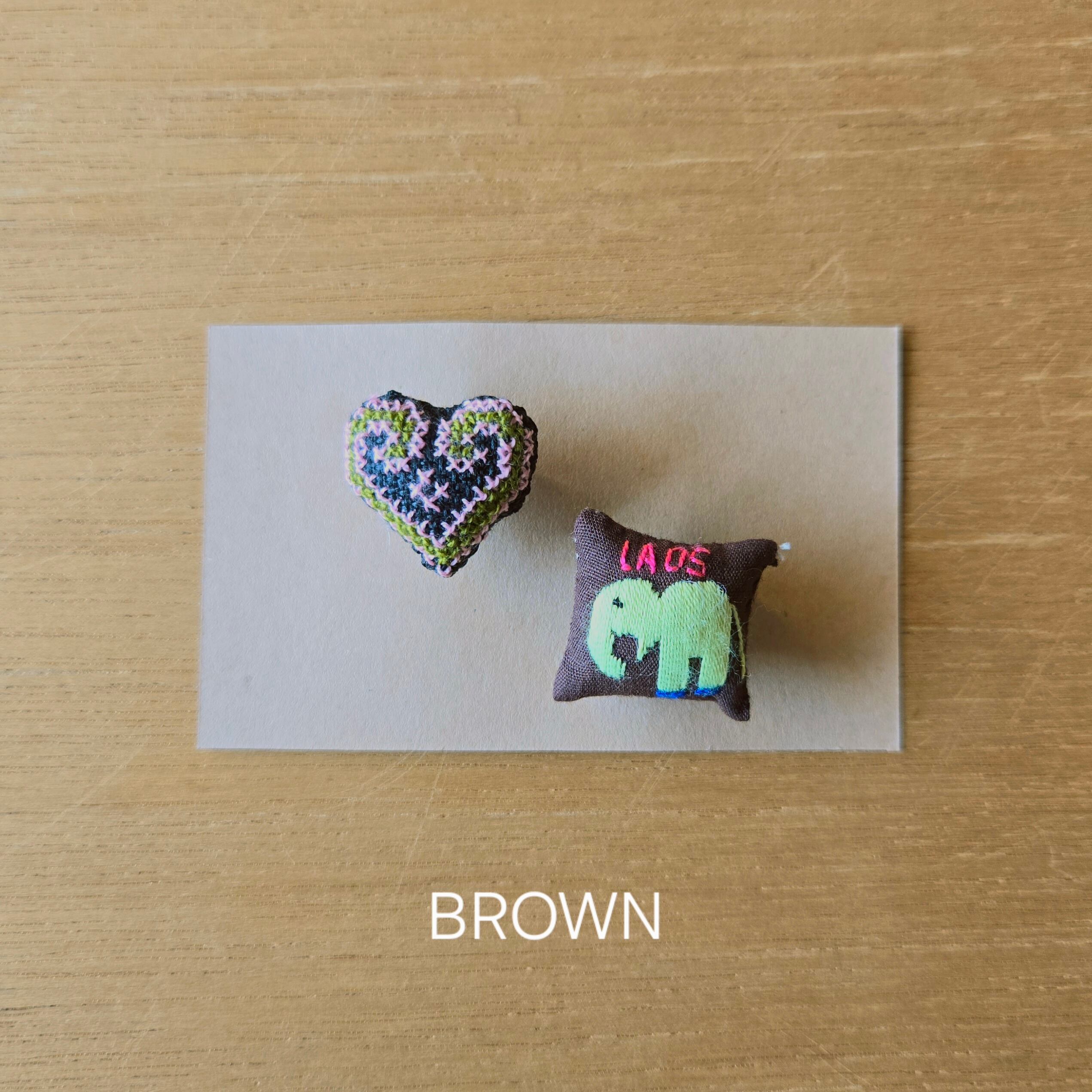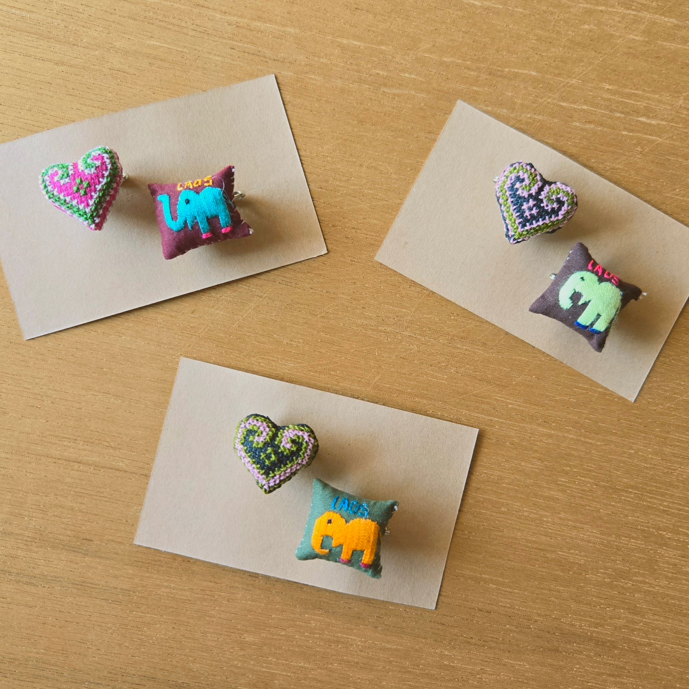 ラオス ゆる手刺繍ピンバッチ 2個セット