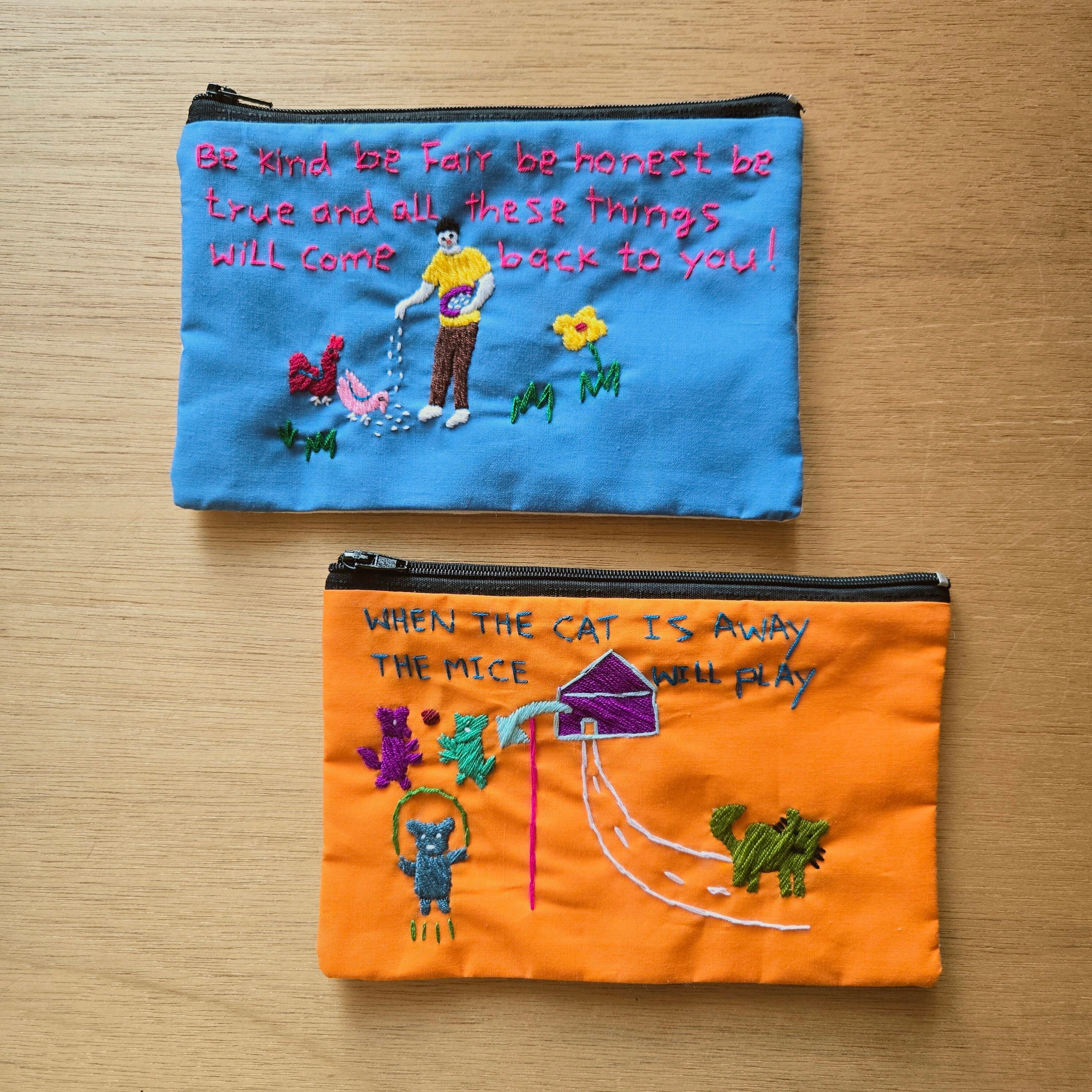 ラオス チャーリーさんのゆる手刺繍ポーチM