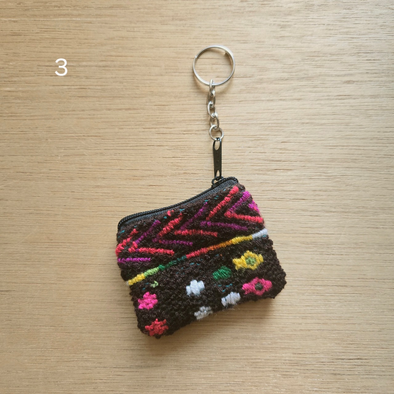 全て手織り手刺繍で作られた芸術的なヴィンテージウイピルの小さなポーチにキーホルダーが付いています。