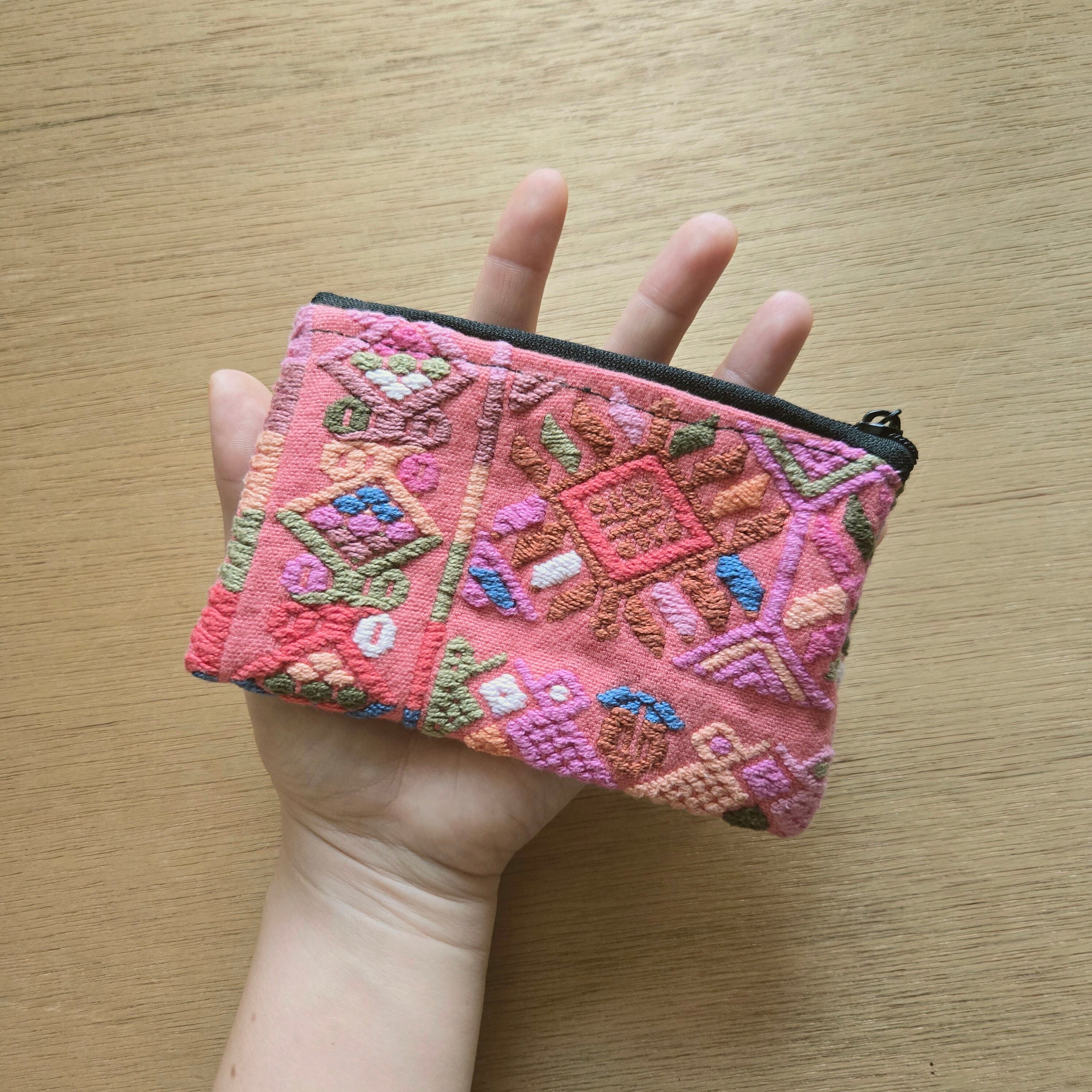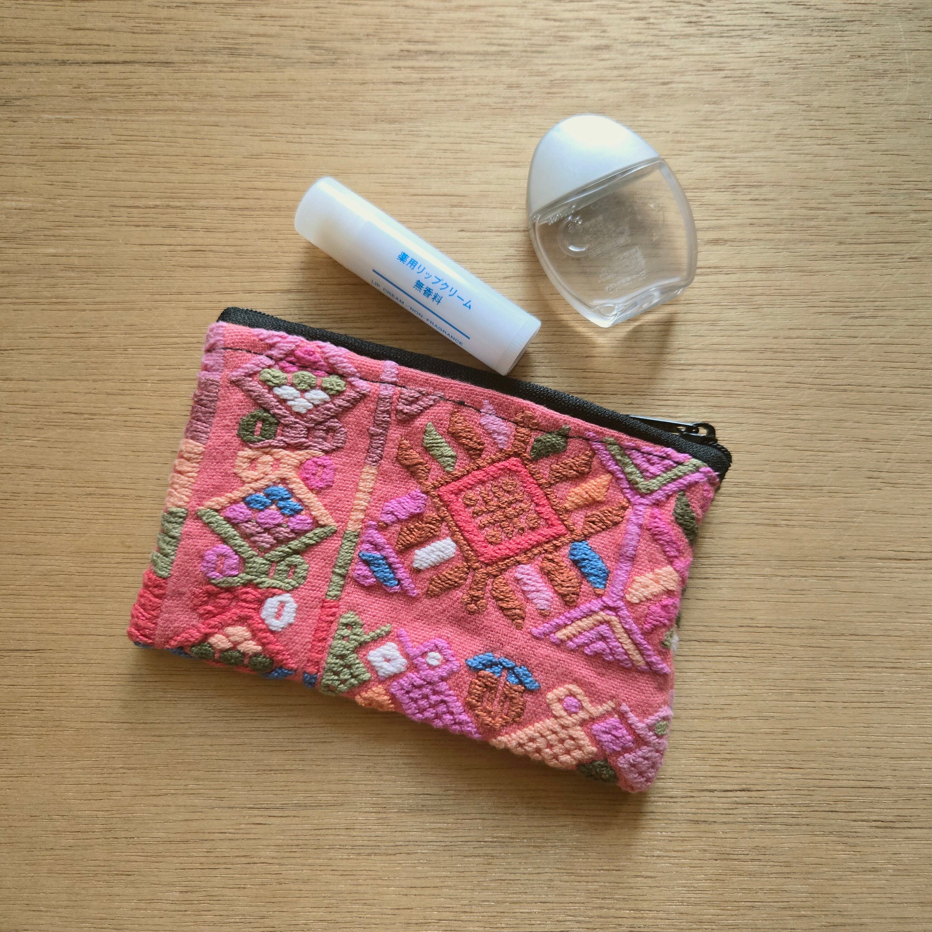 ポーチには全て手織り手刺繍で作られた芸術的なヴィンテージウイピルが贅沢に全面に使われています。