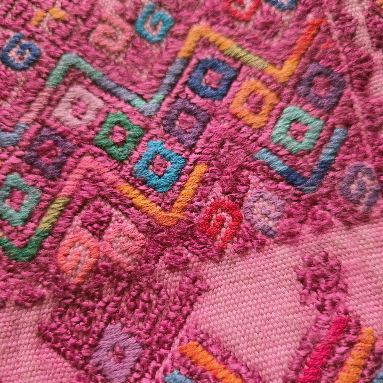 古代マヤ文明の時代から続く織りの技術で作られた細かな模様の美しさ、そして中米らしいカラフルな色合いが目を引きます。