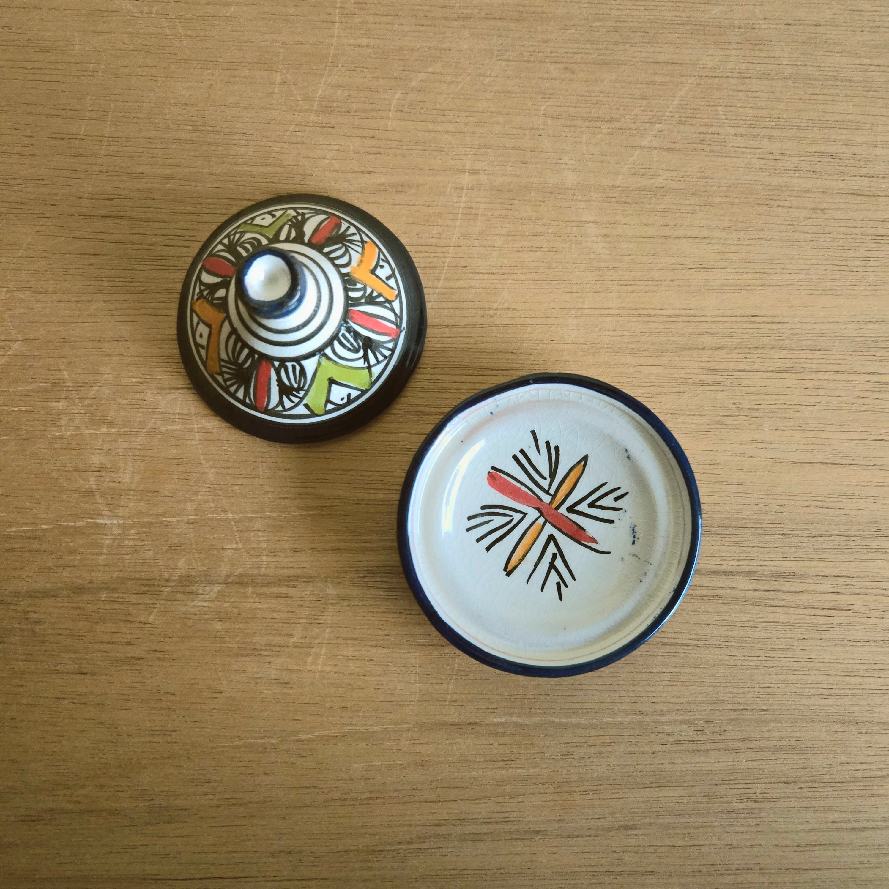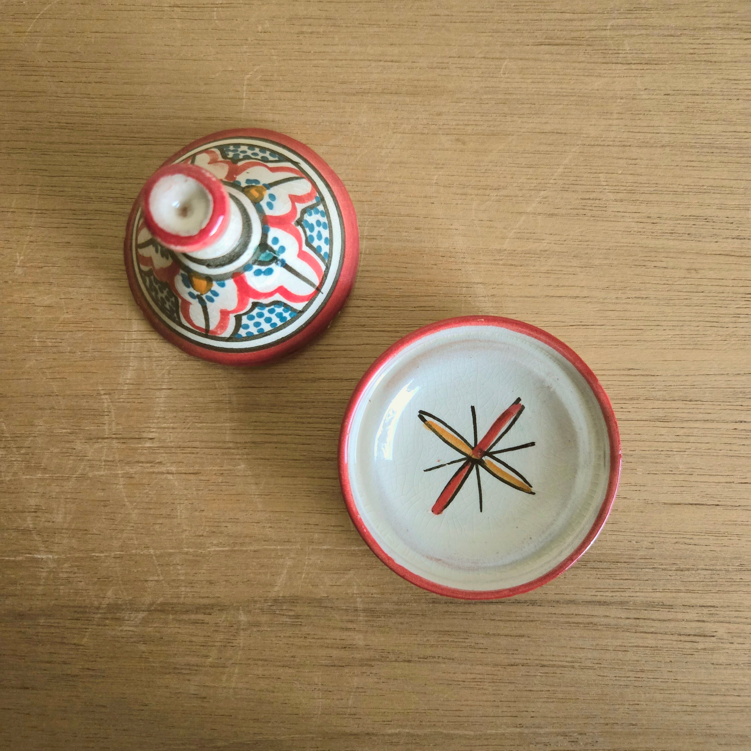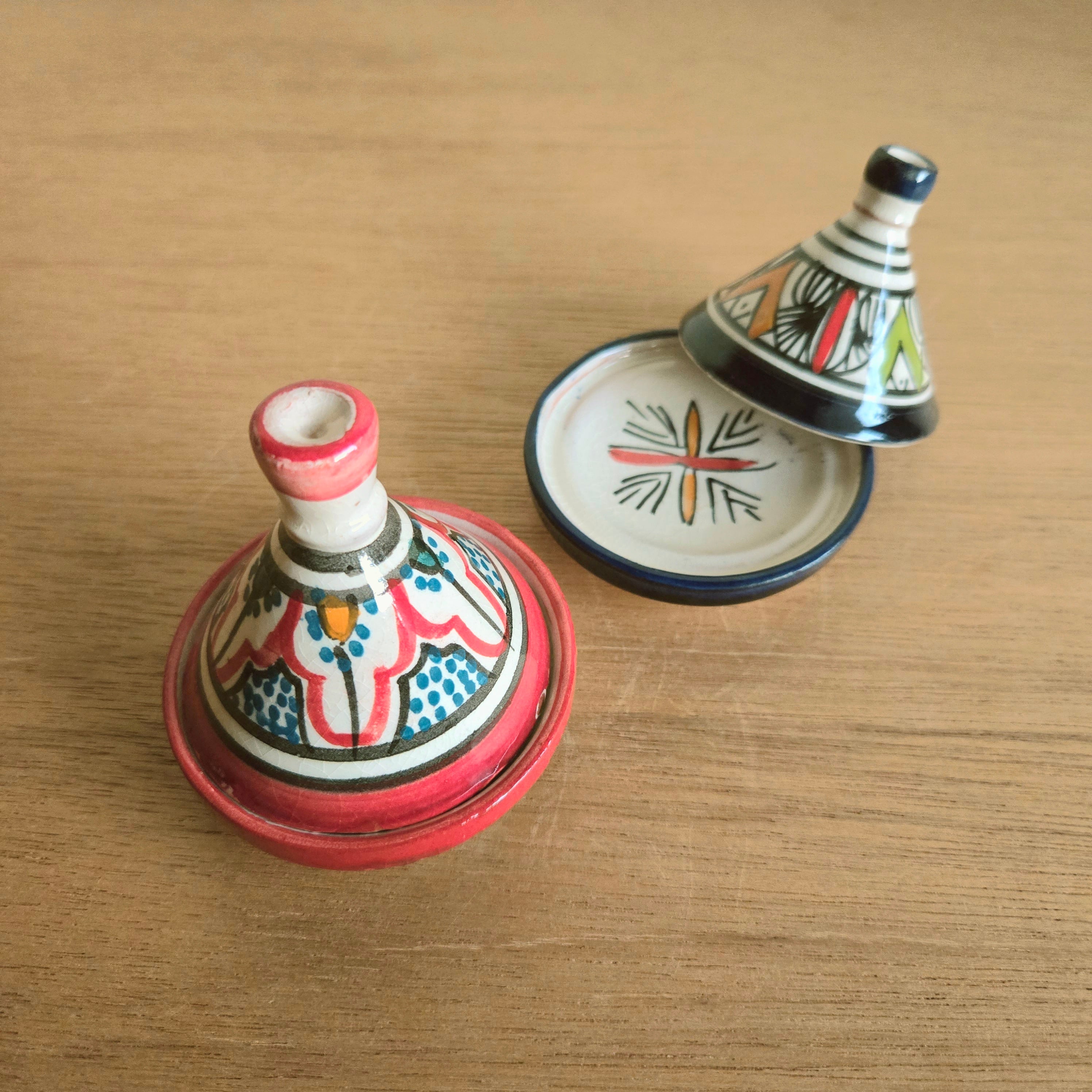モロッコ・マラケシュのスーク(市場)で見つけた、タジン型のミニ小物入れ。
