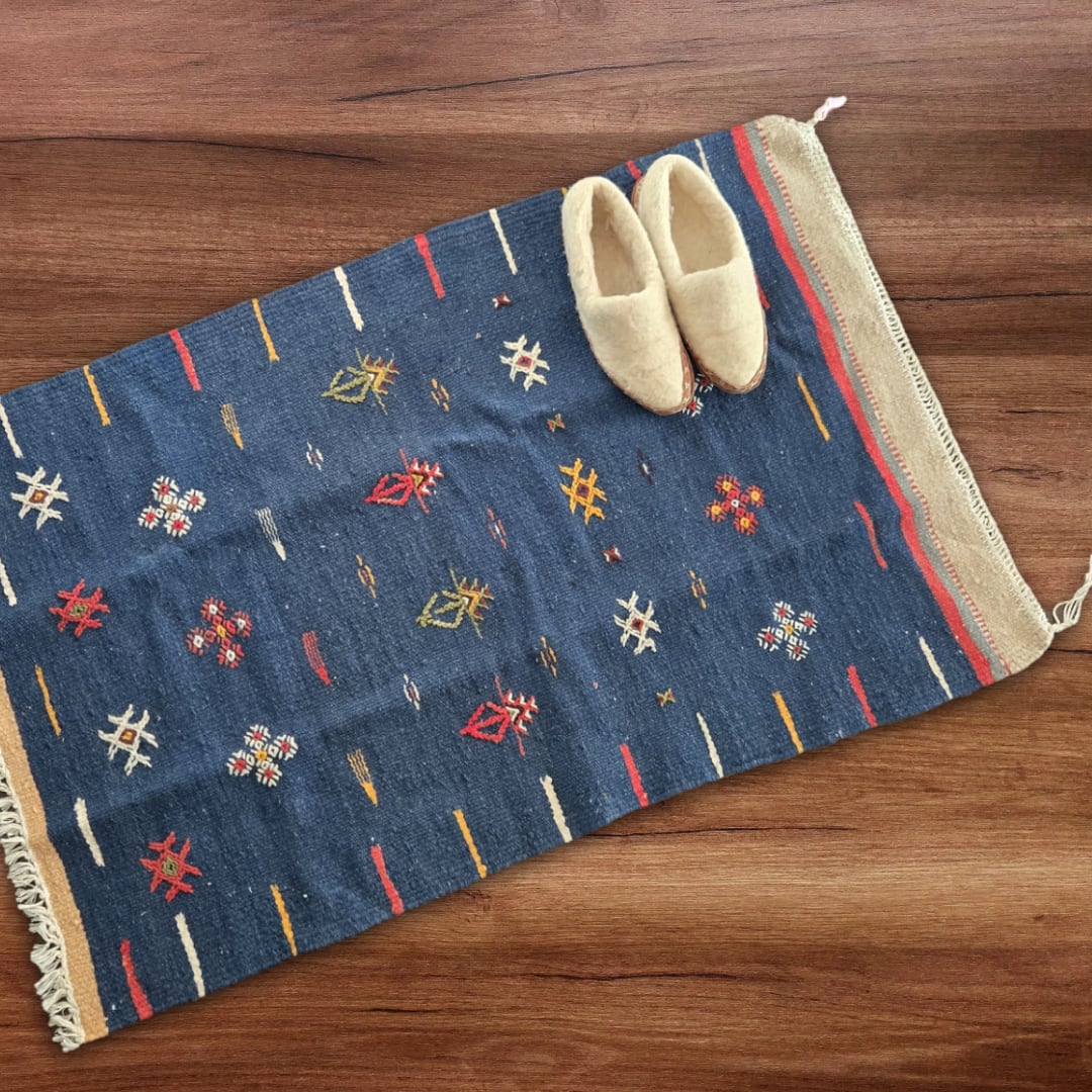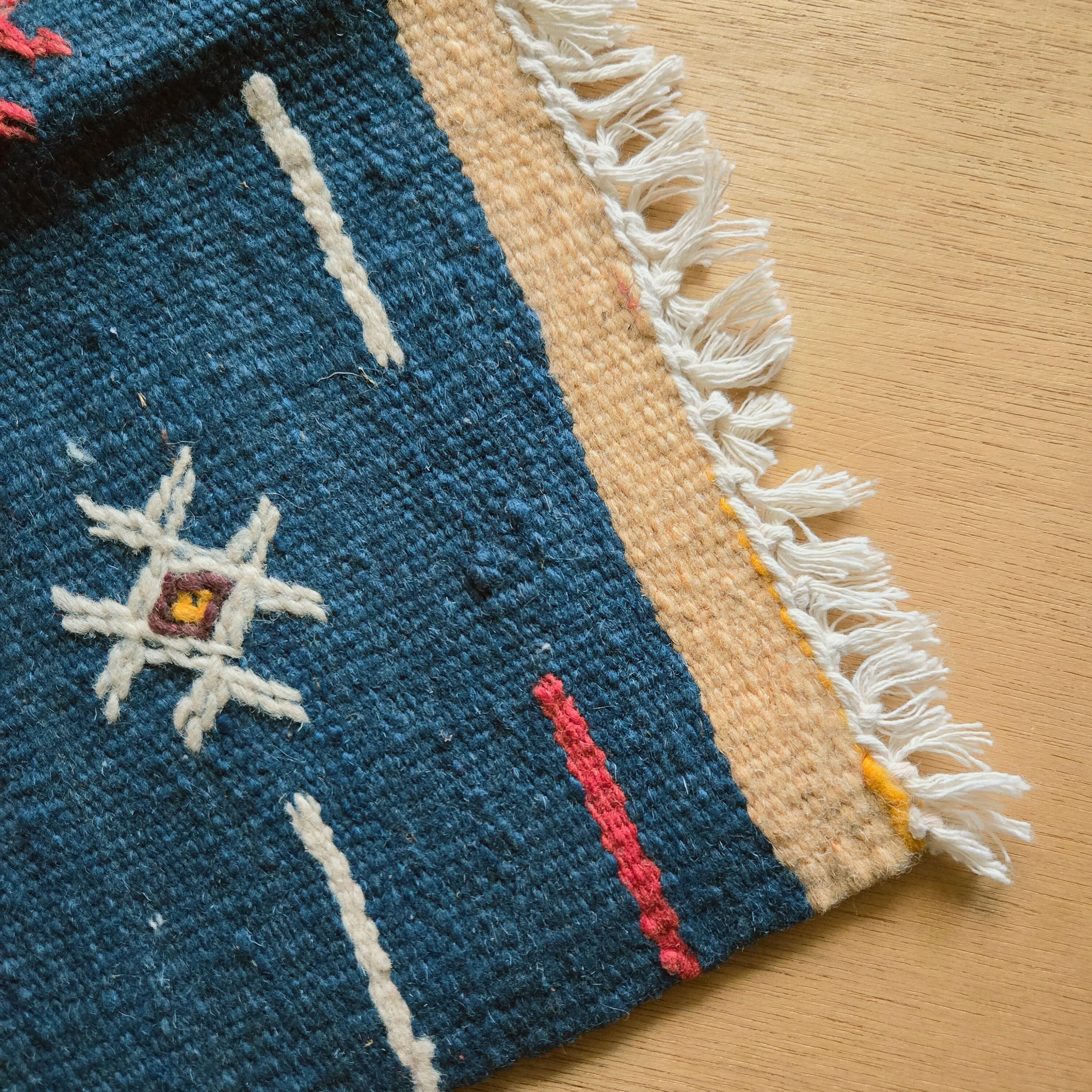 モロッコ・マラケシュのスークで見つけた、ベルベルの人々による手仕事のウールラグ。