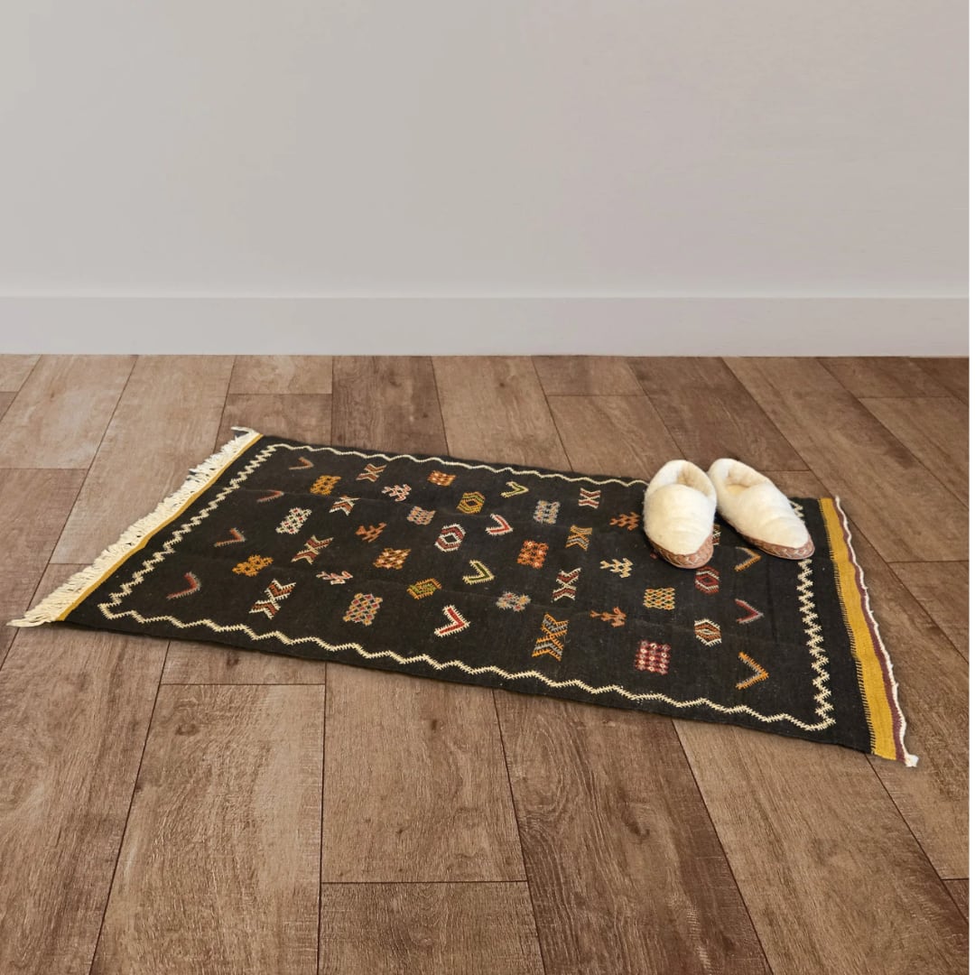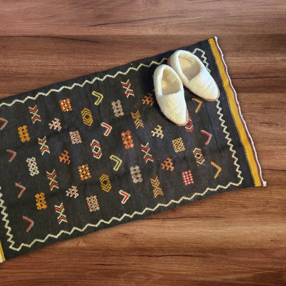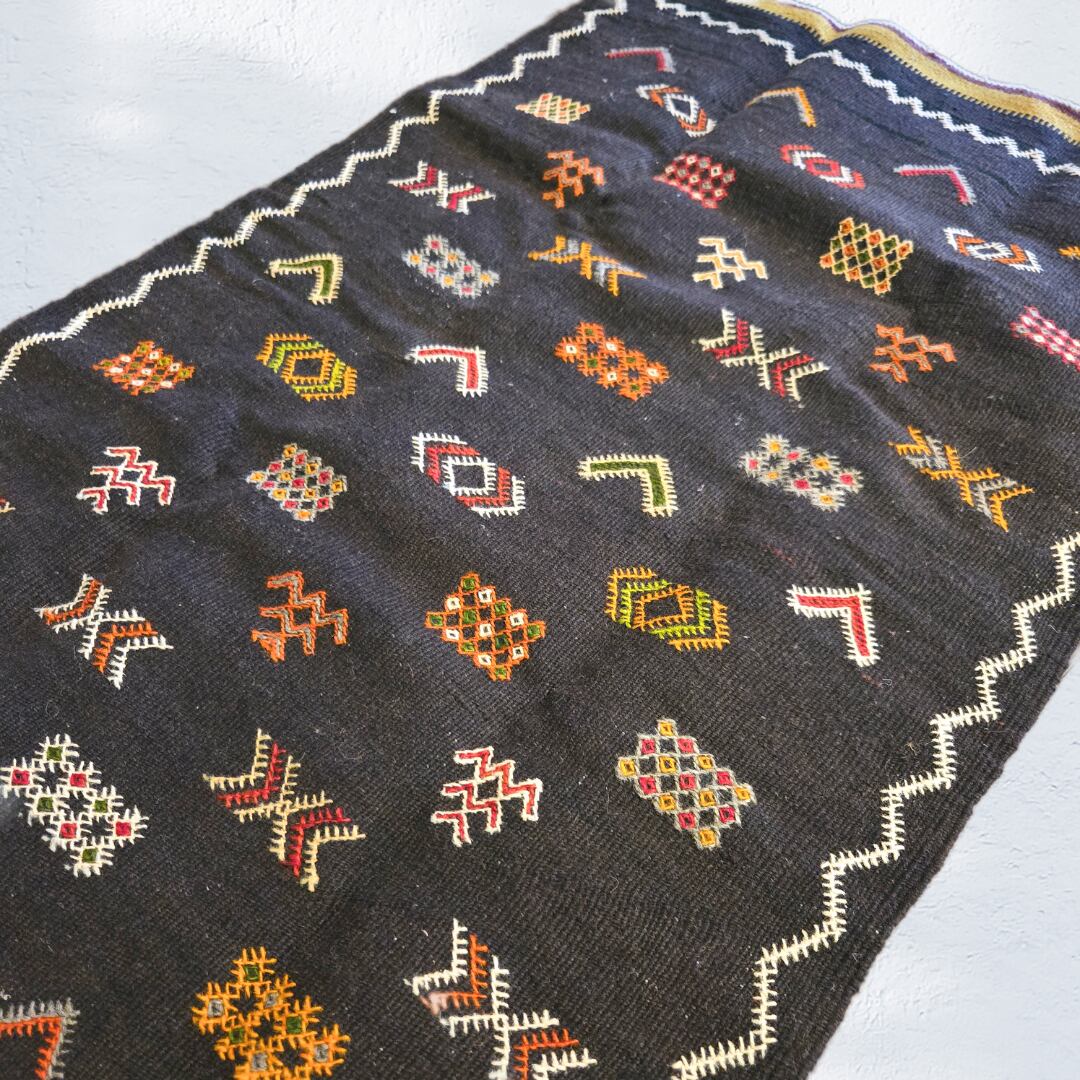 モロッコ・マラケシュのスークで見つけた、ベルベルの人々による手仕事のウールラグ。