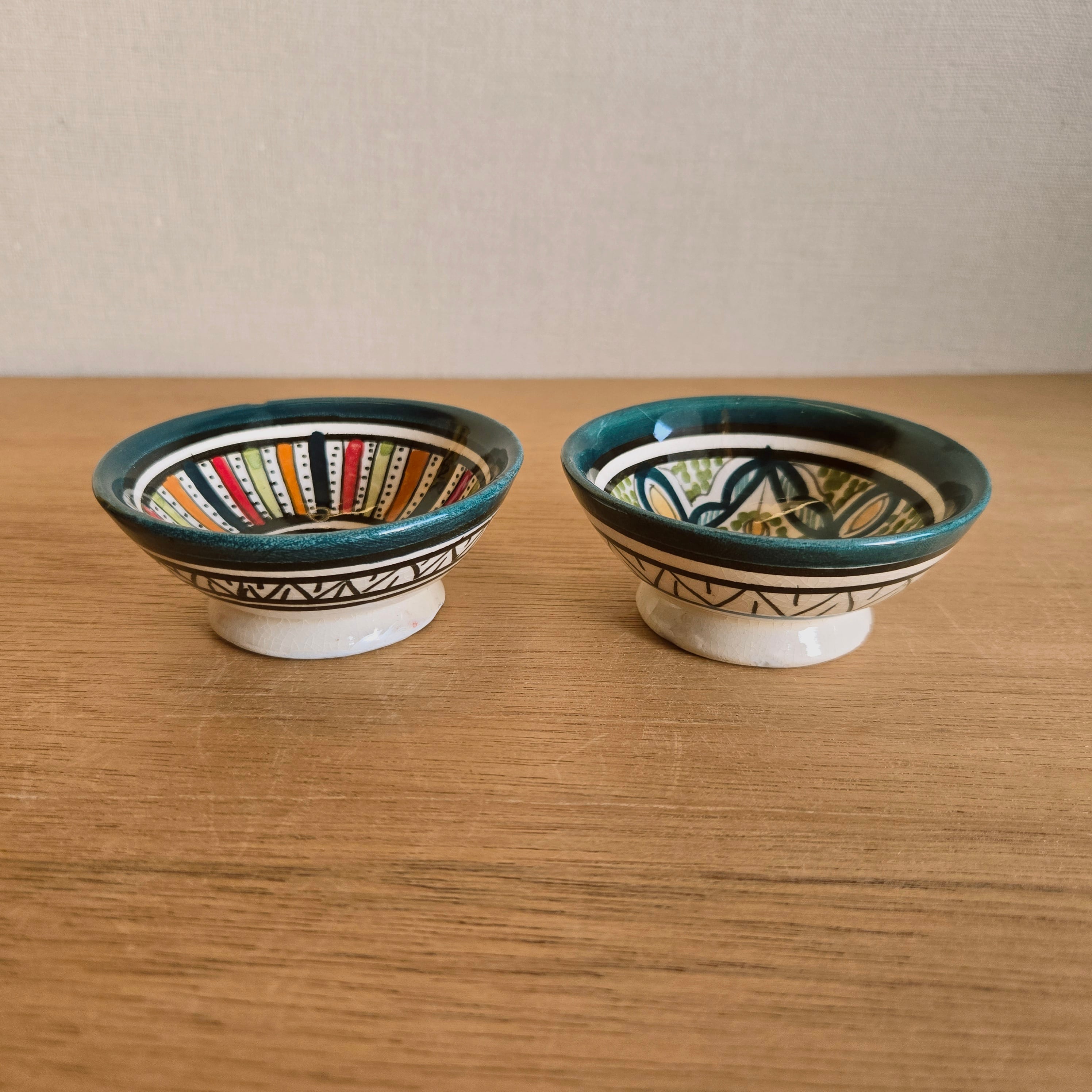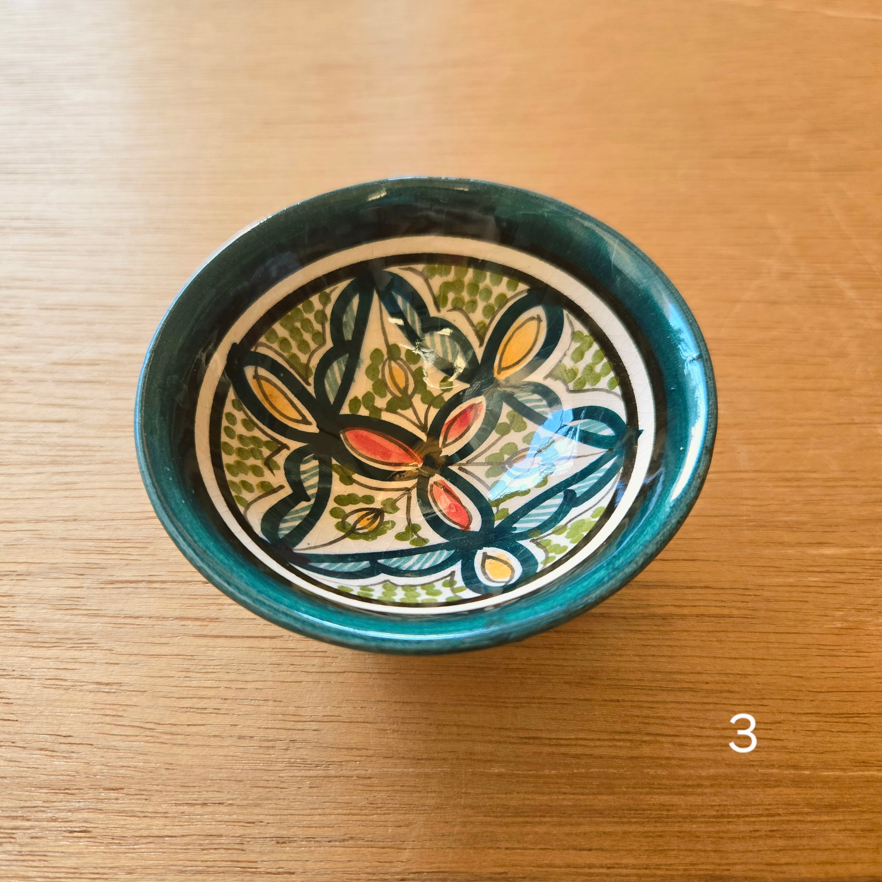ひとつひとつ手描きされた、モロッコらしい絵柄が可愛いミニサイズの器です。