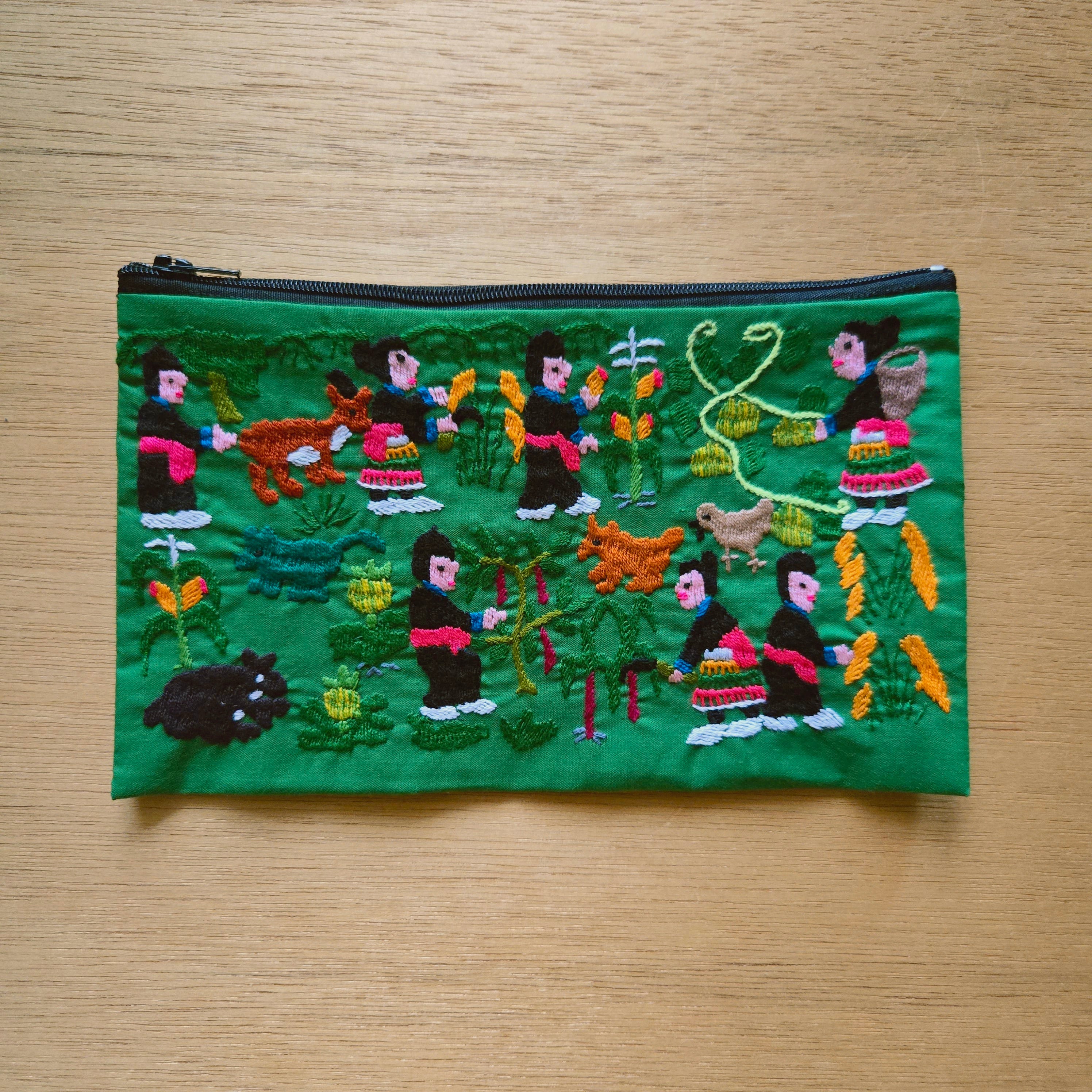 ラオスの山岳地域に住む少数民族モン族の手刺繍が施されたフラットタイプのポーチ。