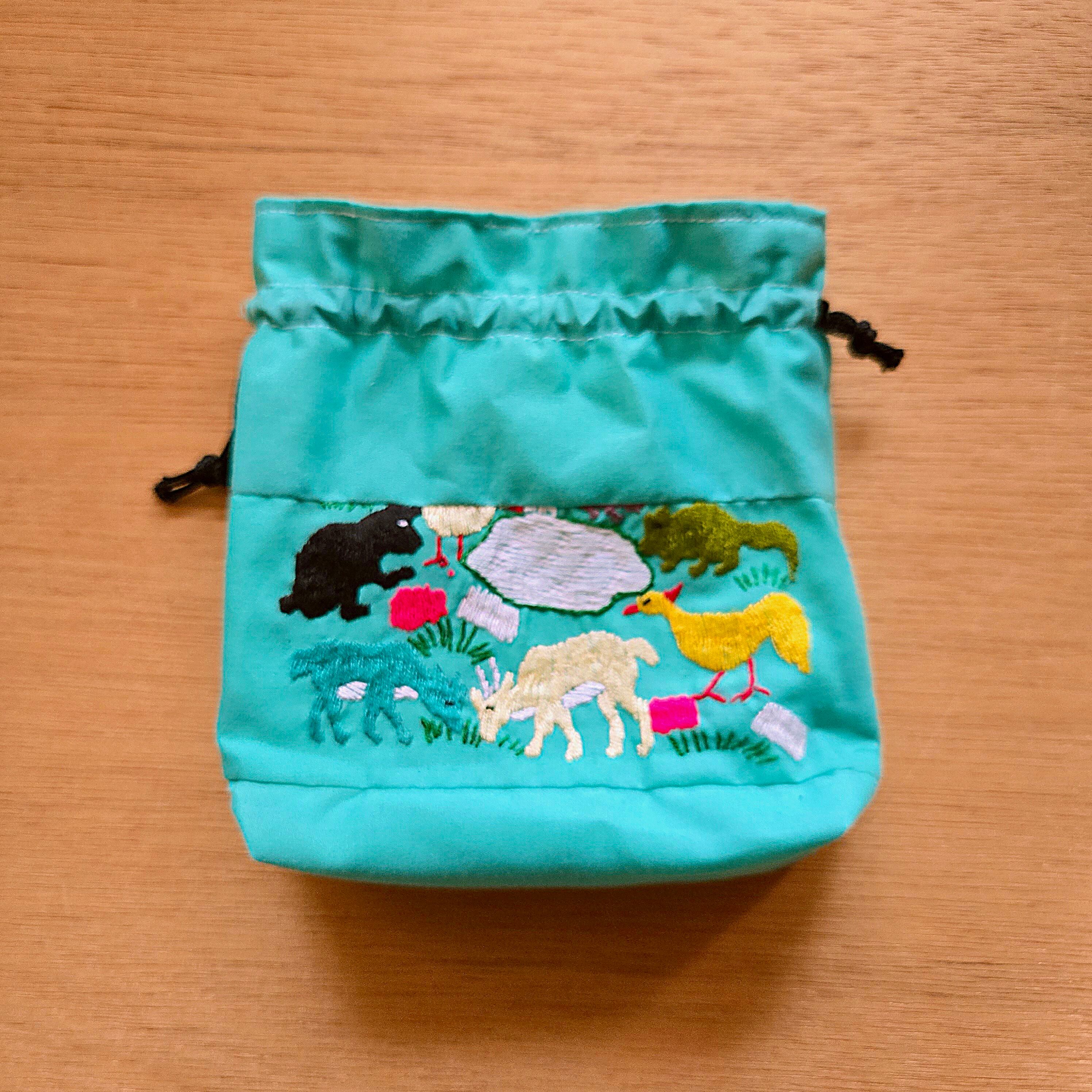 両面にいきいきとした動物たちが、両面に細やかな刺繍で描かれた賑やかな一品です。