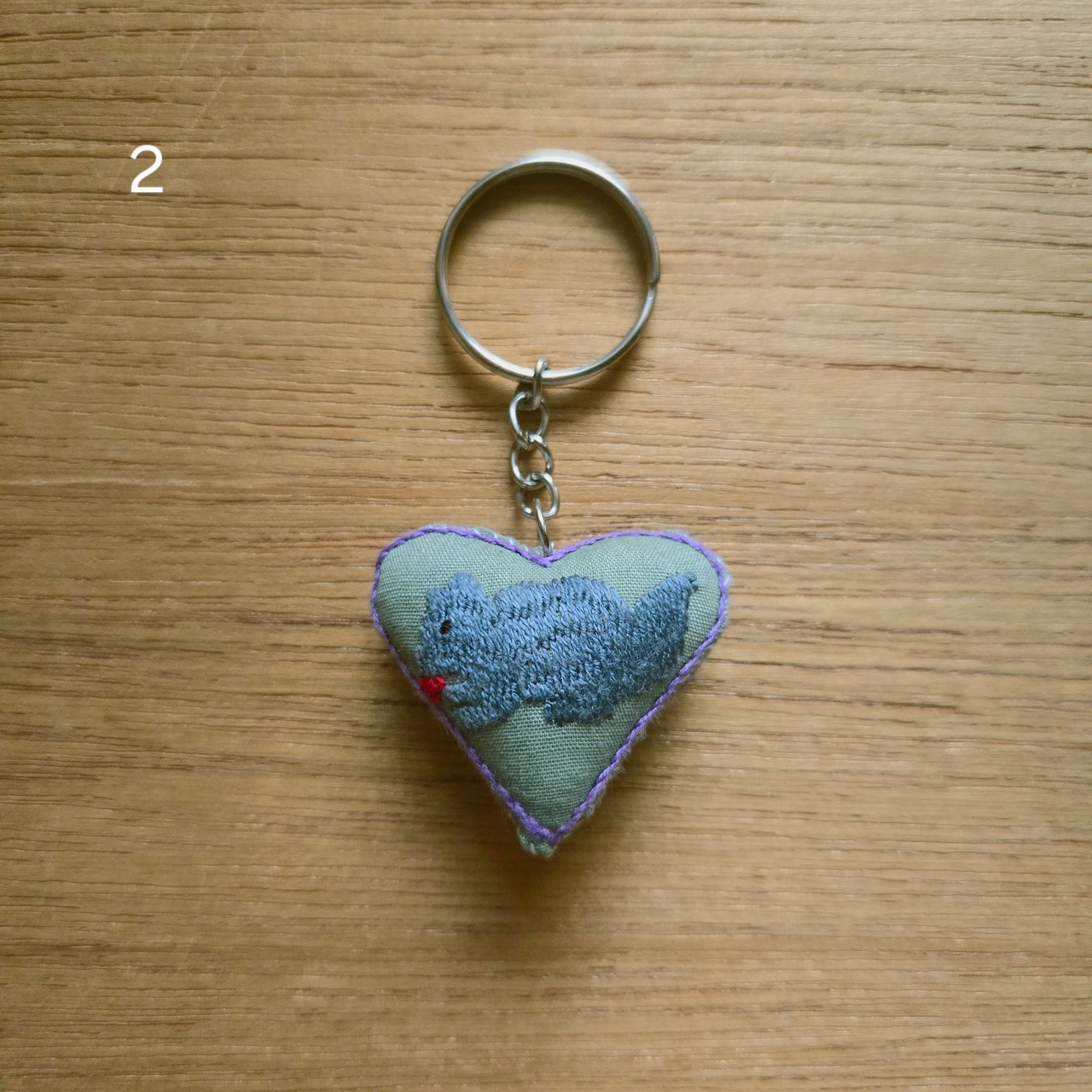 ラオスの山岳地域に住む少数民族モン族の手刺繍が入ったハート型のキーホルダーです。