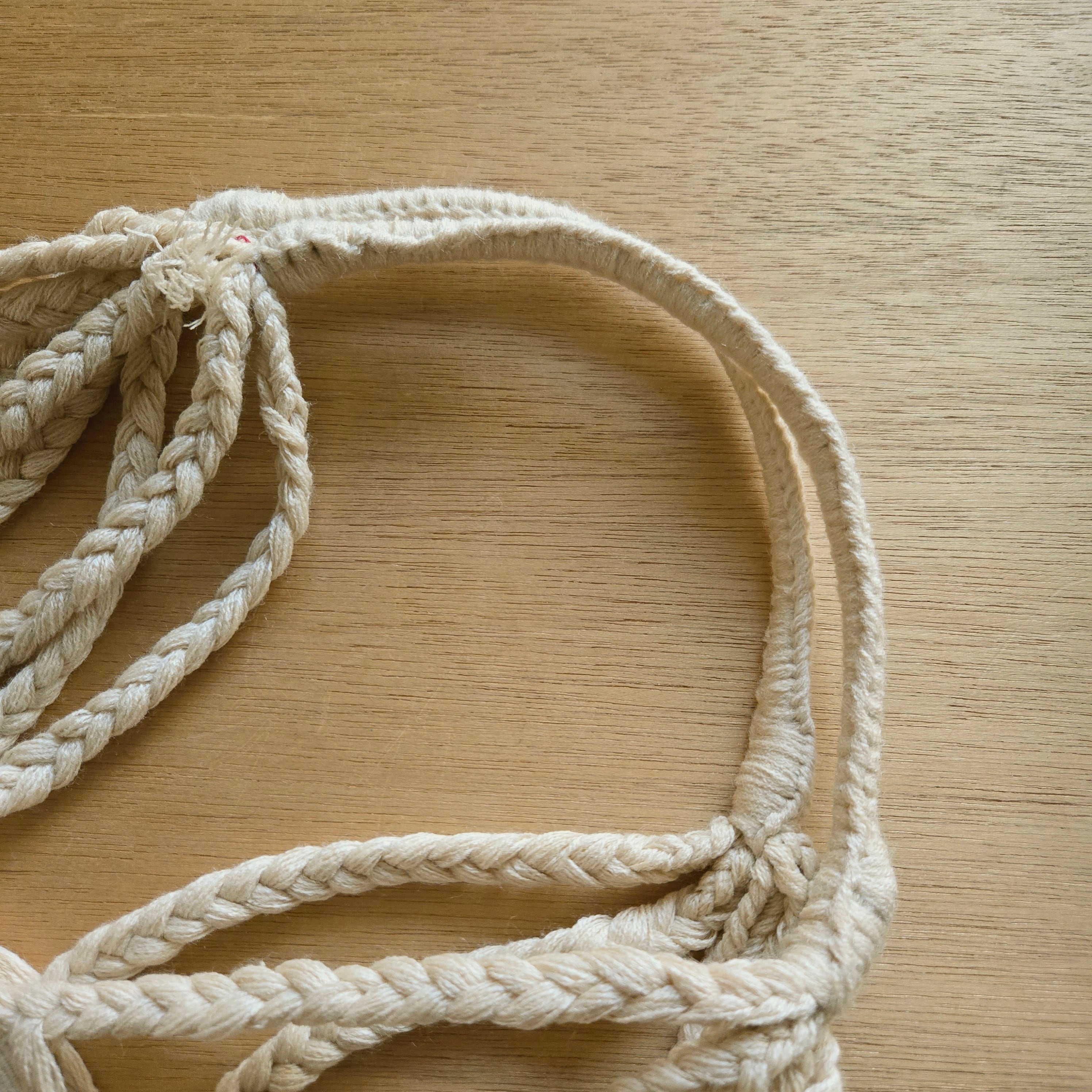 持ち手から反対側の持ち手までひと続きで織られているため、持ち手部分や底部分に縫い目がなく丈夫なつくりになっています。