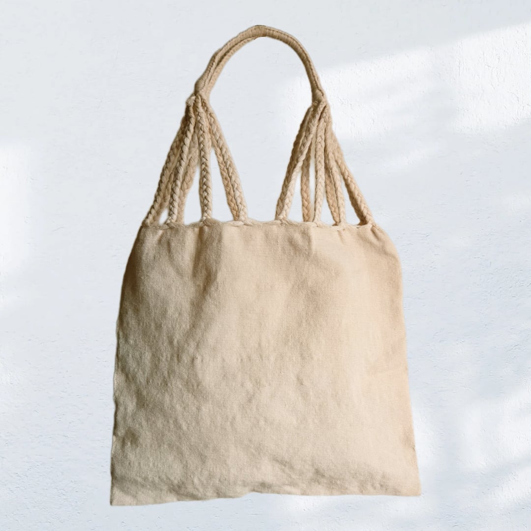 厚手のコットン生地、A4サイズも入る大きさです。