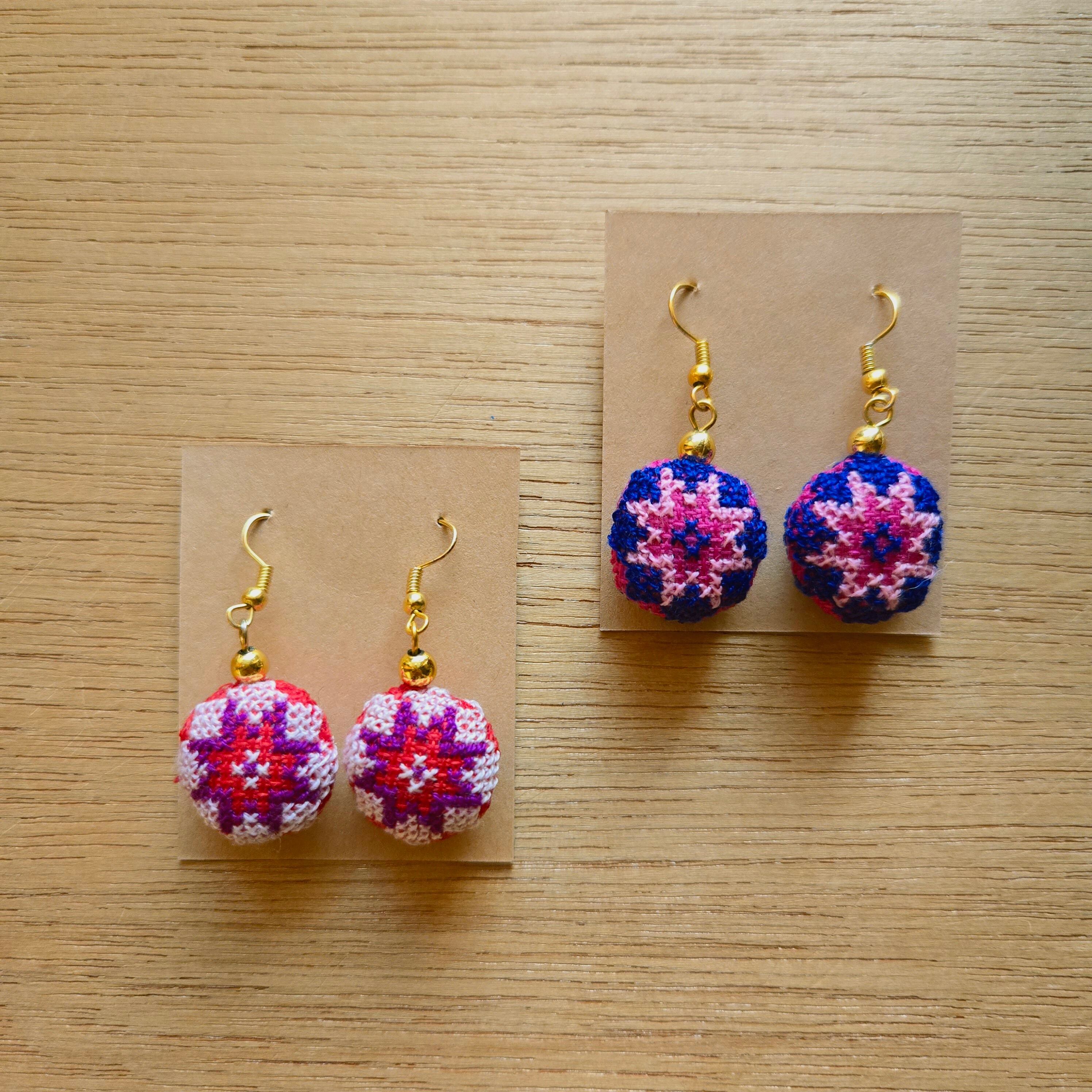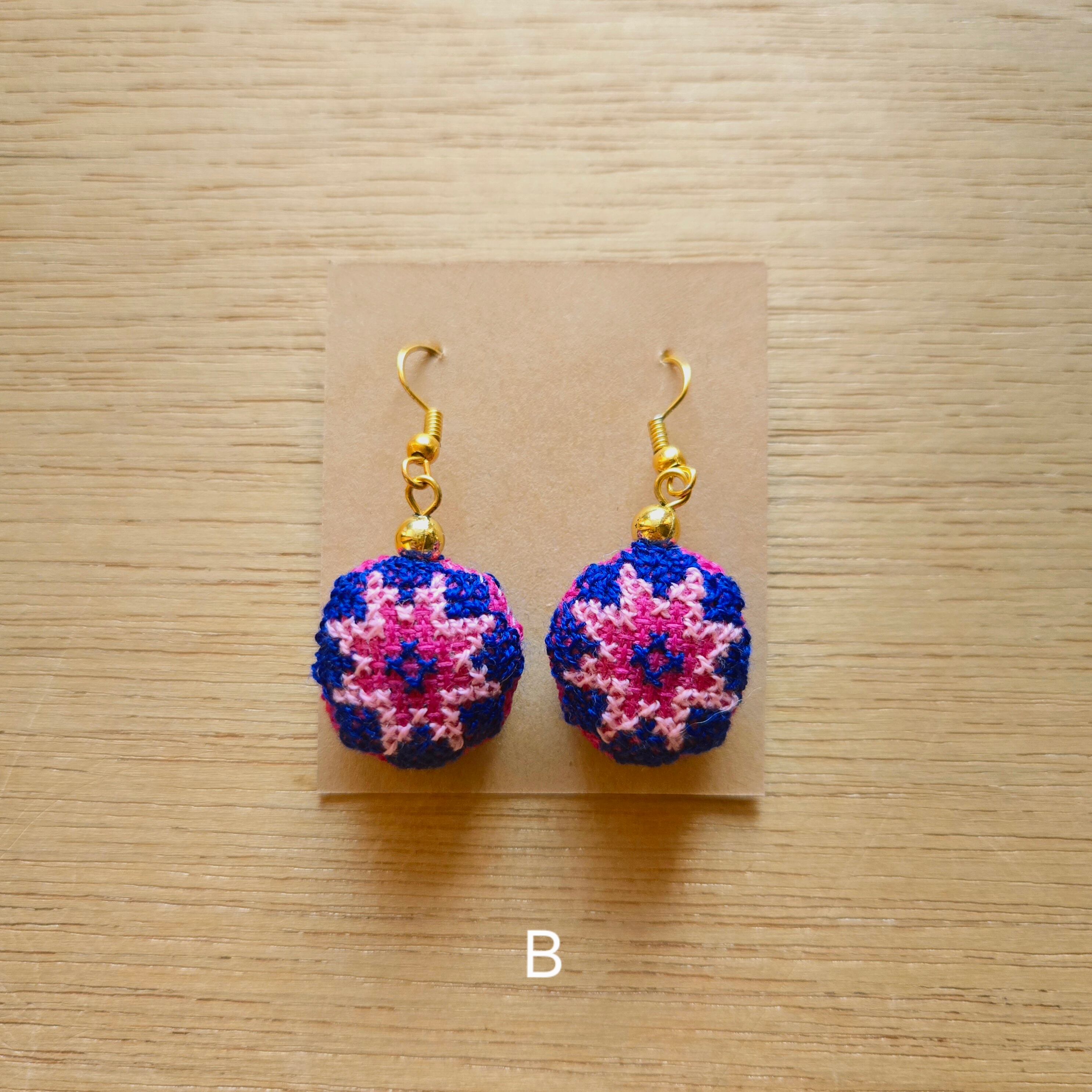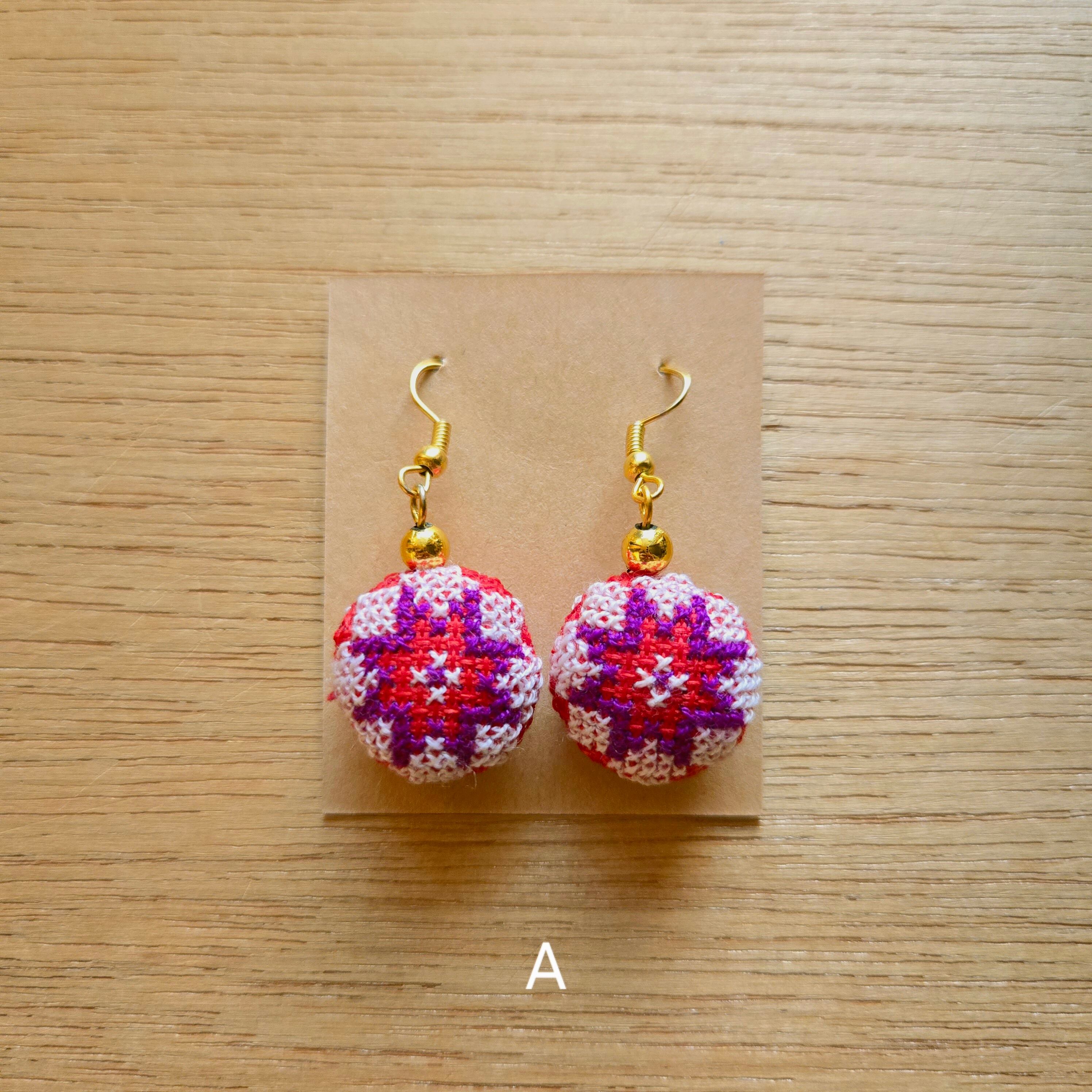 ラオス モン族手刺繍ピアス・まる