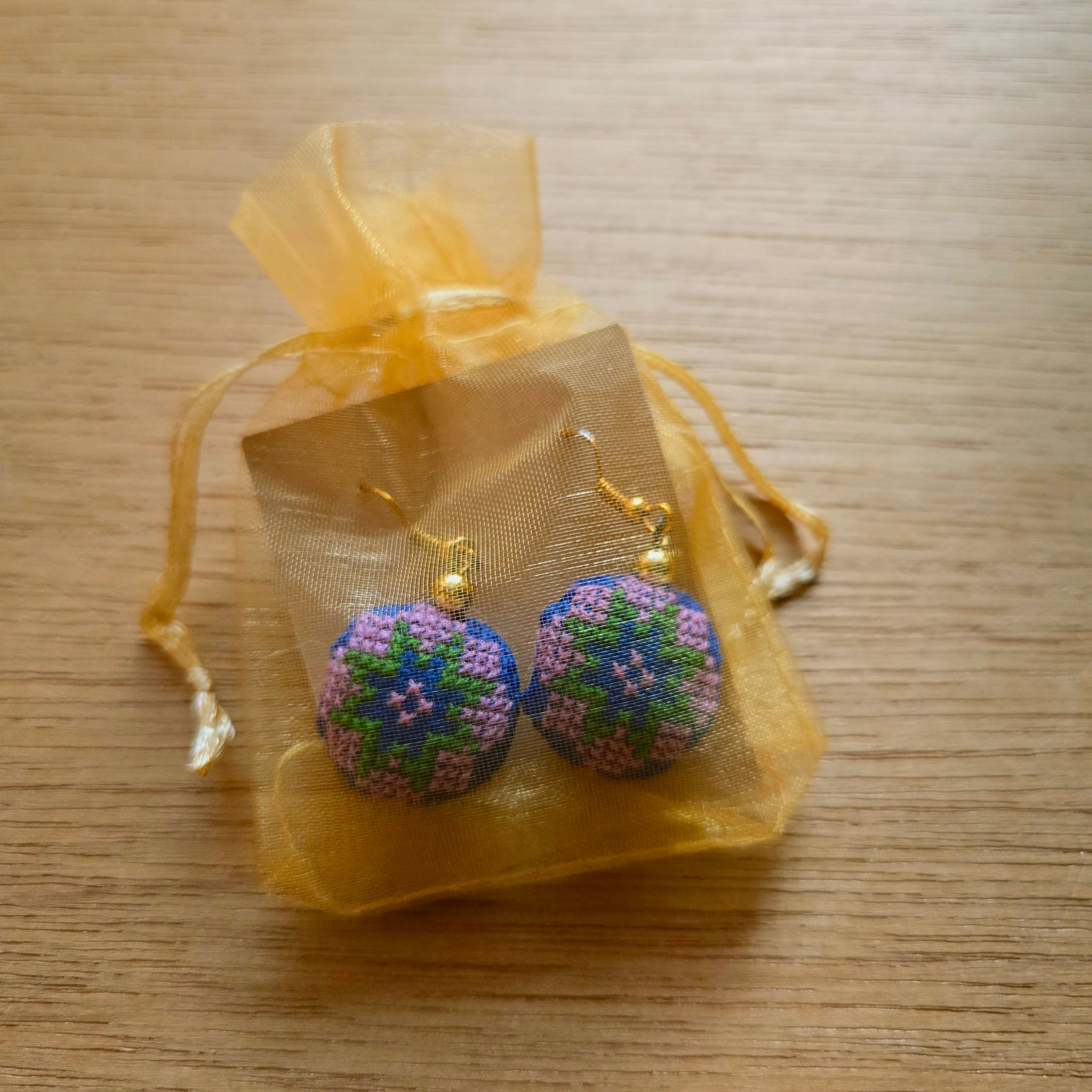 ラオスに暮らすモン族の手刺繍パーツを使ったピアス。