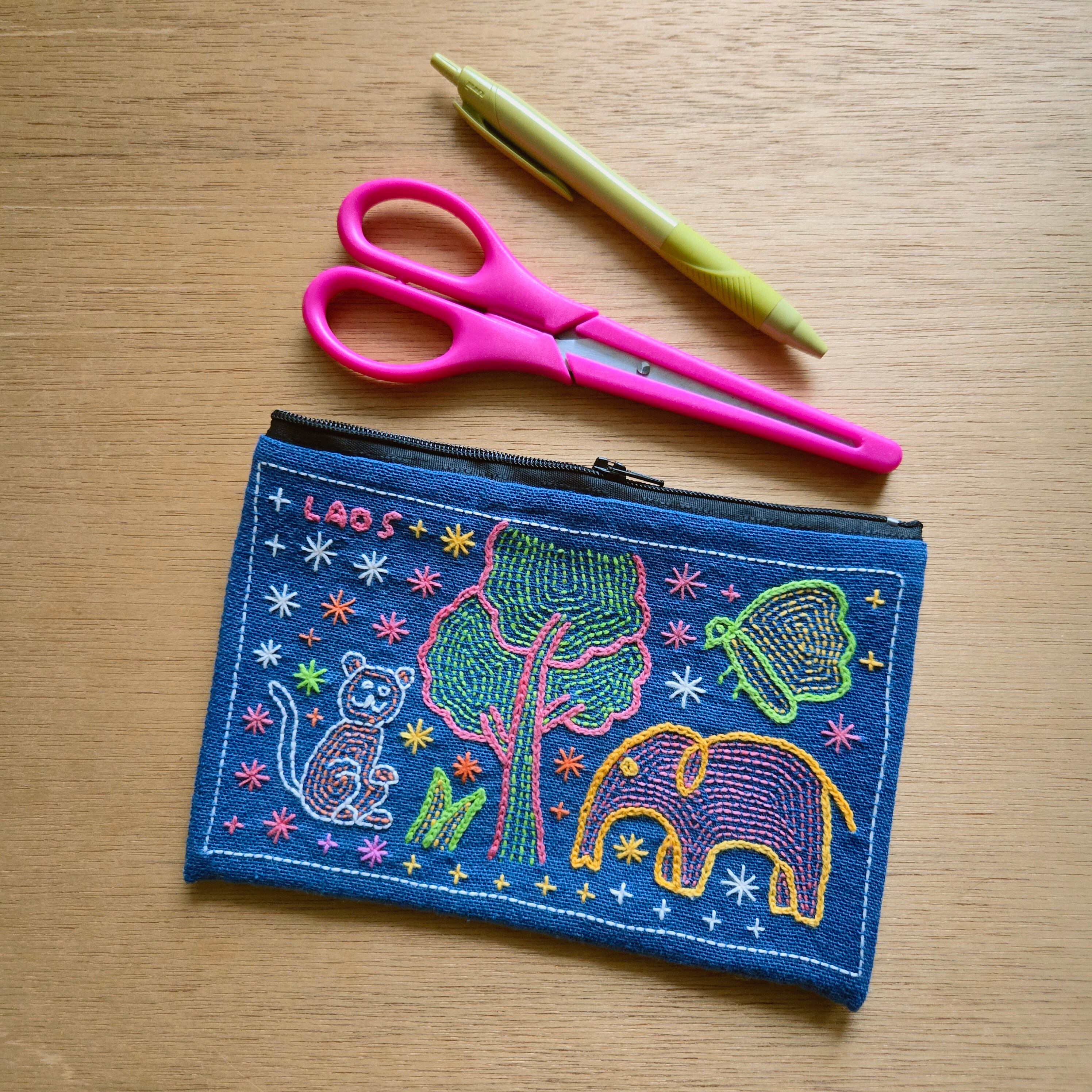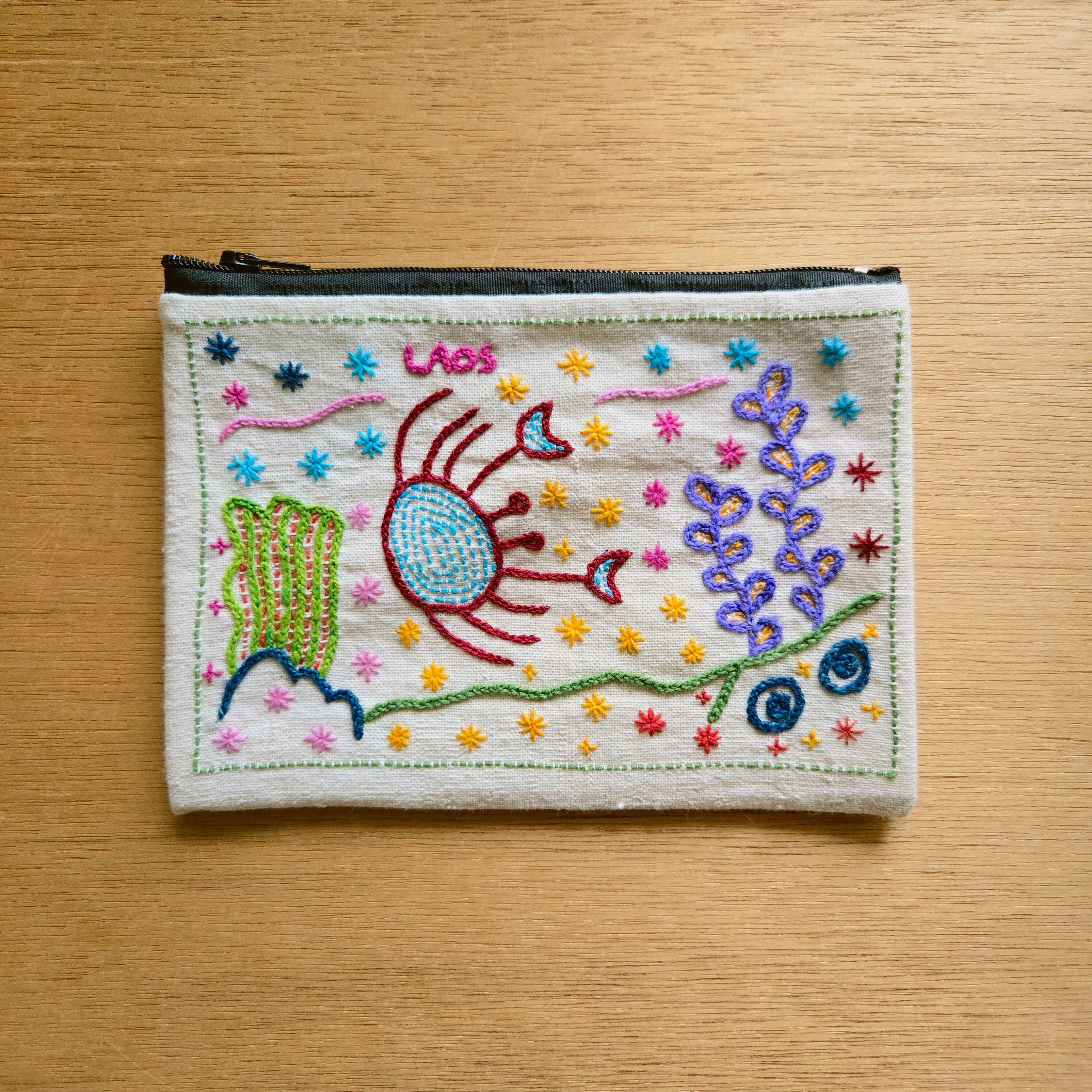 ラオスからやってきたレンテン族の手刺繍入りポーチ。