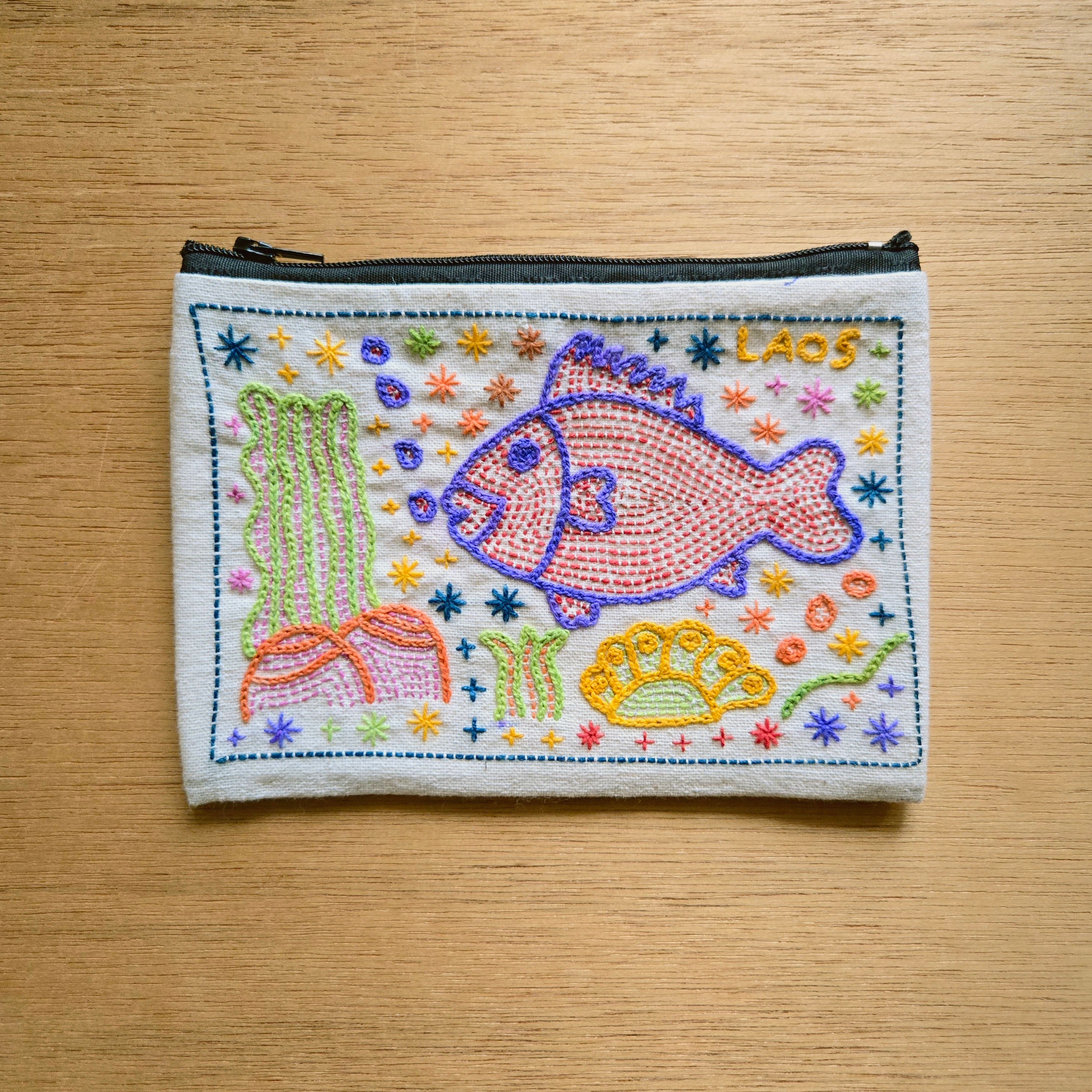ラオスからやってきたレンテン族の手刺繍入りポーチ。