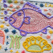 チェーンステッチを使った独特のタッチが可愛らしいハンドメイド感たっぷりの一品です。