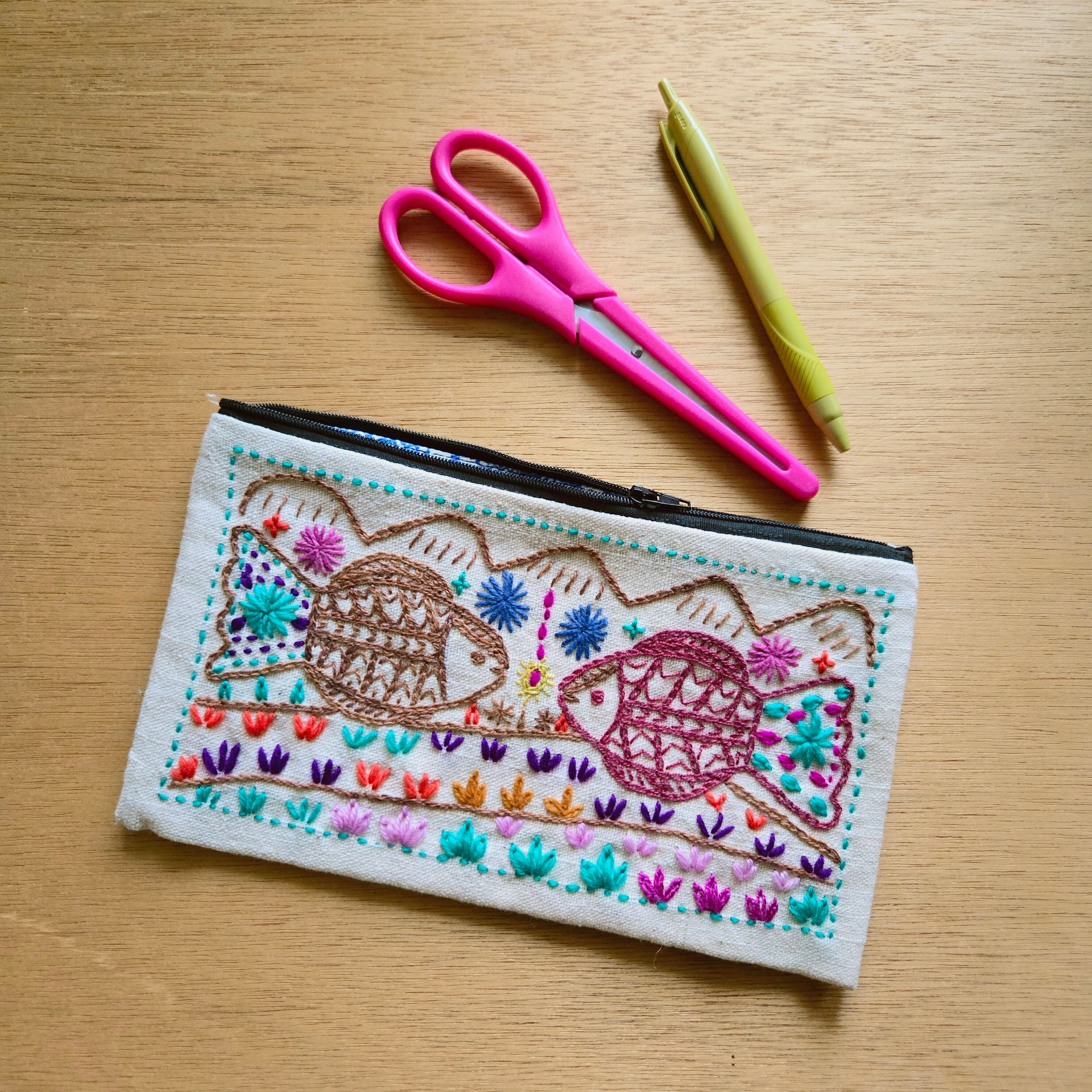 ラオスからやってきたレンテン族の手刺繍入りポーチ。