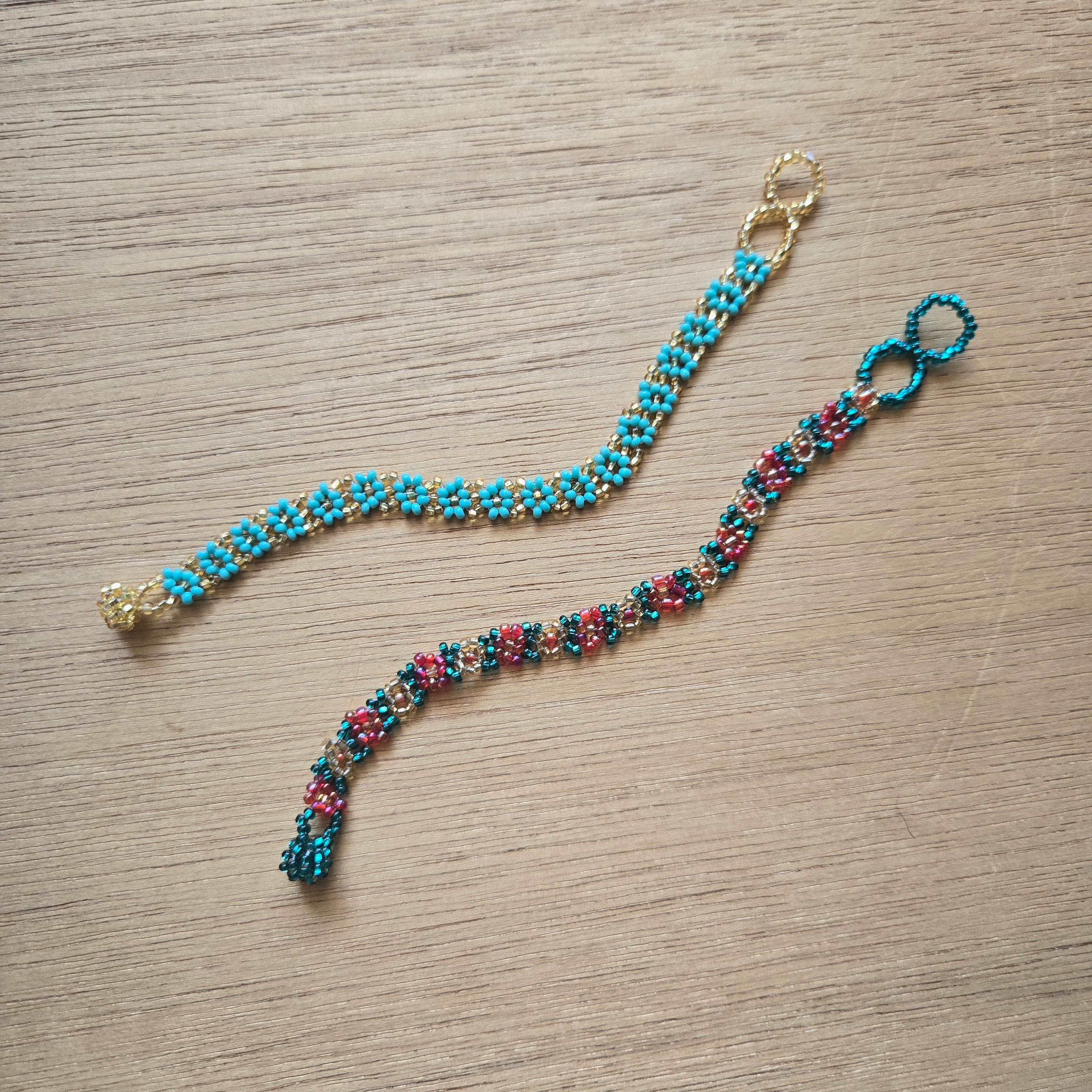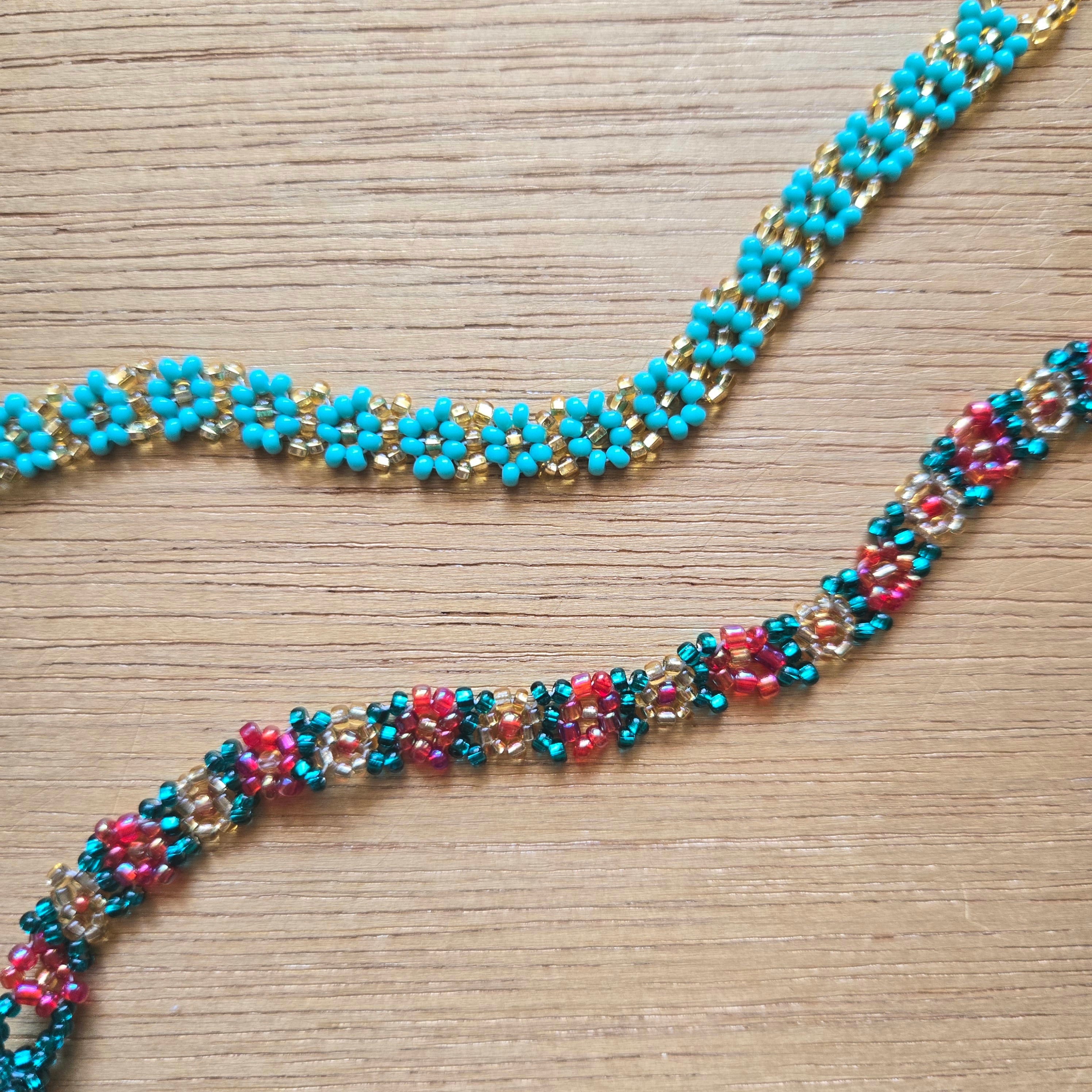 小さなビーズの小さなお花がたくさん並んだブレスレット。