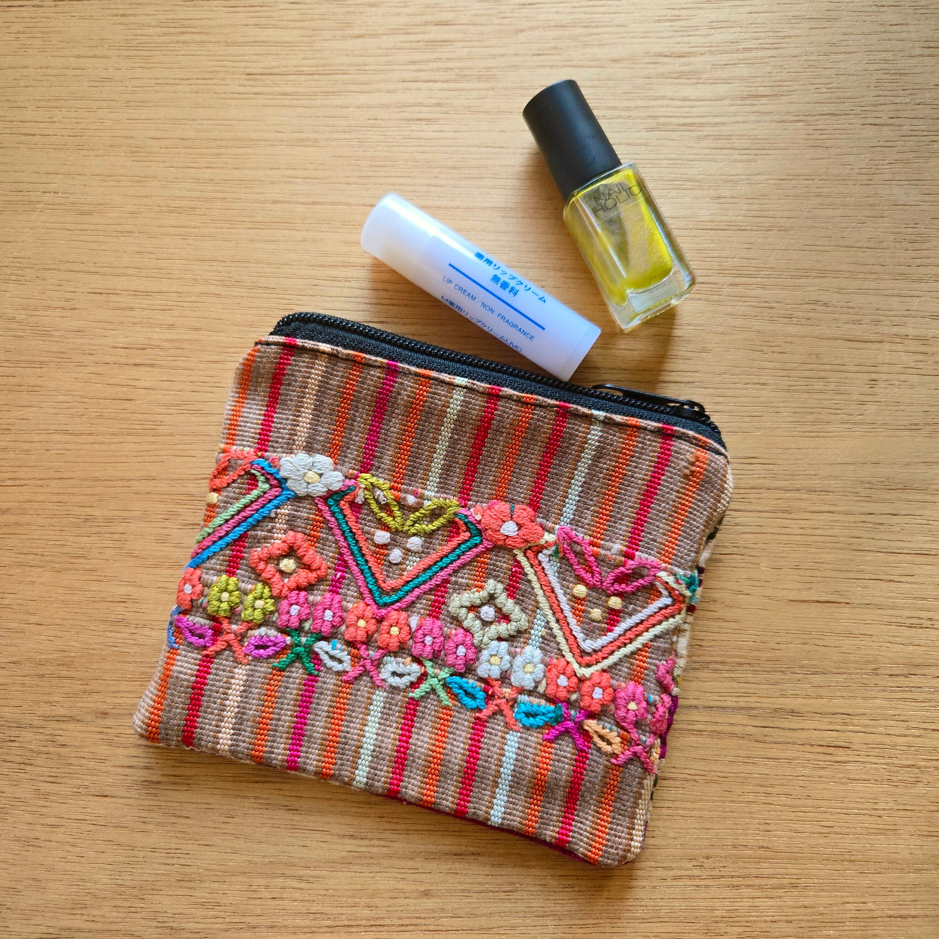 手仕事の愛くるしさが持ち歩けるサイズにぎゅっと詰め込まれた心ときめくポーチです。