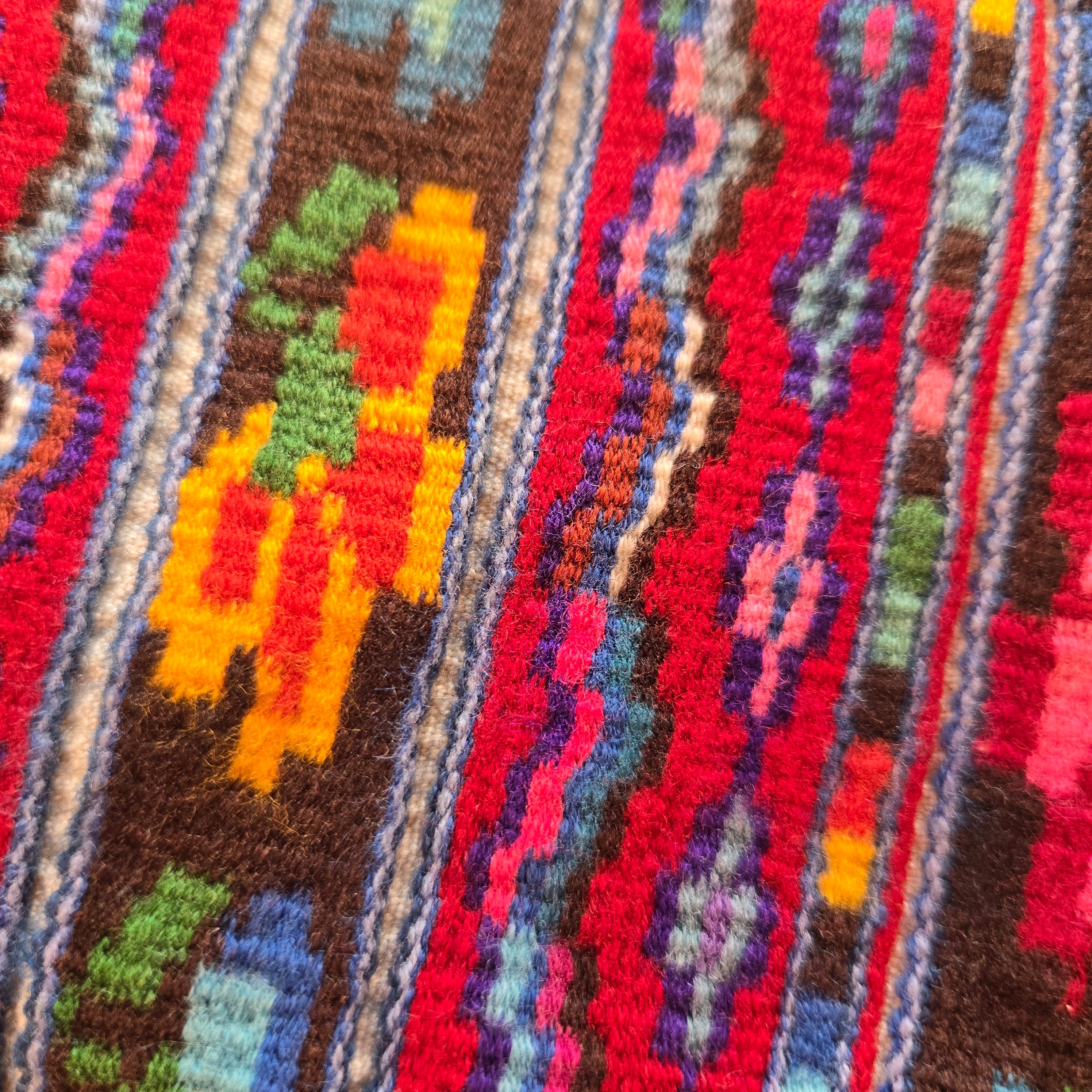 古代マヤ文明の時代から続く織りの技術で作られた細かな模様の美しさ、そして中米らしいカラフルな色合いが目を引きます。