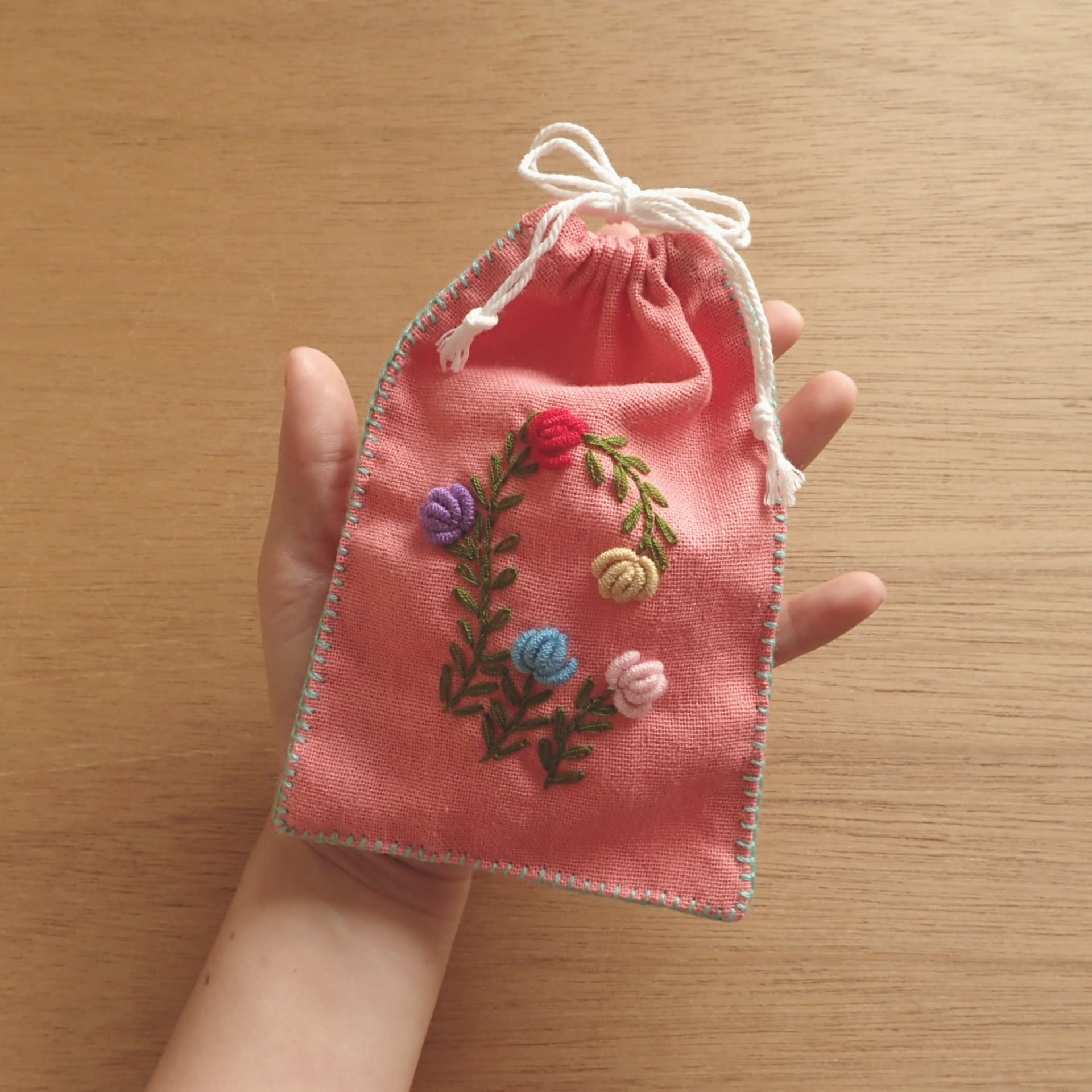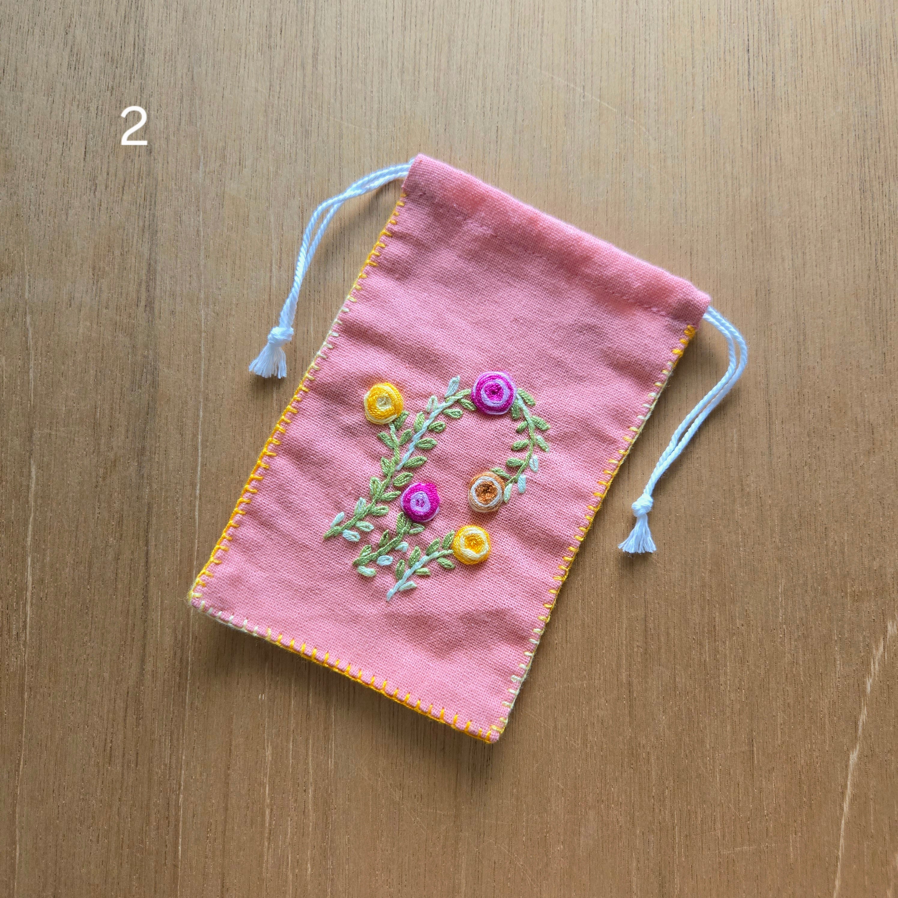 タイ 手刺繍お花のミニ巾着M