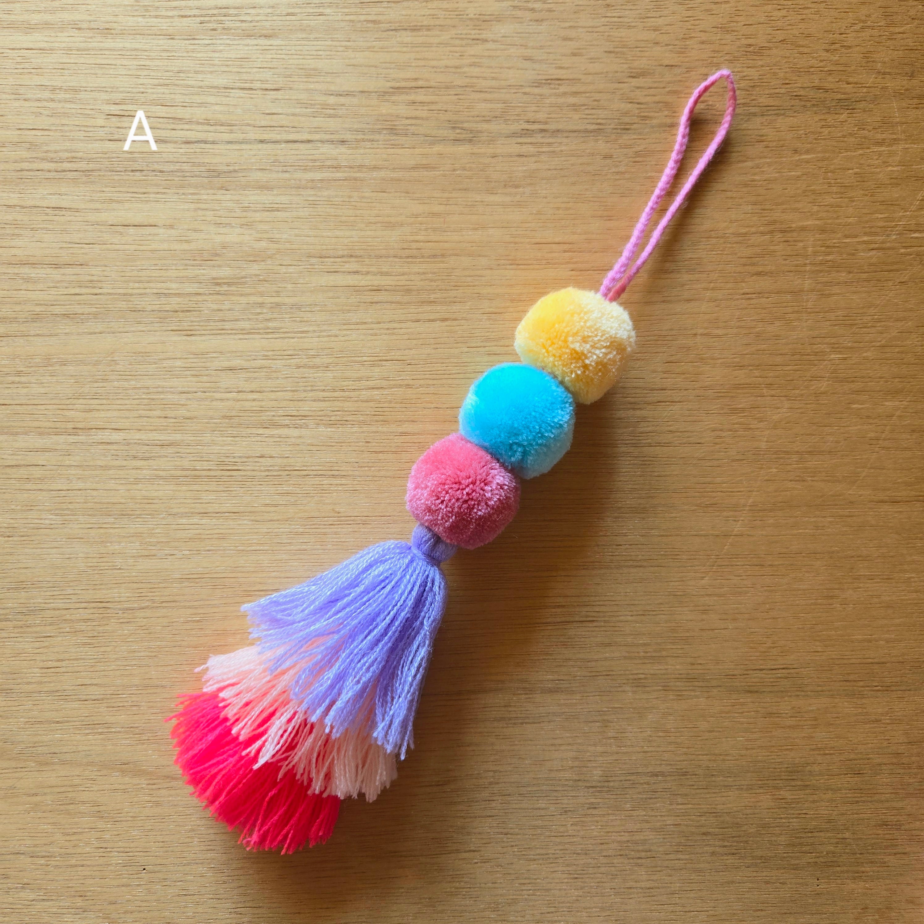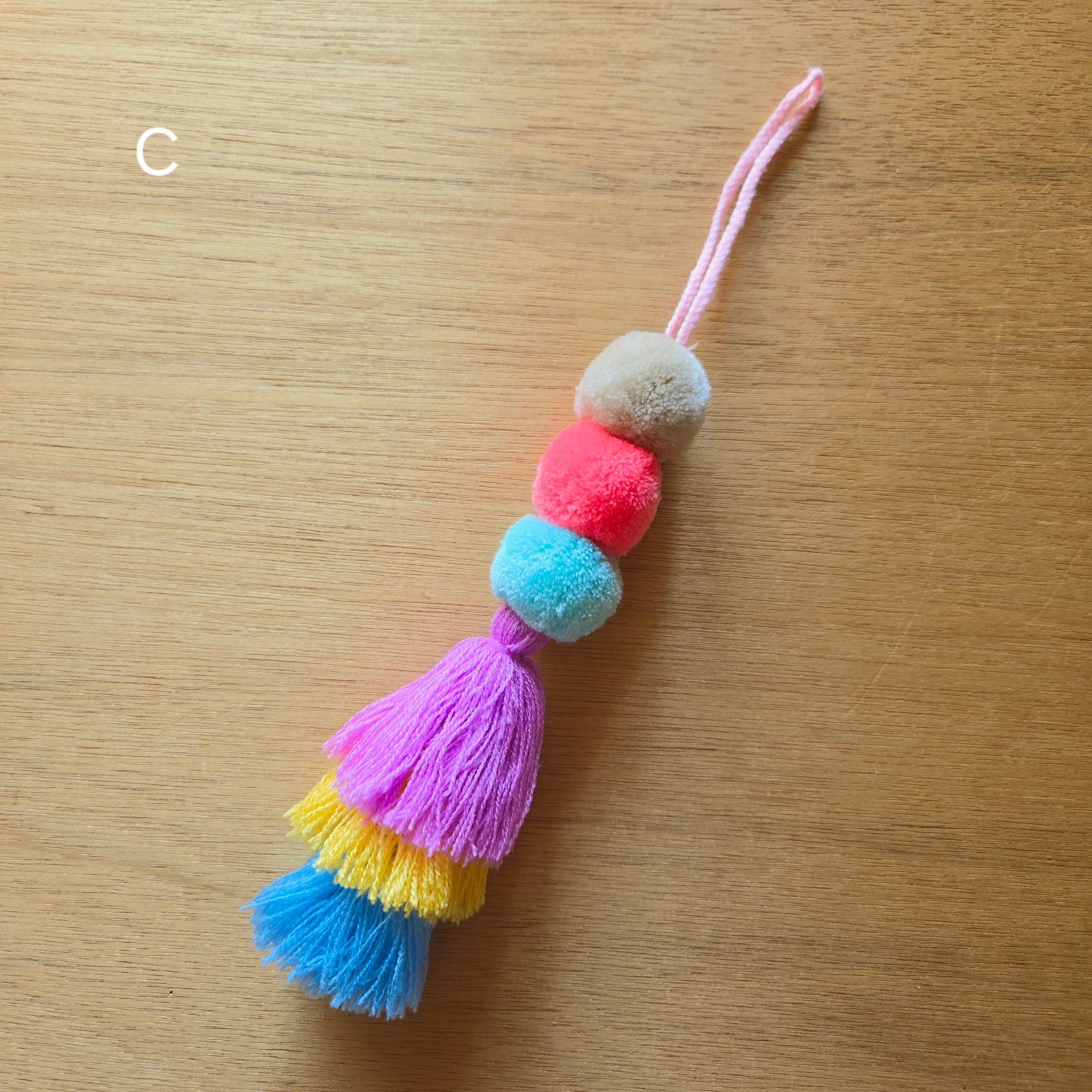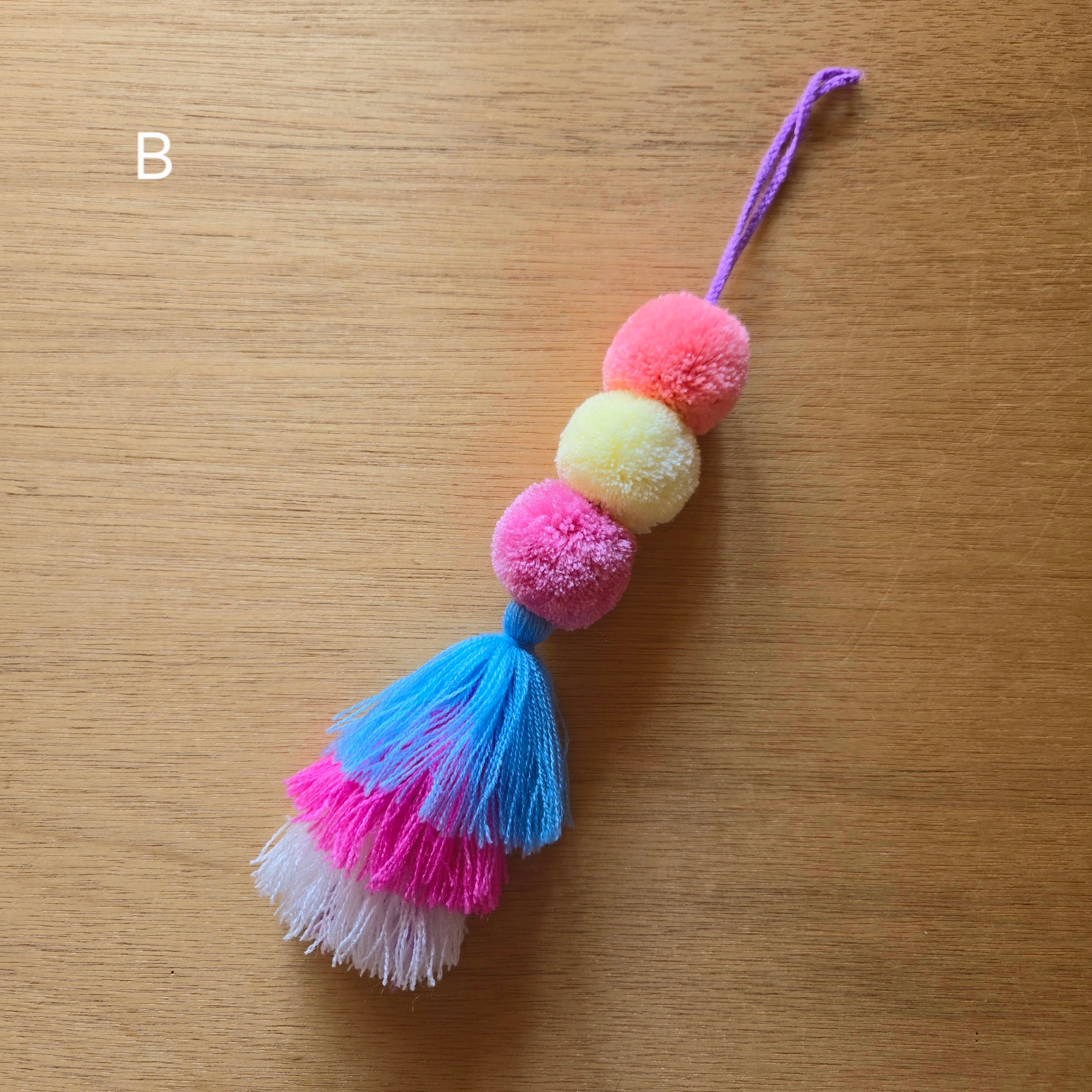 メキシコのチアパス州の村で作られたポンポンとタッセルのチャームです。