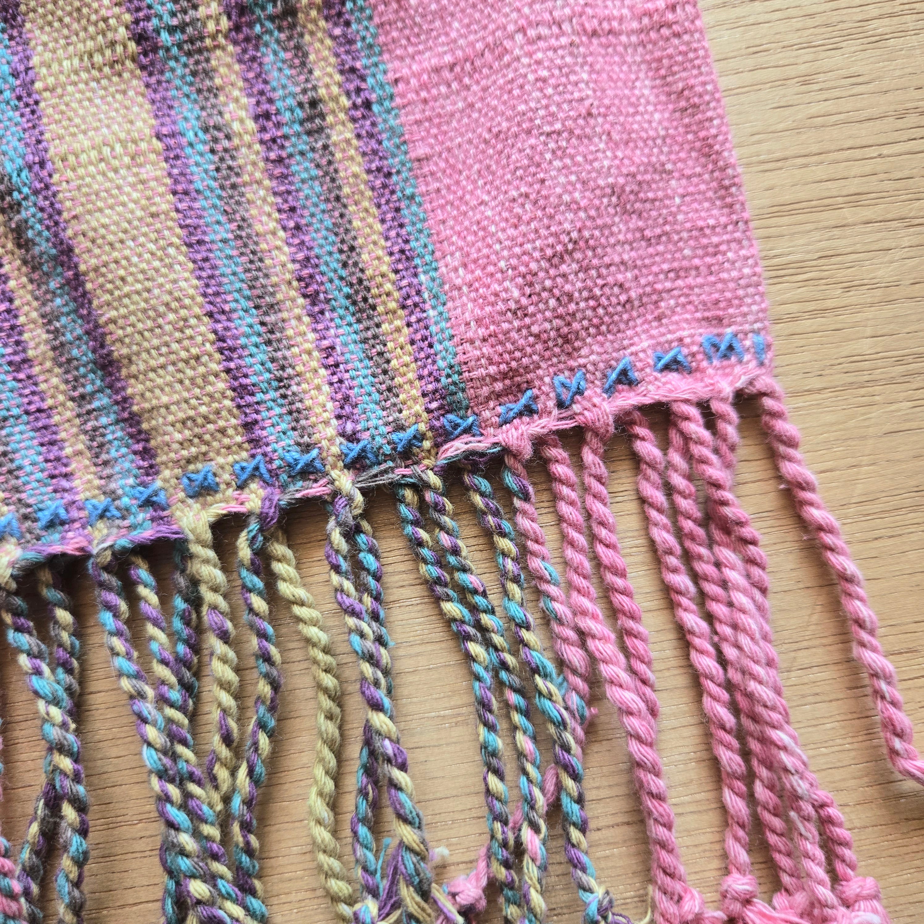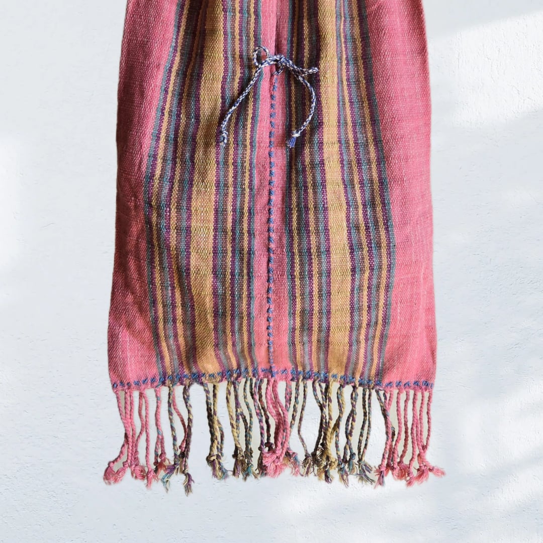 腰機という原始的な手法で織られています。