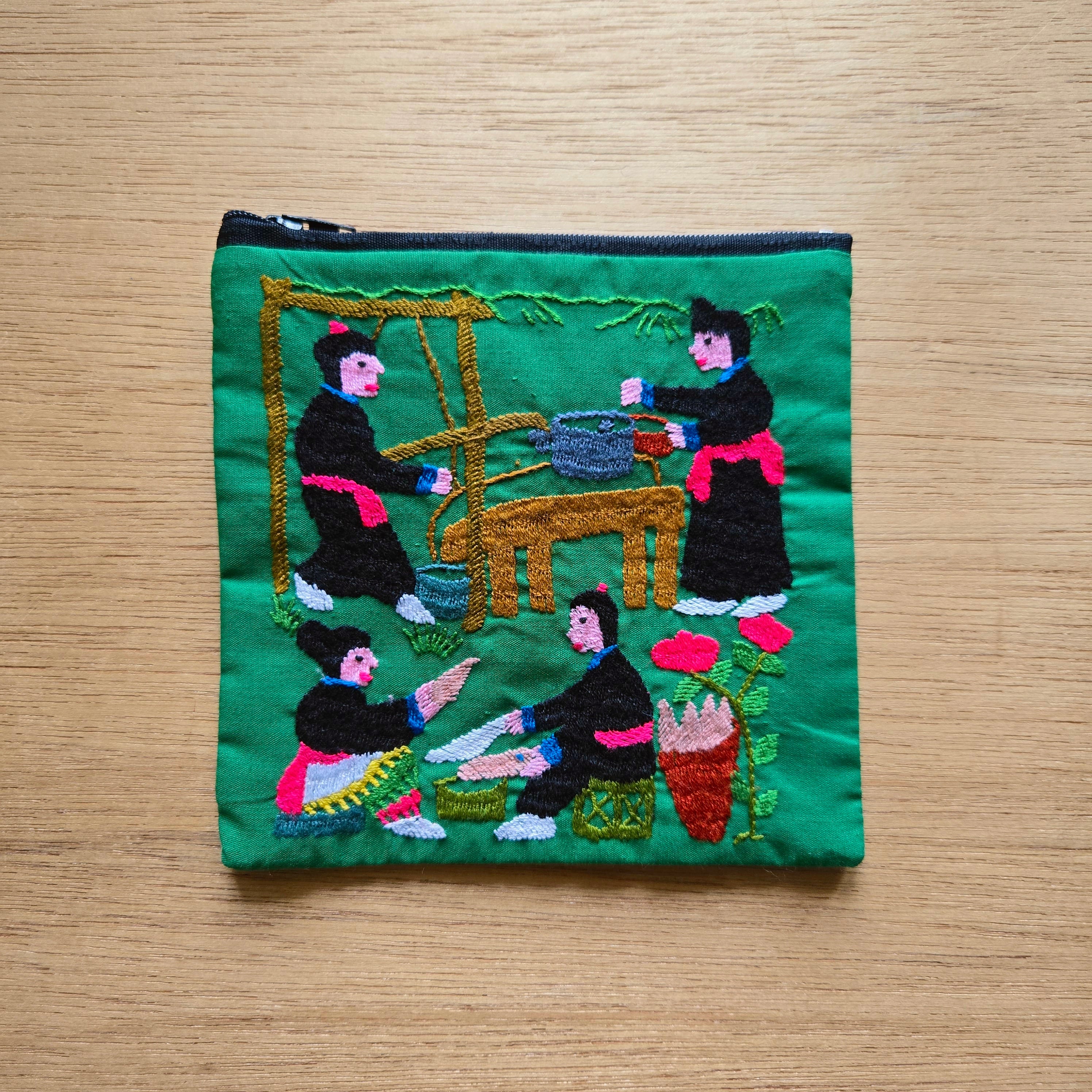 ラオスの山岳地域に住む少数民族モン族の手刺繍が施されたフラットタイプのポーチ。