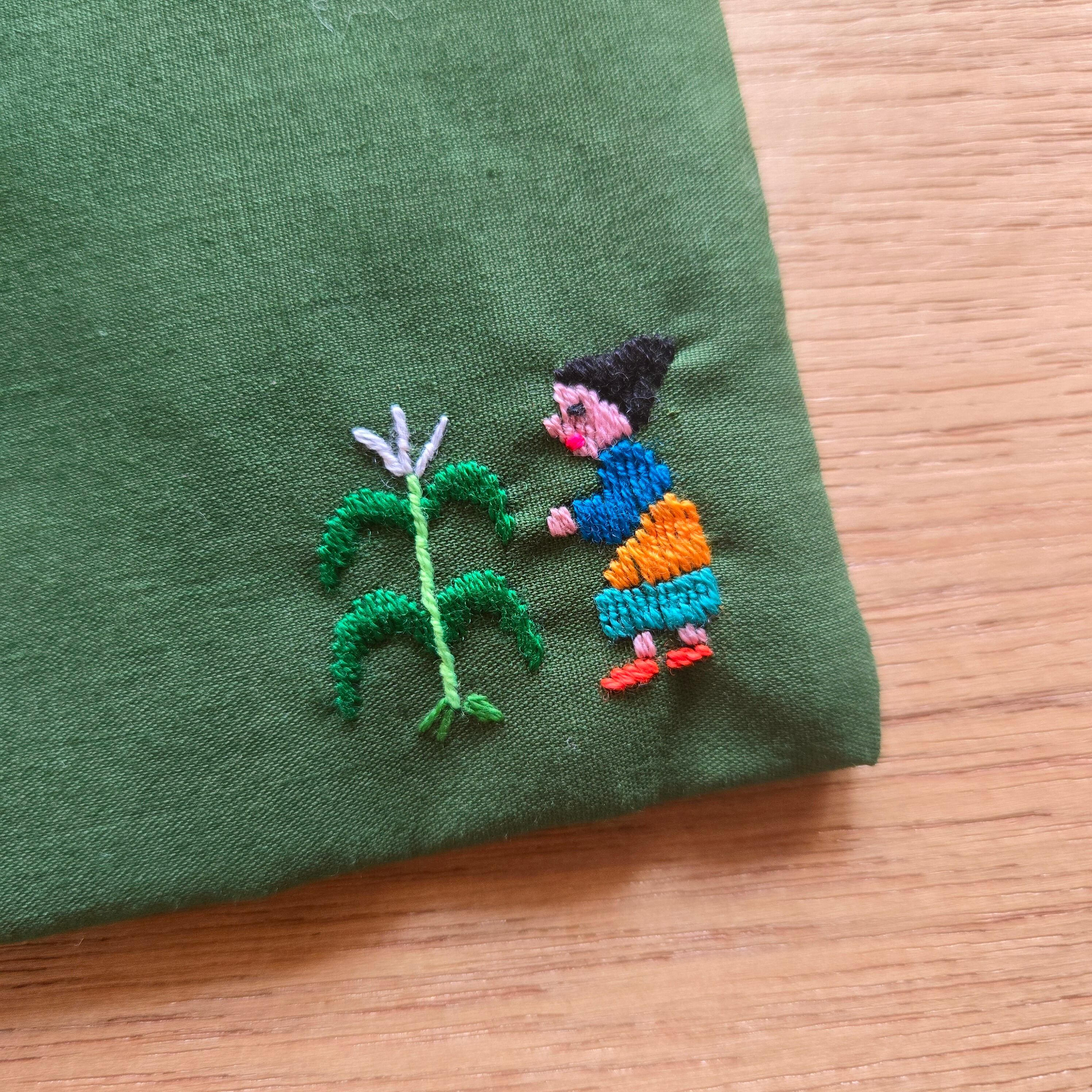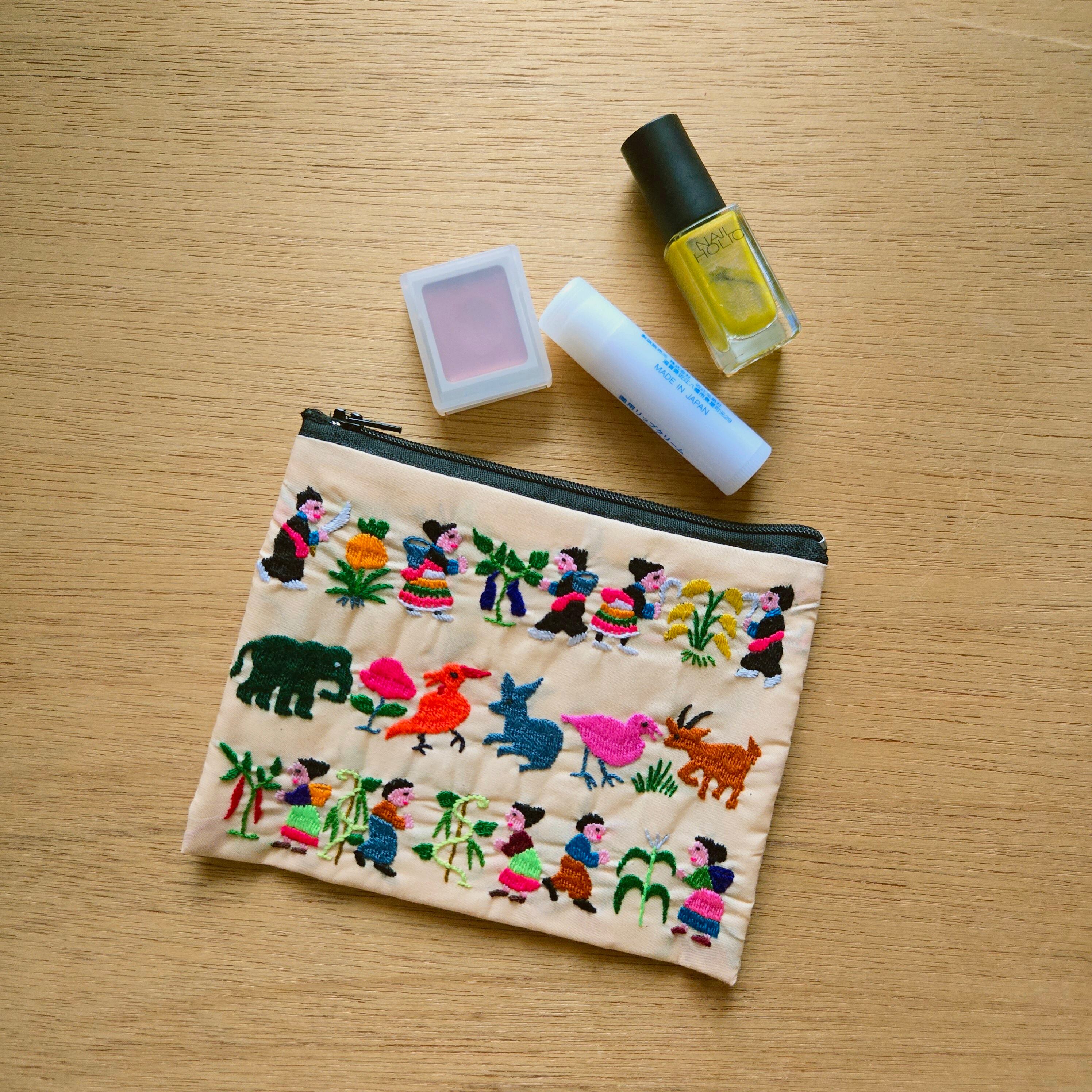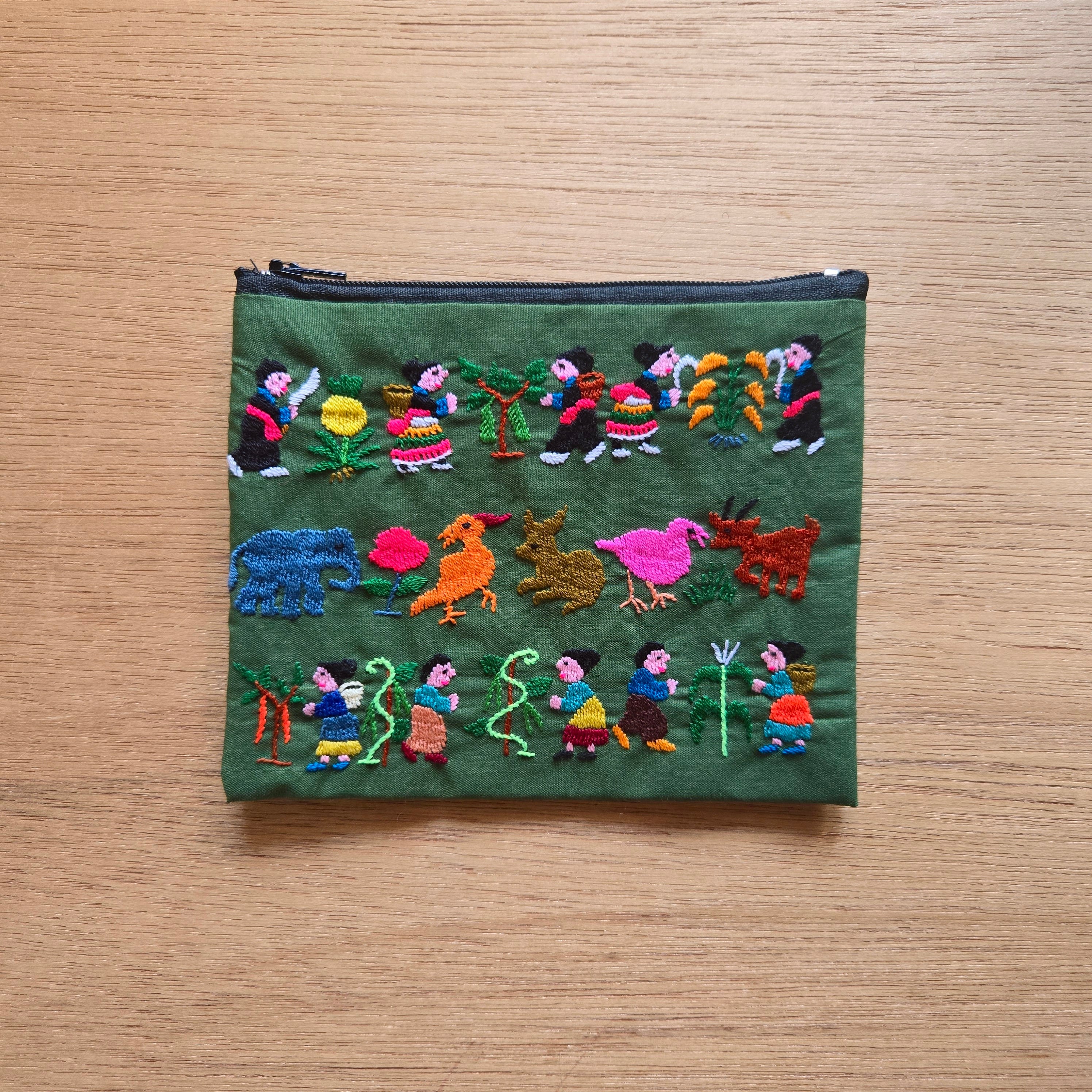 ラオスの山岳地域に住む少数民族モン族の手刺繍が施されたフラットタイプのポーチ。