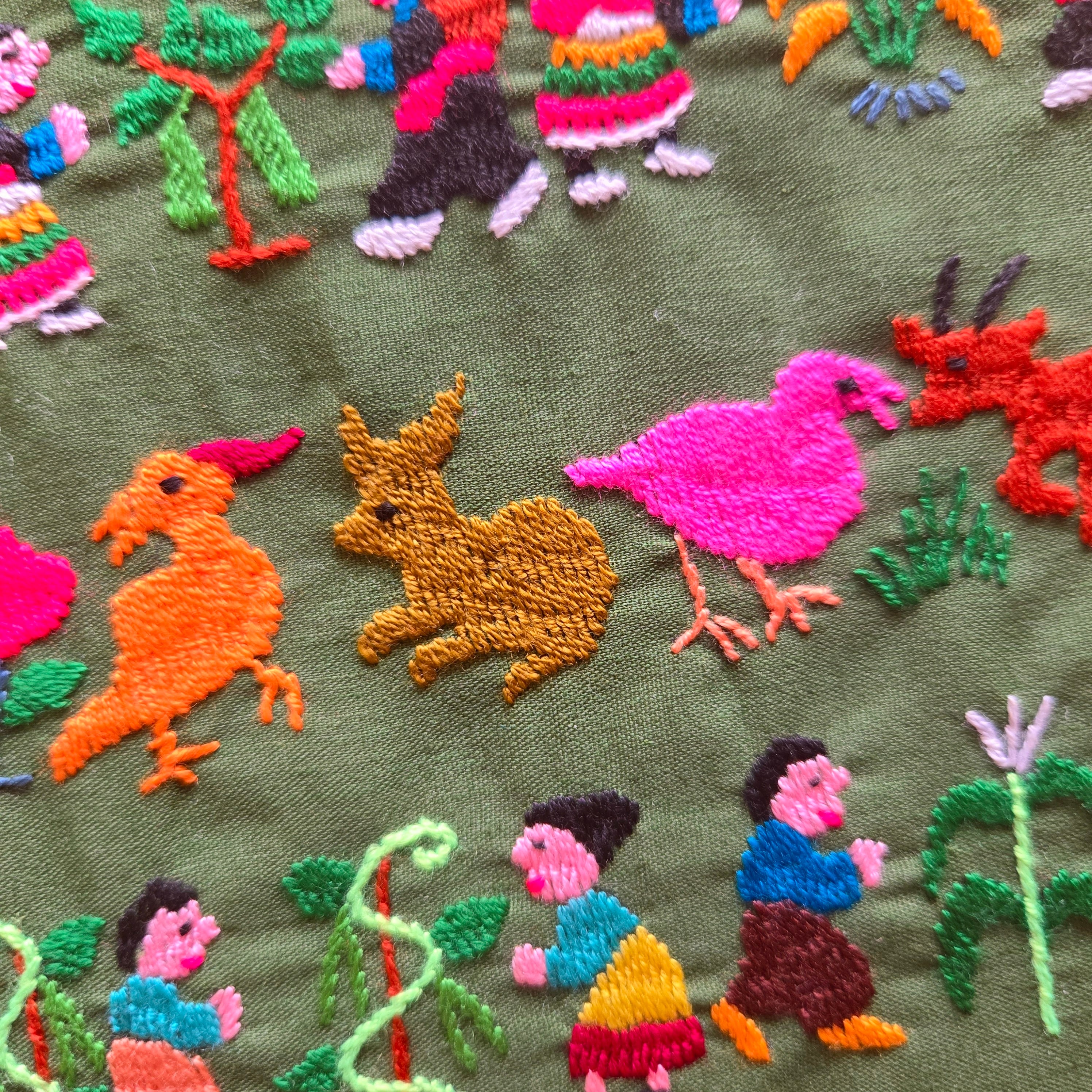 すべて手刺繍のため、すべて色合いや人々の表情まで一点一点異なります。