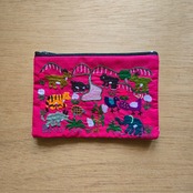 ラオスの山岳地域に住む少数民族モン族の手刺繍が施されたフラットタイプのポーチ。