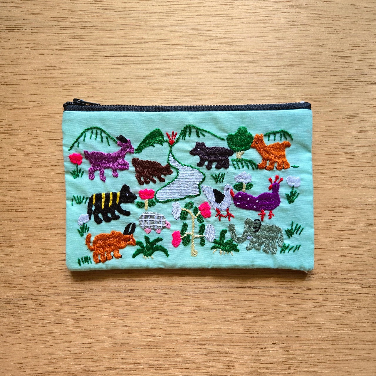 ラオスの山岳地域に住む少数民族モン族の手刺繍が施されたフラットタイプのポーチ。