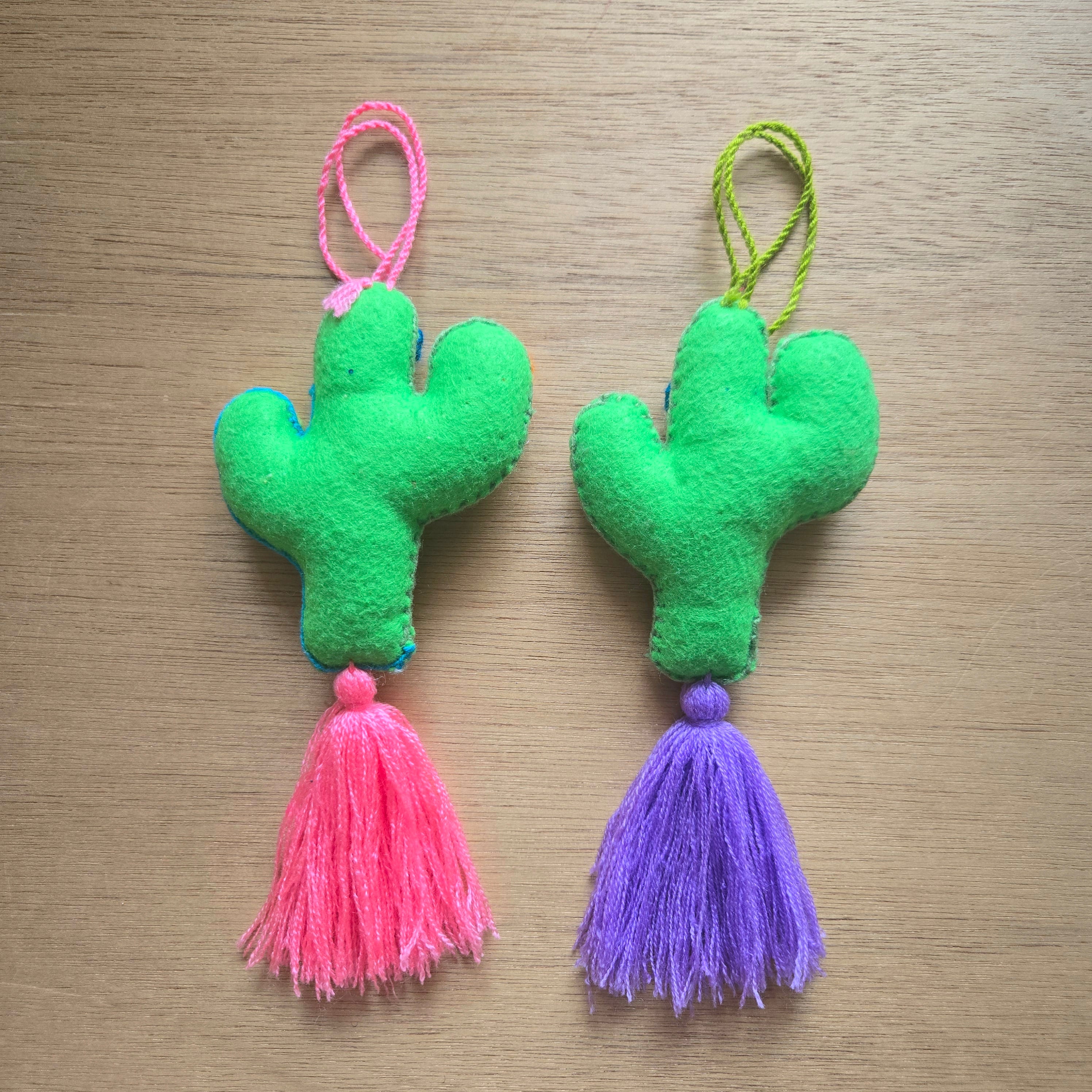 メキシコらしいサボテンの形のフェルト生地に手刺繍が施されています。