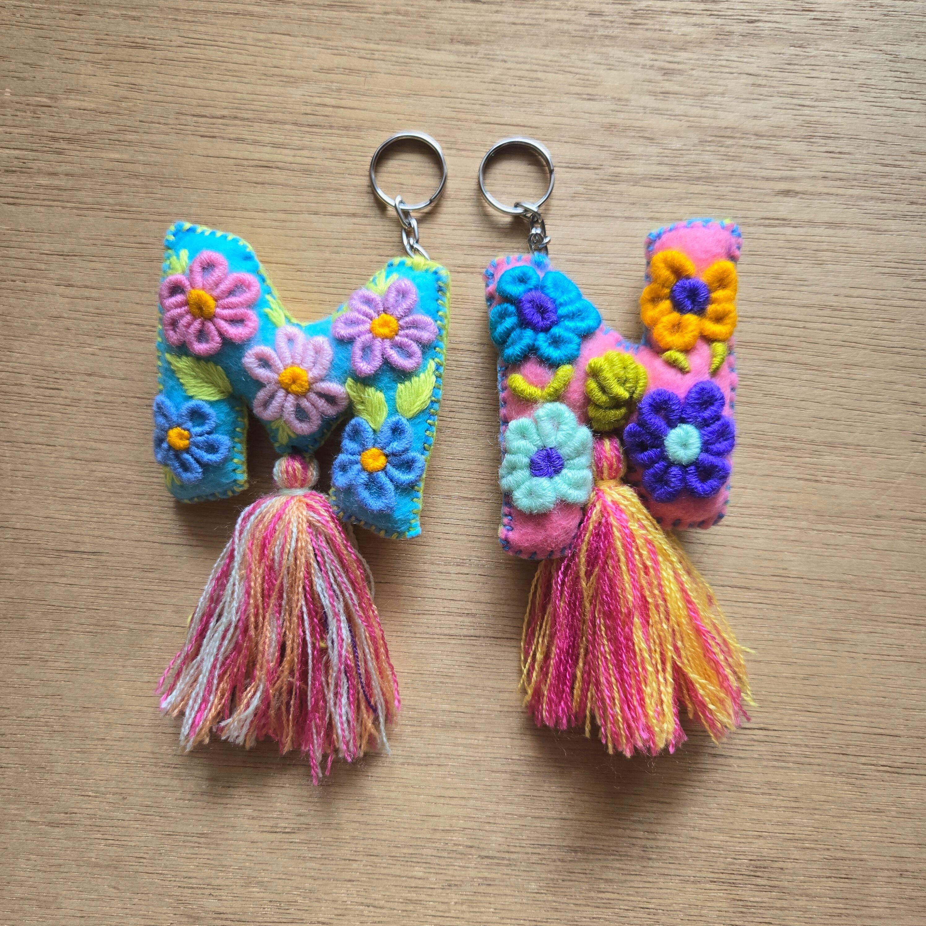 メキシコ 手刺繍イニシャルキーホルダー