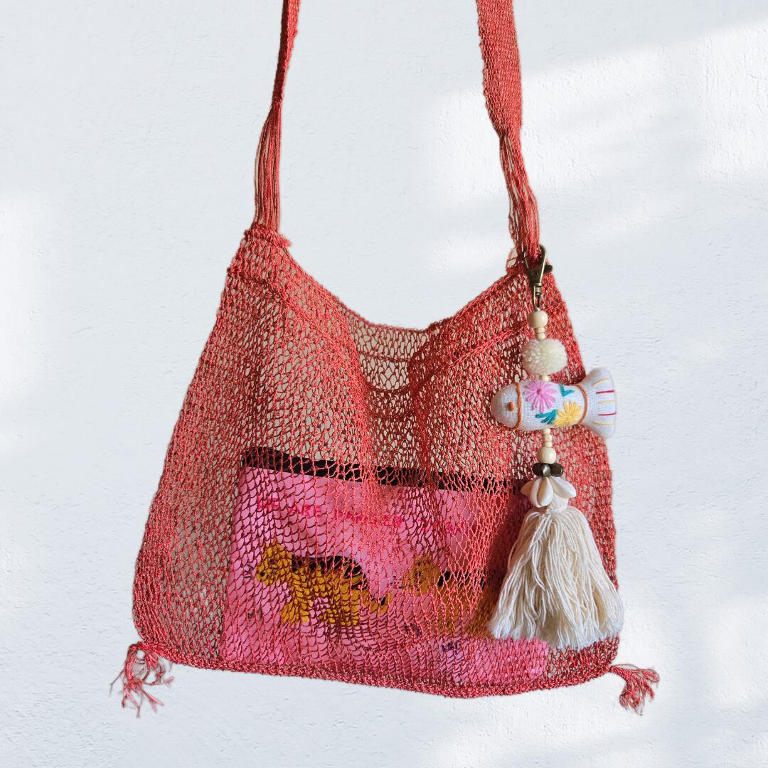 網目からお気に入りのポーチや中身がちらっと見えて、自分らしい組み合わせを楽しめます。