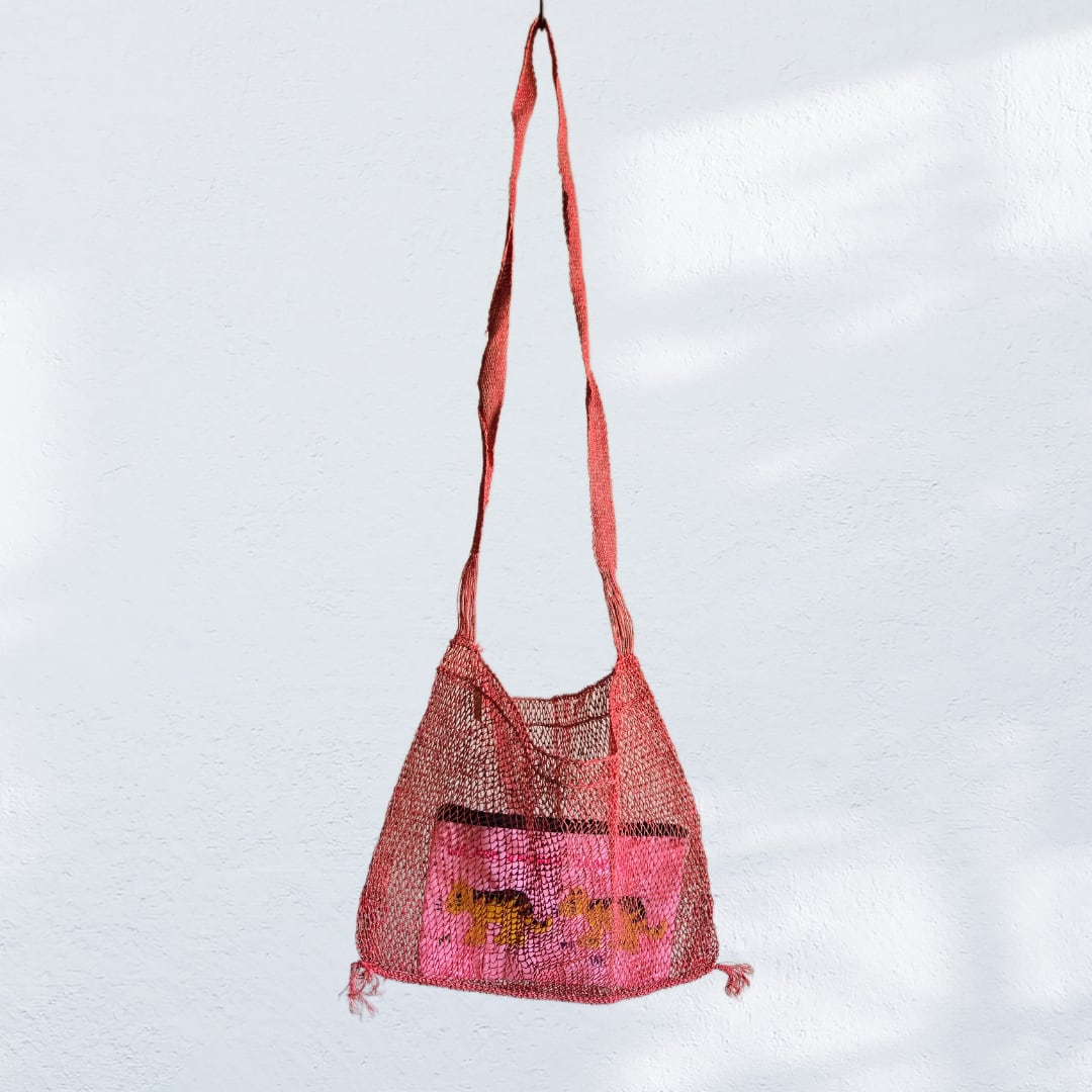 ラオスの山岳地域に住む少数民族カムー族の手編みバッグ。